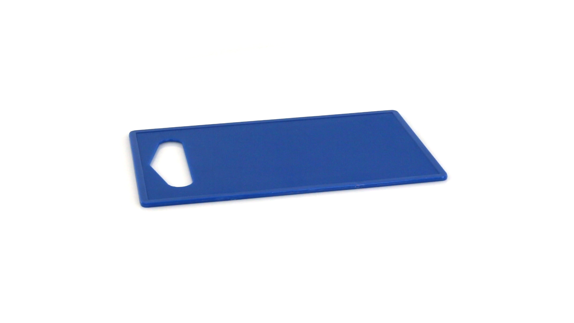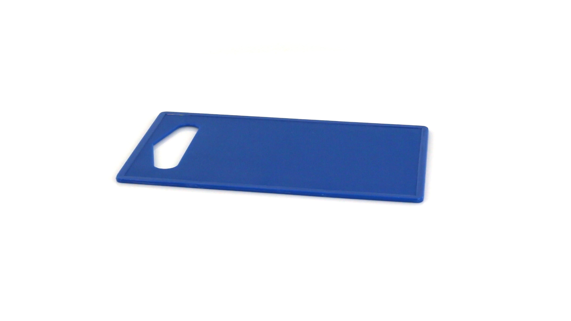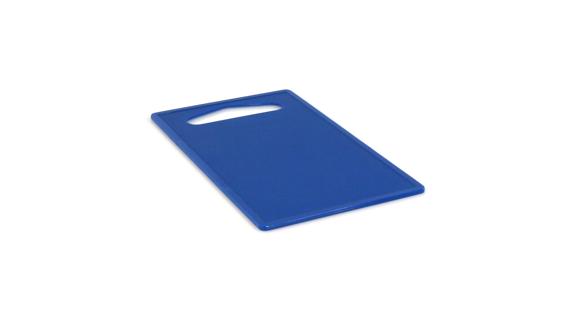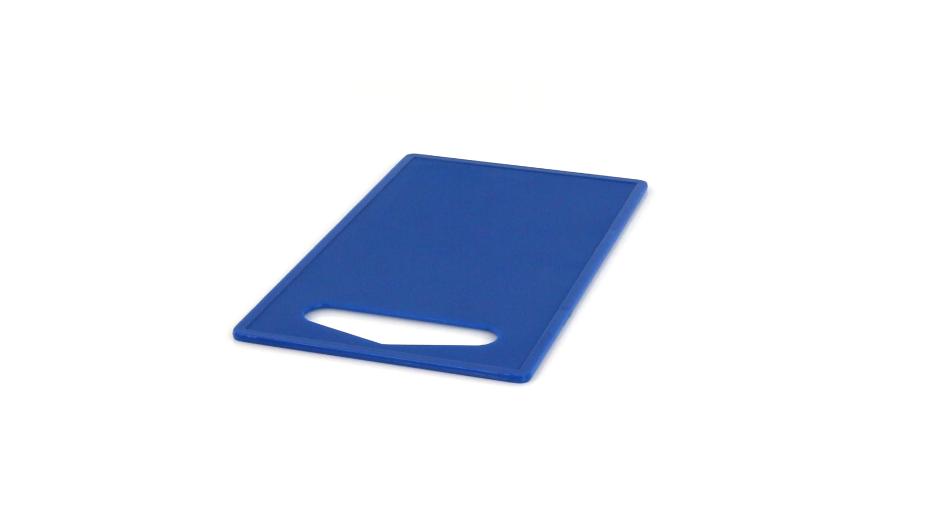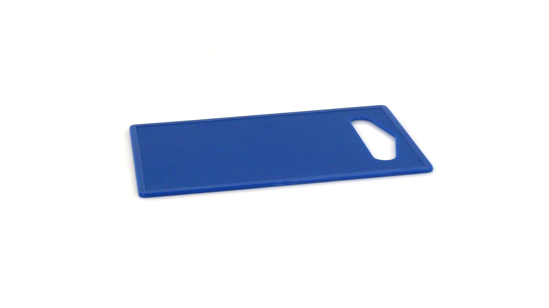 Schneidebrett aus robustem Material in lebendigen Farben. Mit Stanzung für einfache Handhabung und sicherer granulierter Oberfläche.