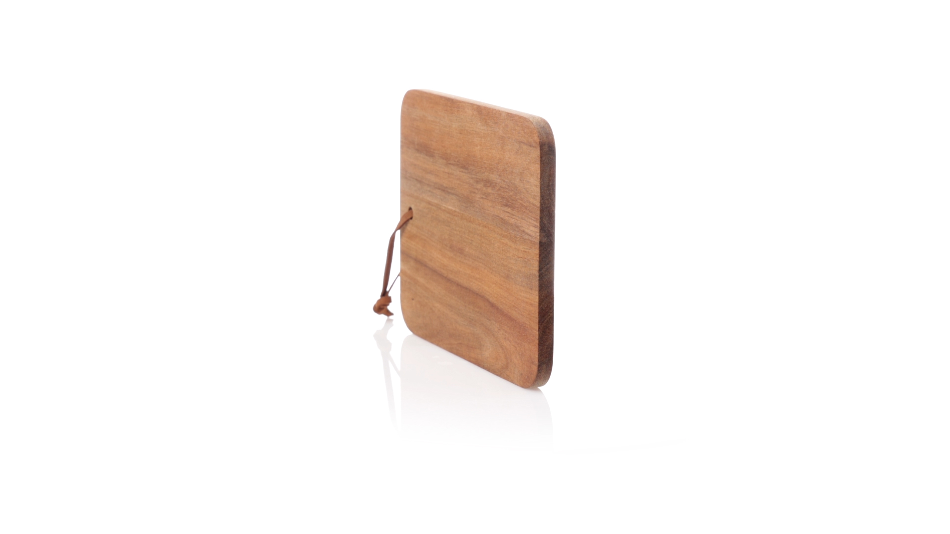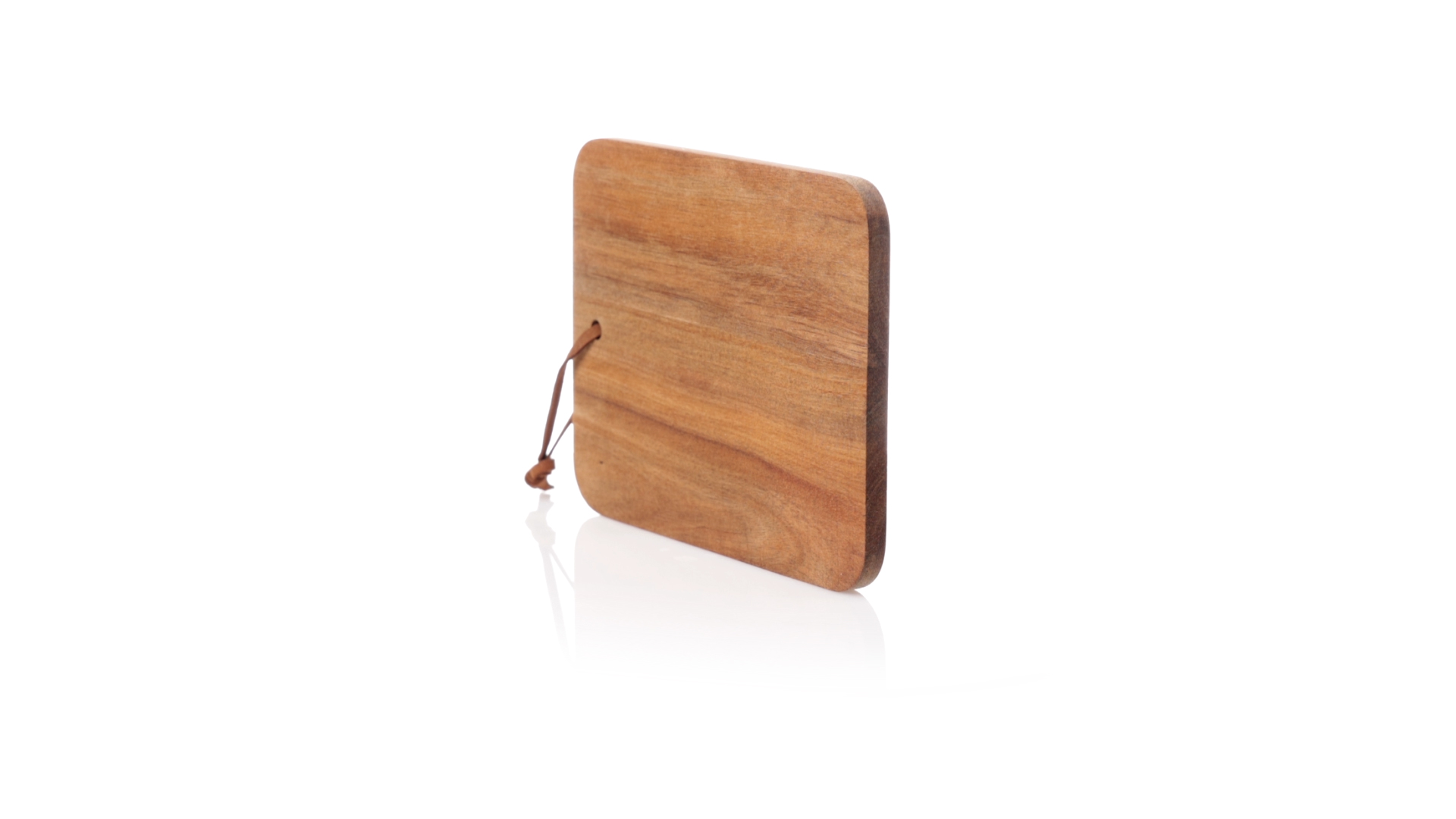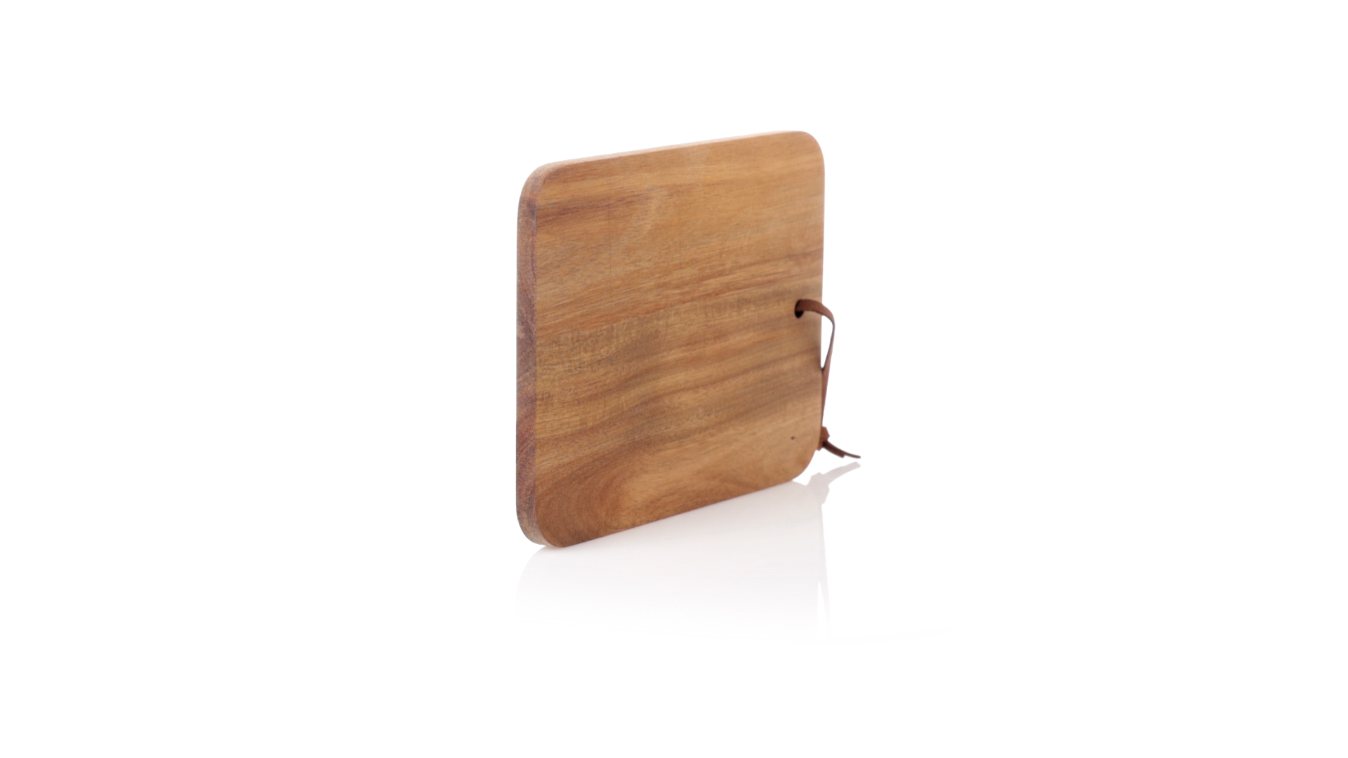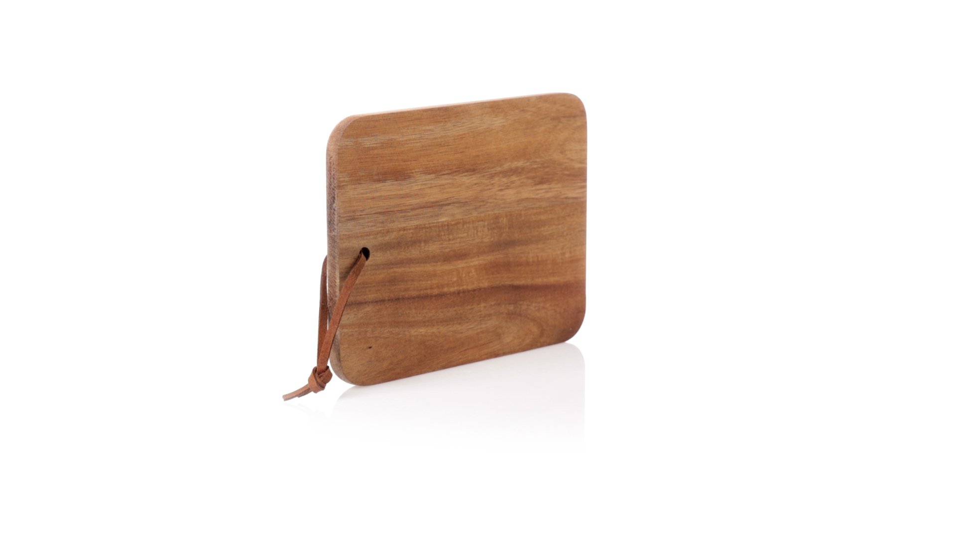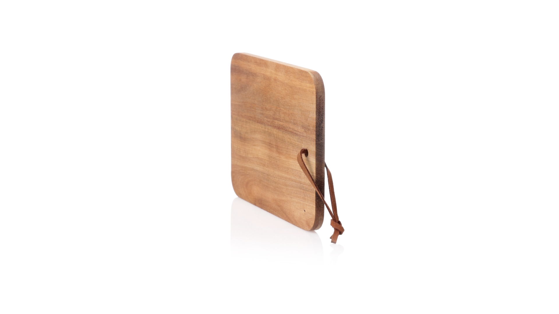 Schneide- und Präsentationsbrett aus Naturholz. Im rechteckigen Format, mit passender Kordel aus strapazierfähigem Kunstleder.