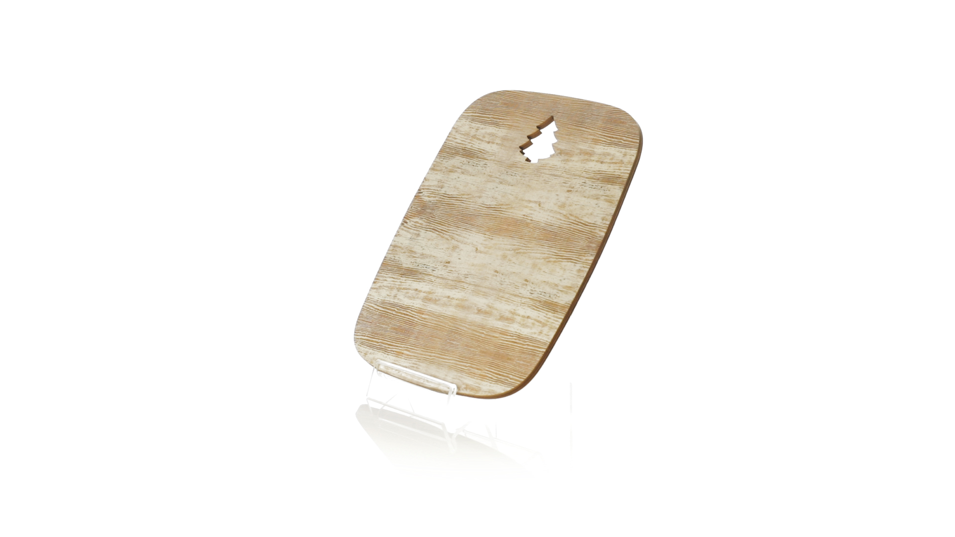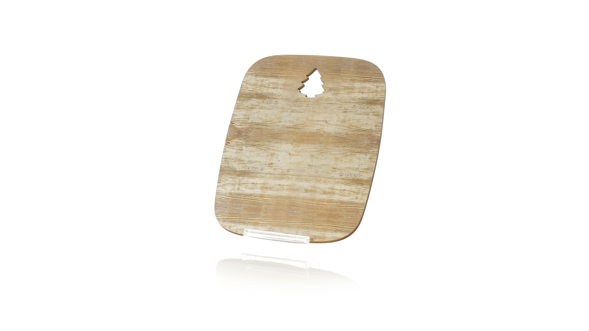 Rechteckiges Schneide- und Servierbrett mit Weihnachtsbaum-Stanzung. Aus Naturholz und mit originaler Bicolor-Lackierung. Grosse Branding-Fläche und Made in Europe-Logo.