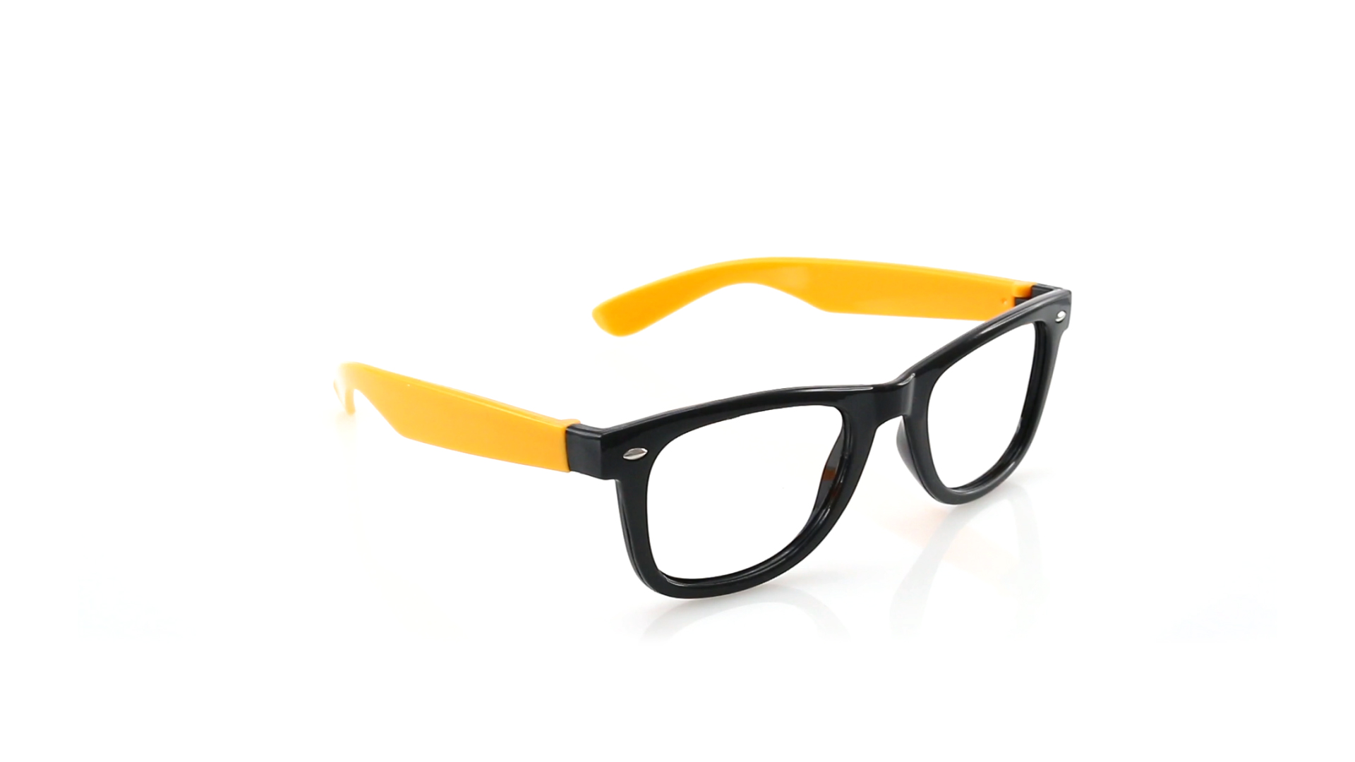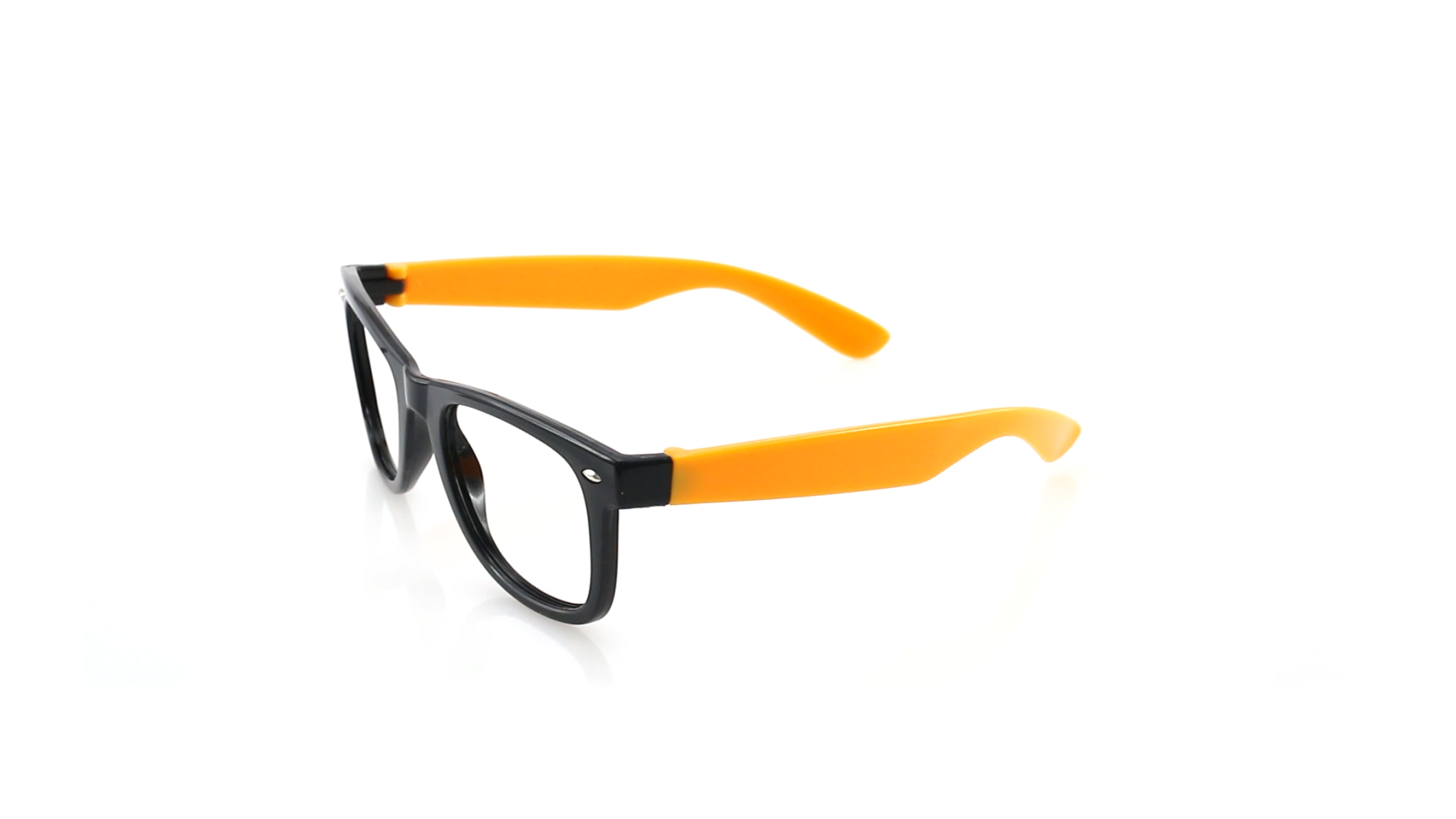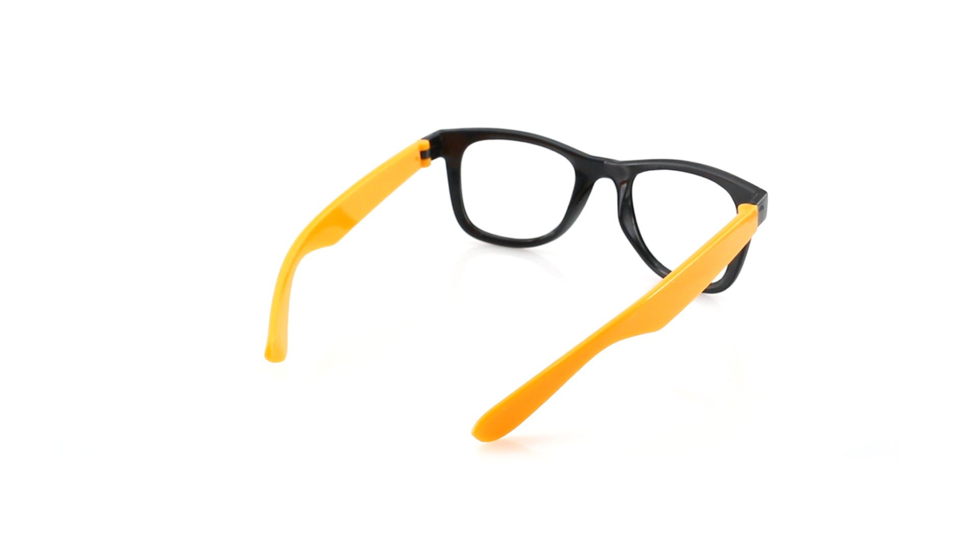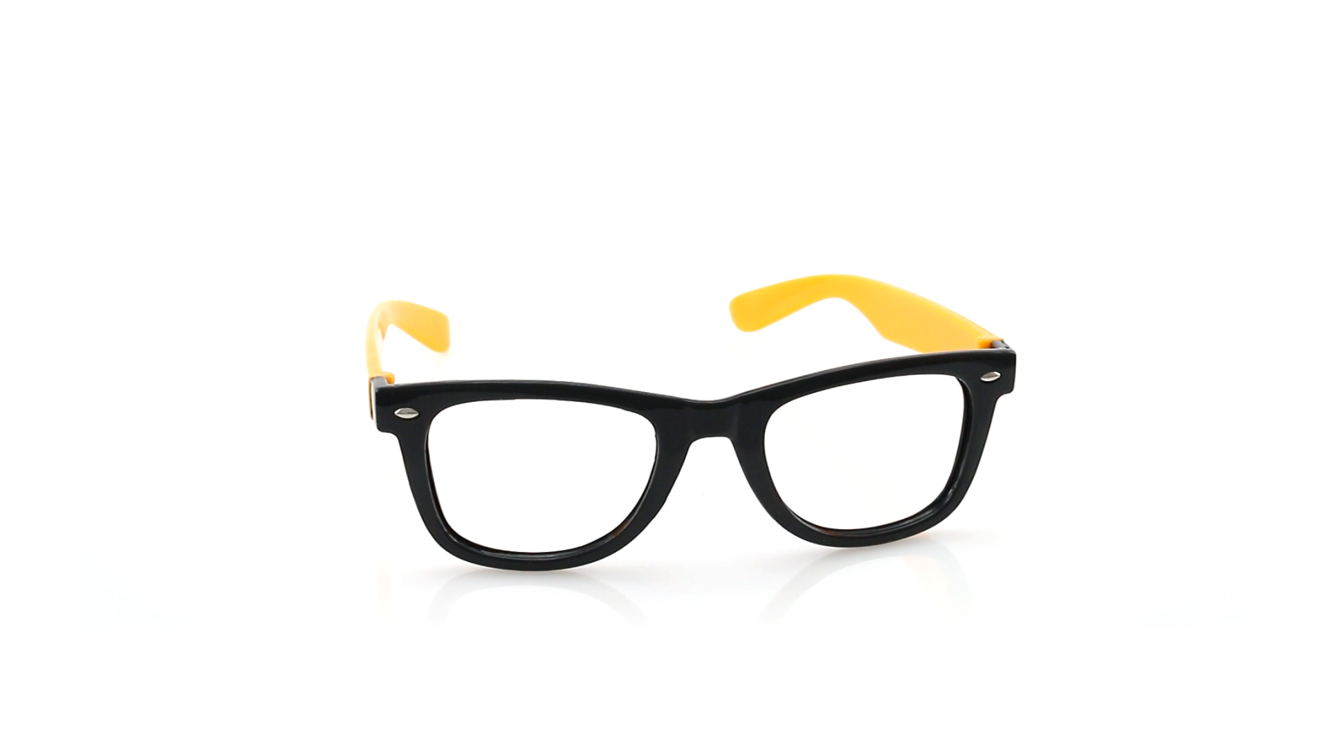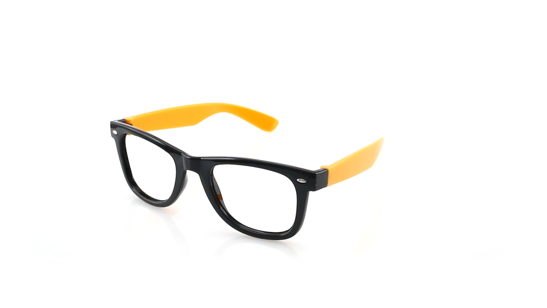 Brillengestell ohne Gläser mit originellem, zweifarbigem Design in verschiedenen Farben.