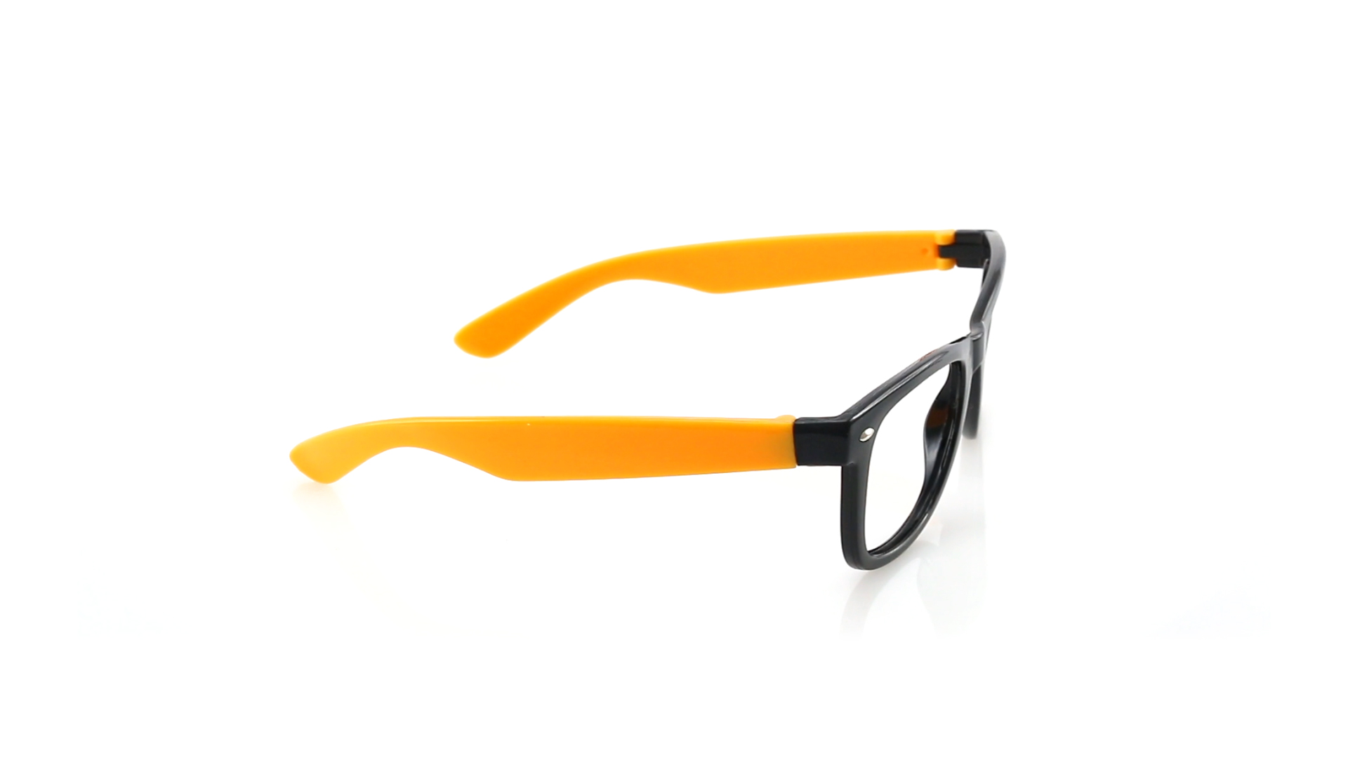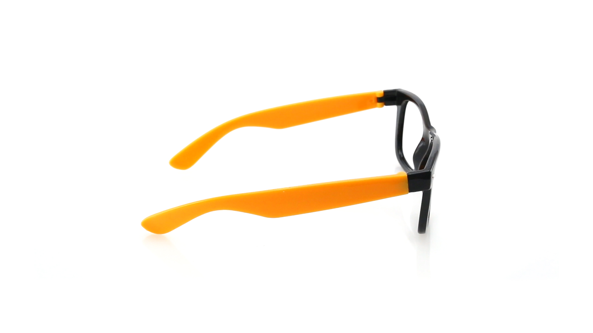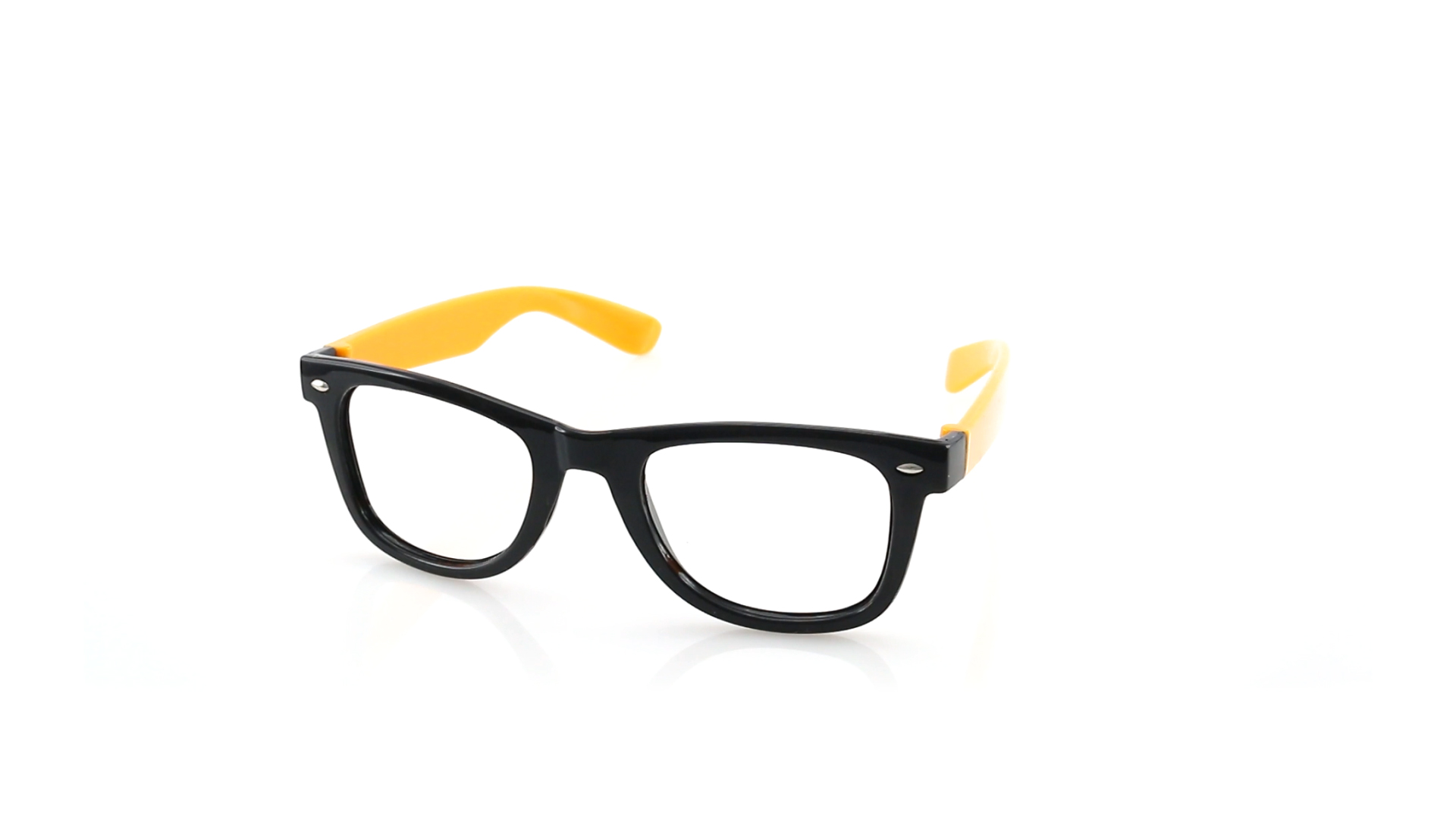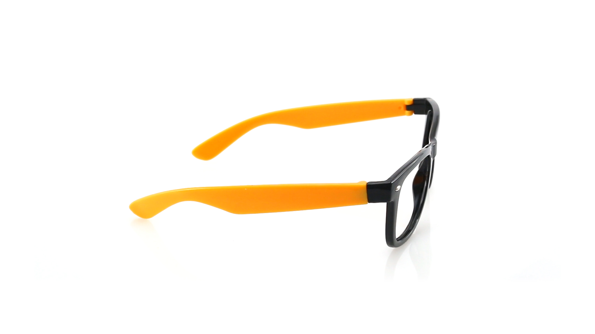 Brillengestell ohne Gläser mit originellem, zweifarbigem Design in verschiedenen Farben.