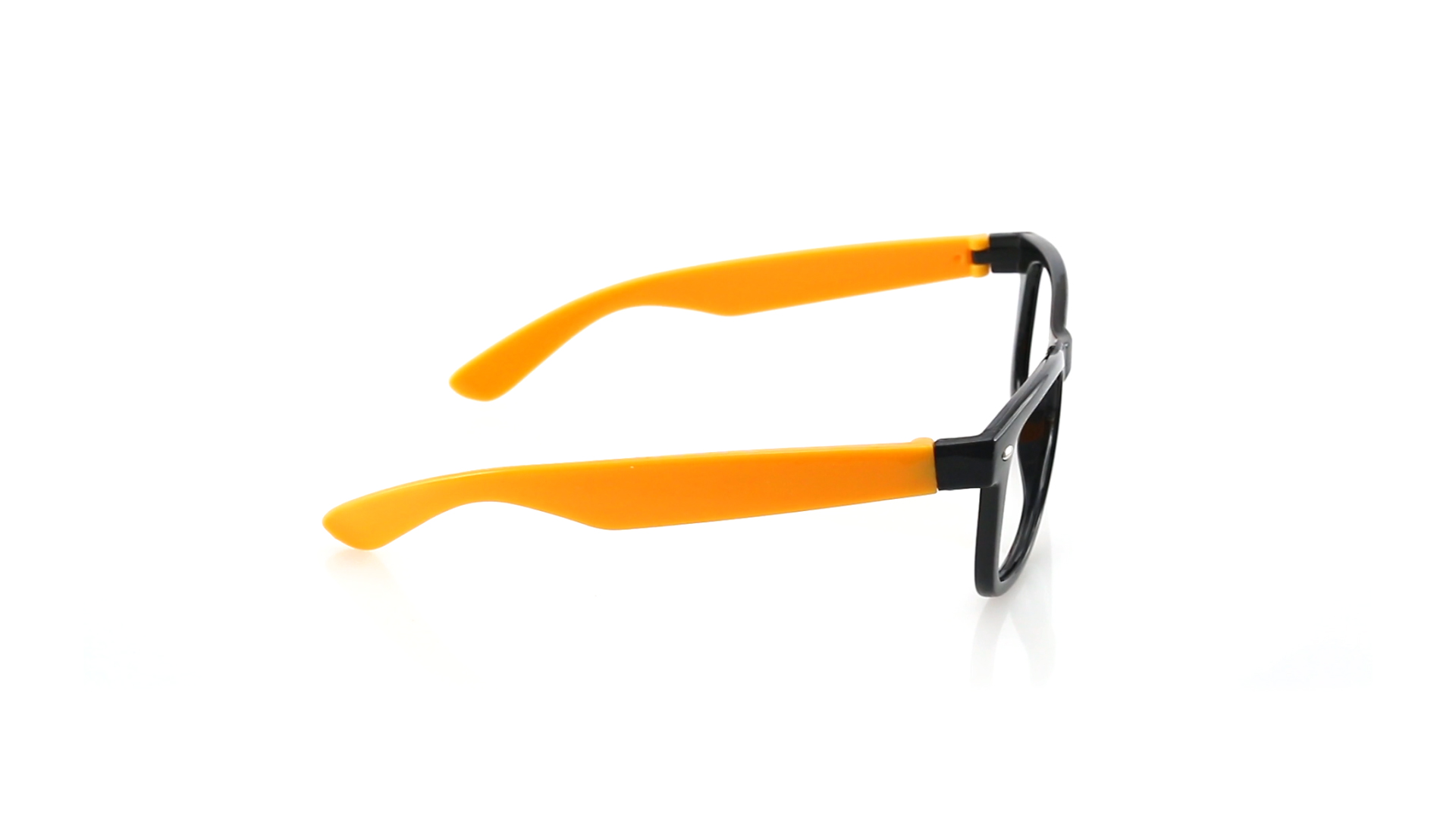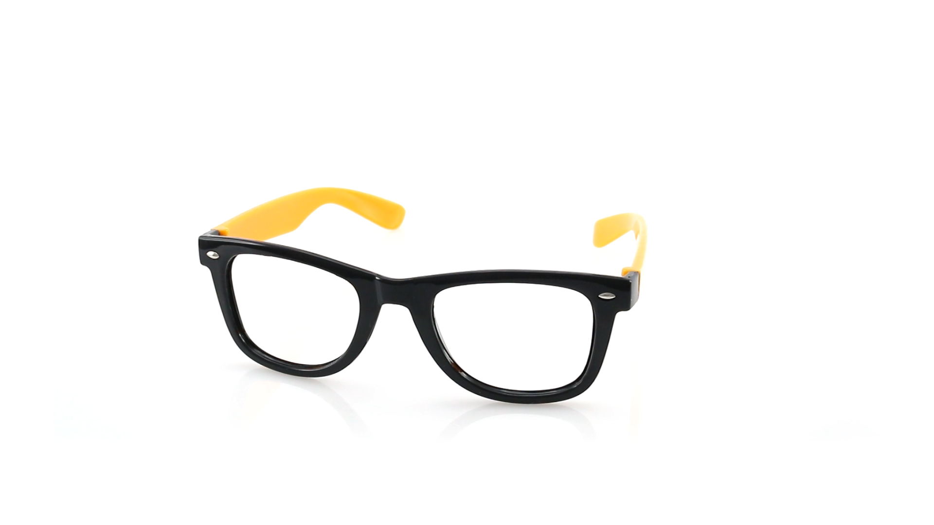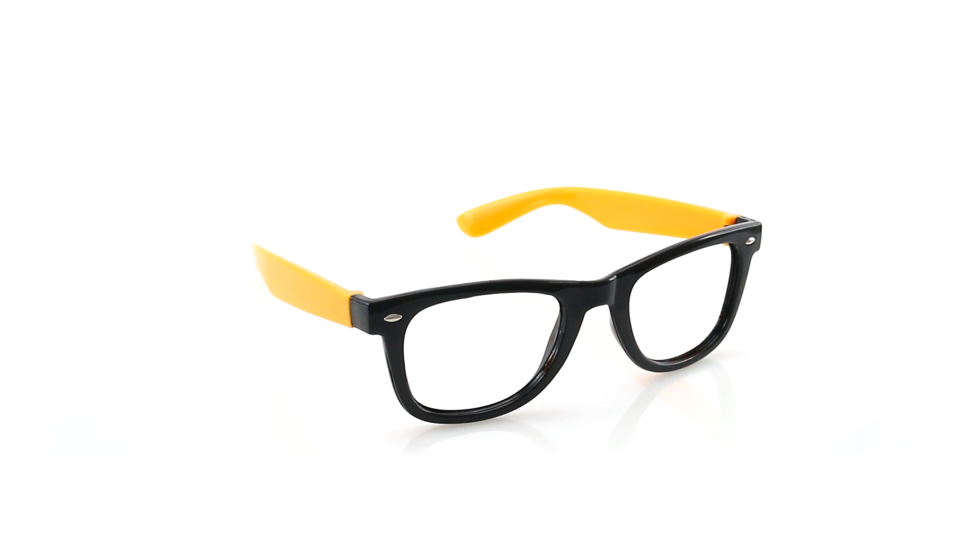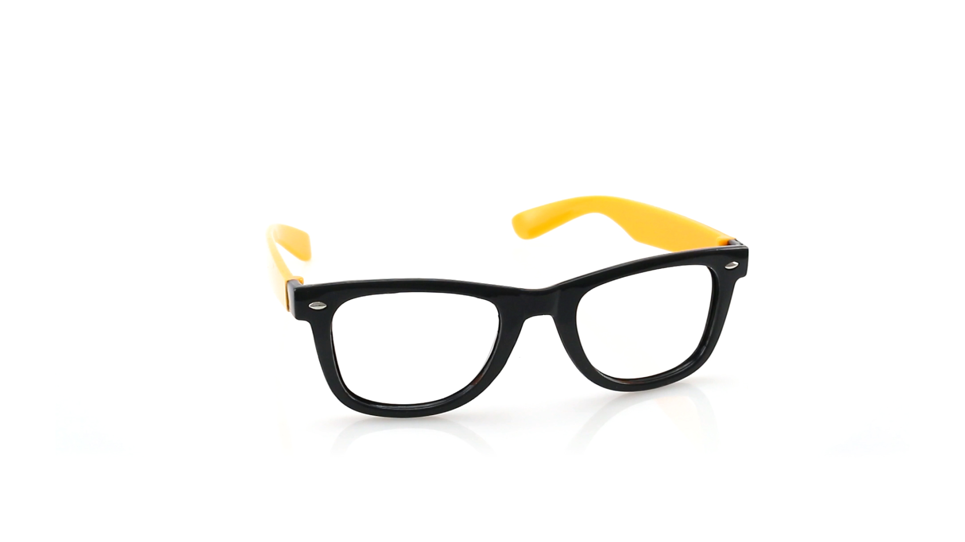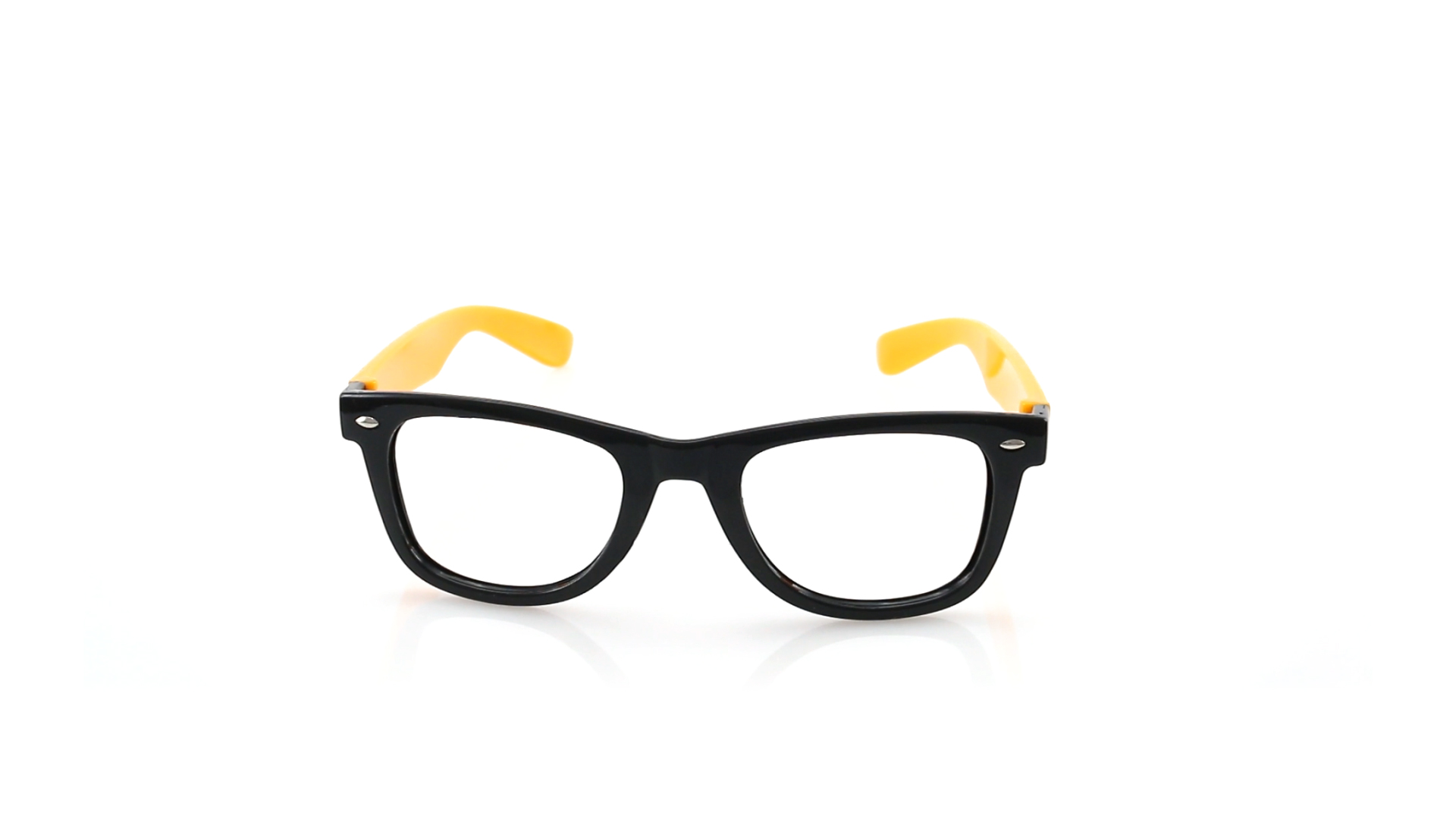 Brillengestell ohne Gläser mit originellem, zweifarbigem Design in verschiedenen Farben.