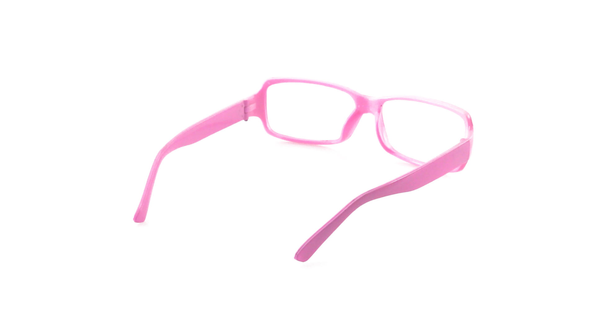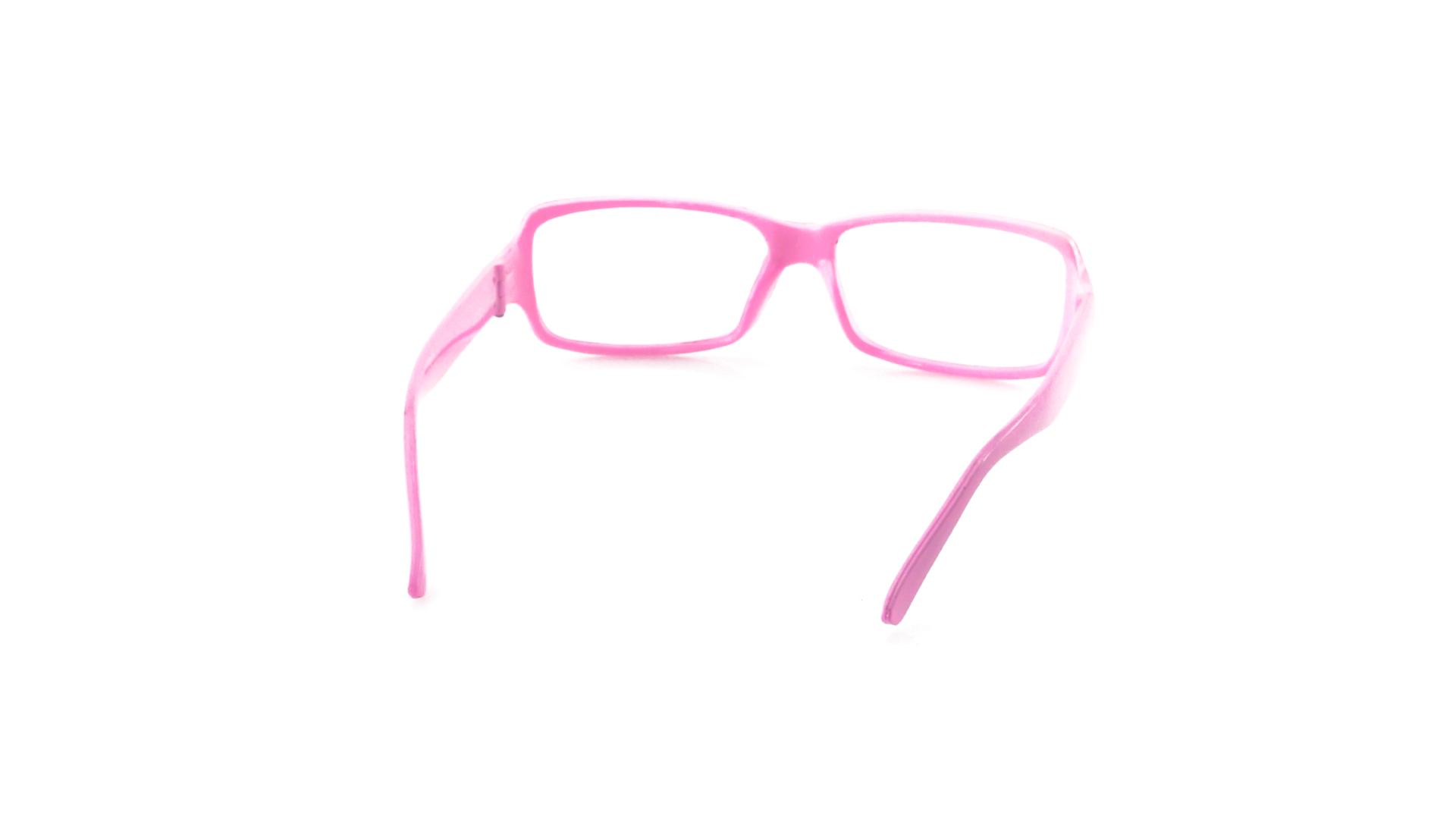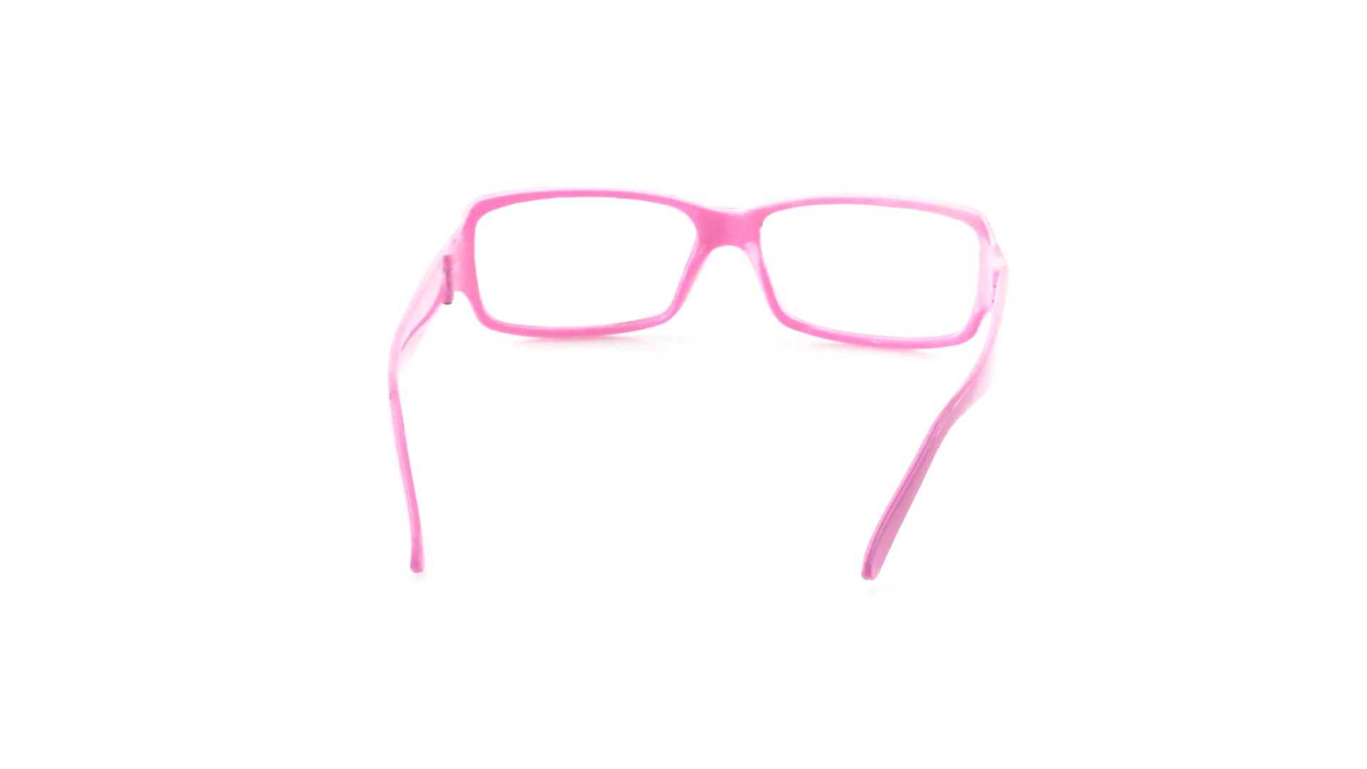 Origineller Brillenrahmen ohne Gläser in verschiedenen kräftigen Farben. Präsentiert in einer gepolsterten Polyesterhülle mit Kordelzug.
