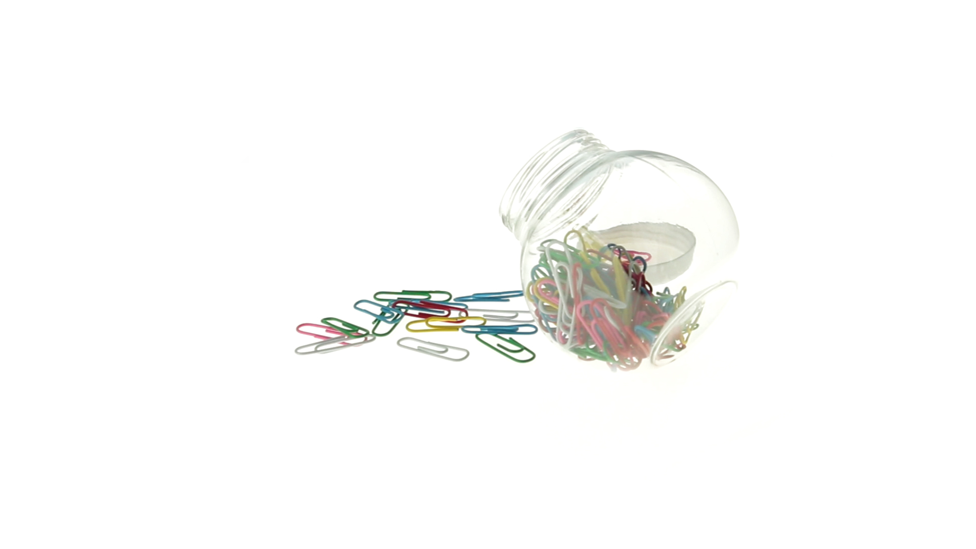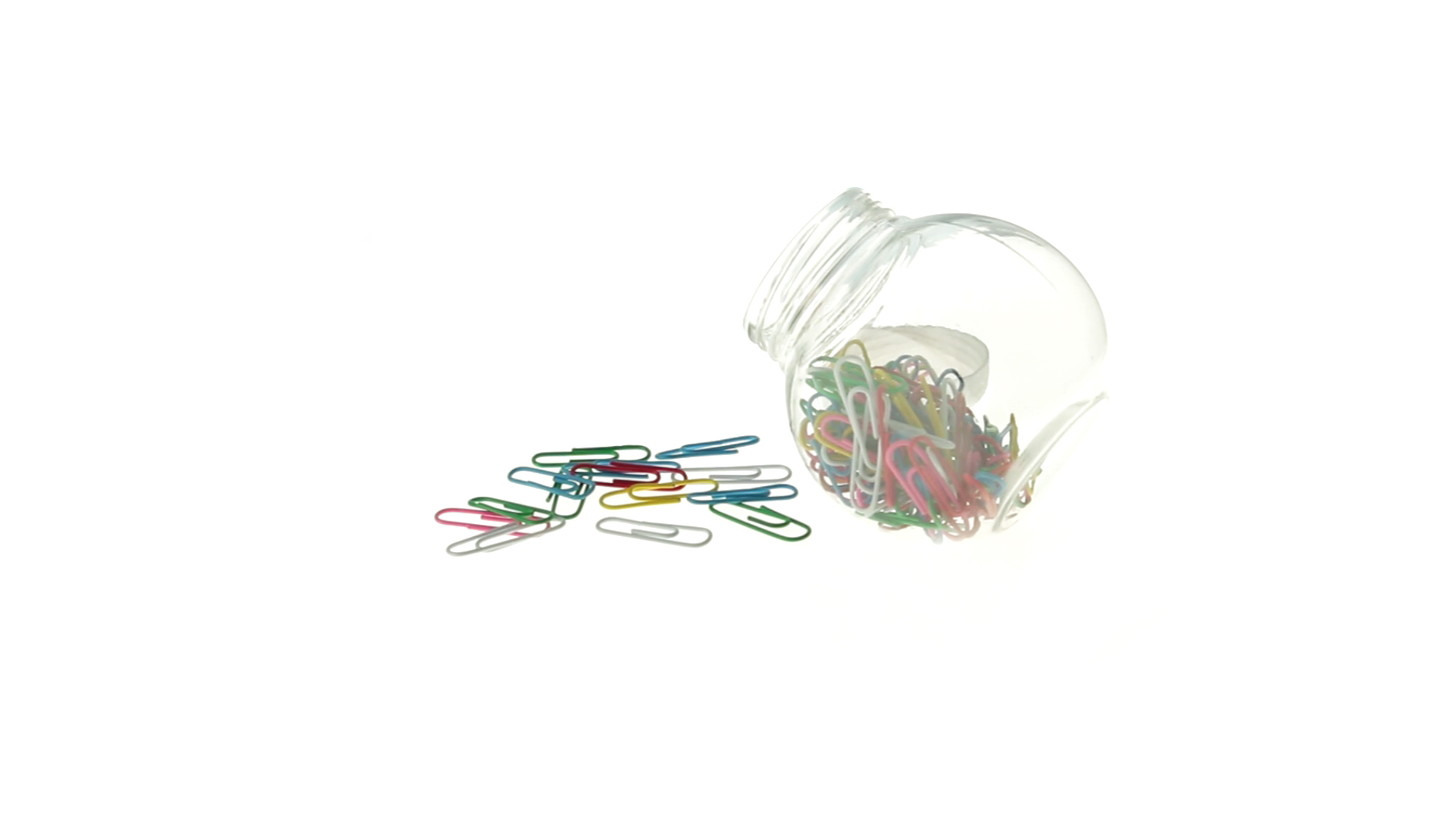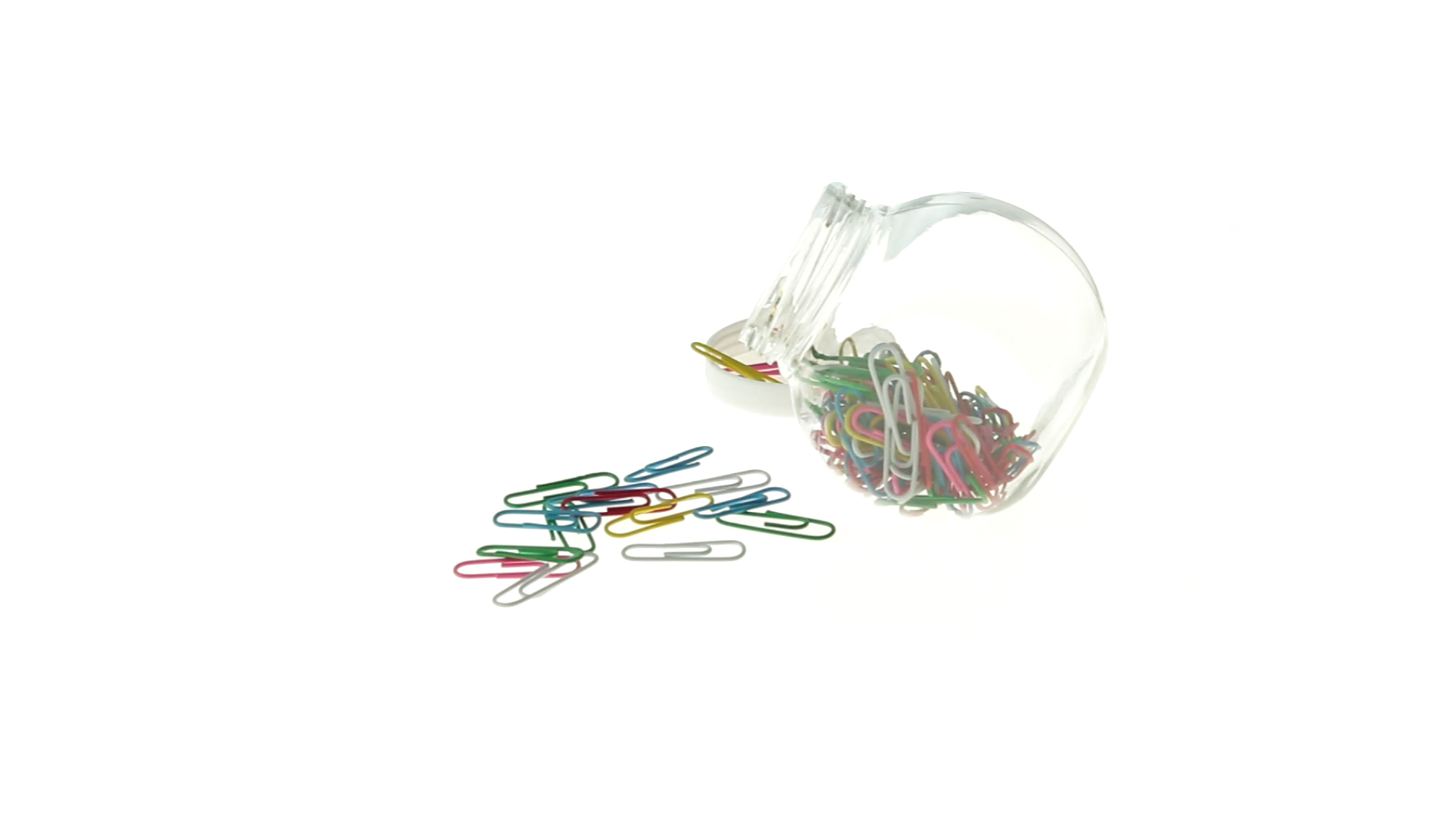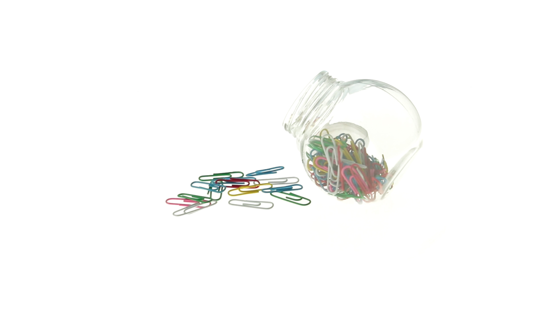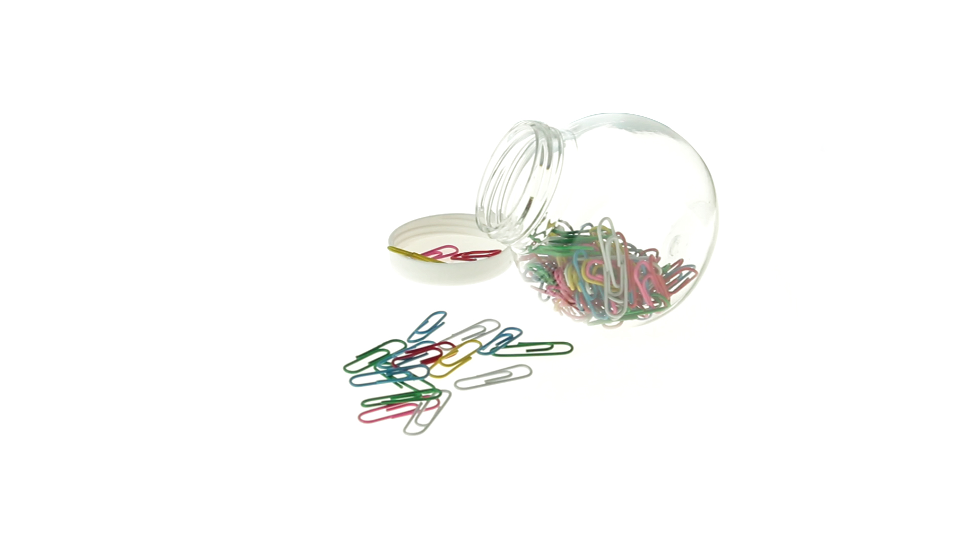 Originelles Büroklammern-Glas mit weissem Schraubverschluss und glatter Oberfläche zum Bedrucken. Mit 100 Clips mit PVC-Überzug in vielen verschiedenen Farben.