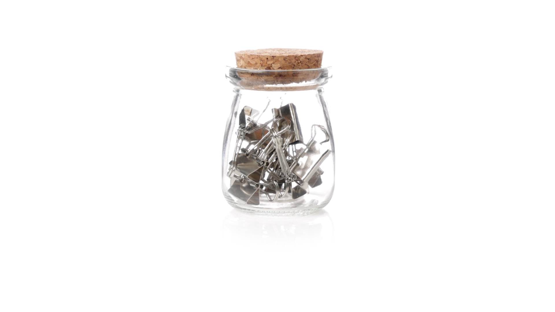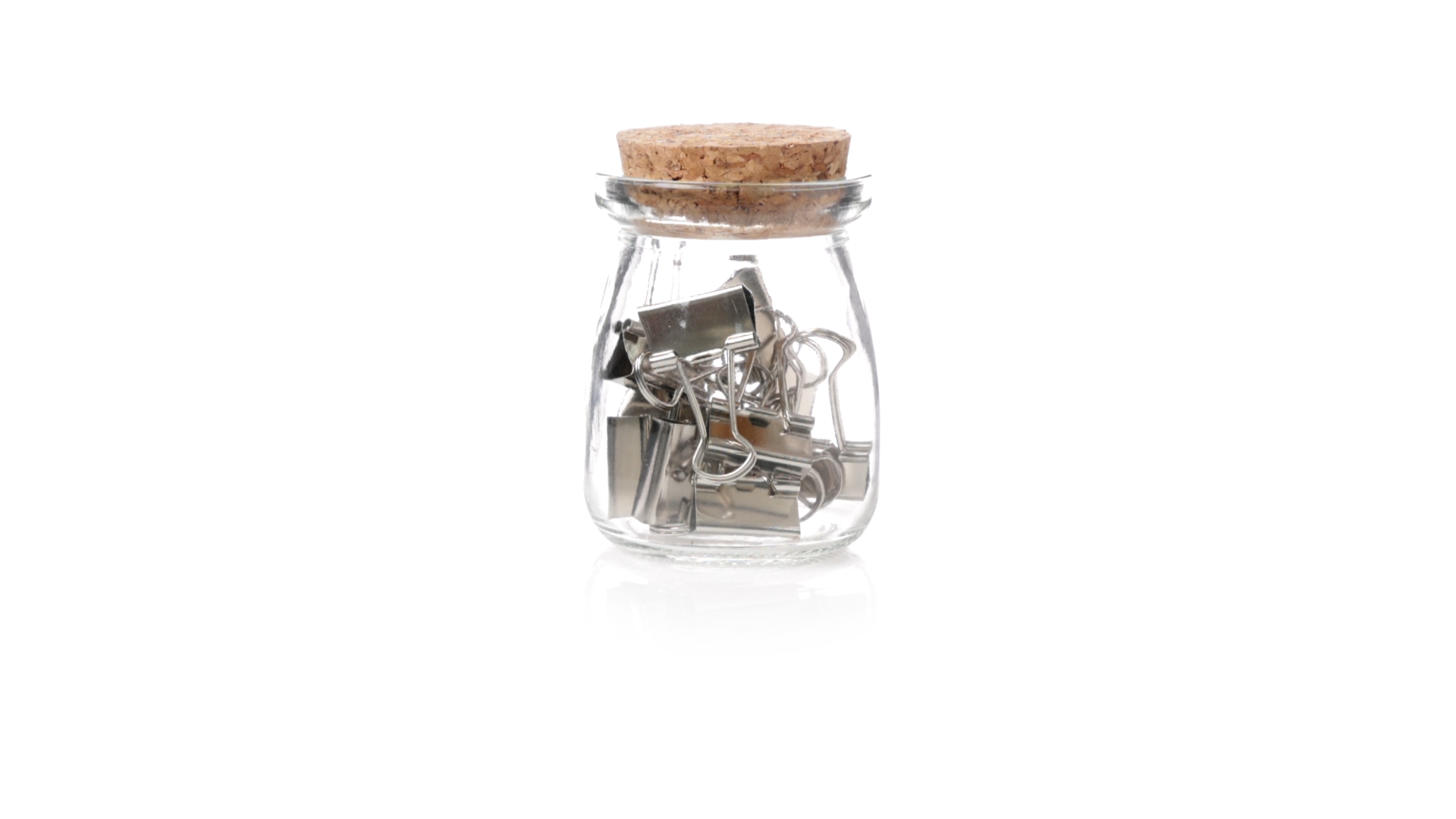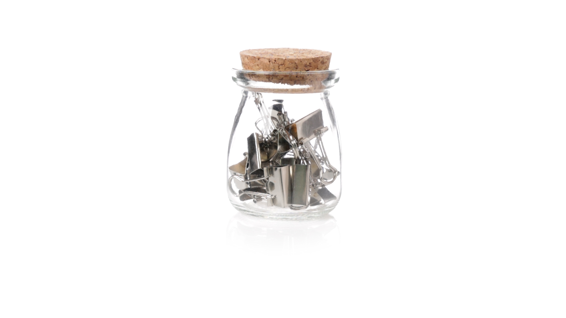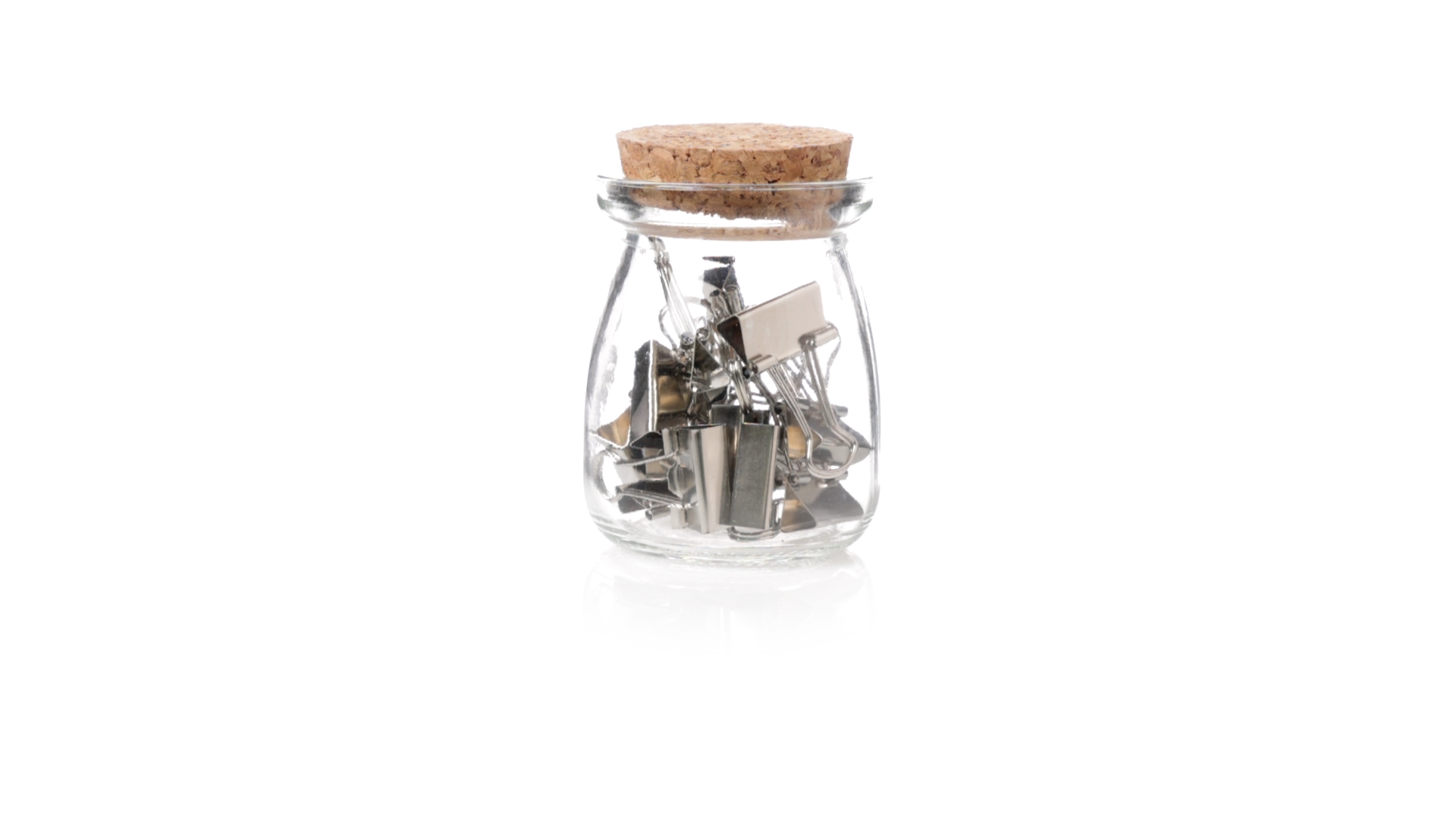 Cliphalter aus widerstandsfähigem, transparentem Glas, mit originellem Vintage-Design und Naturkorkverschluss. Inklusive 15 Metallklammern, präsentiert in einer individuellen Kraftkartonschachtel.