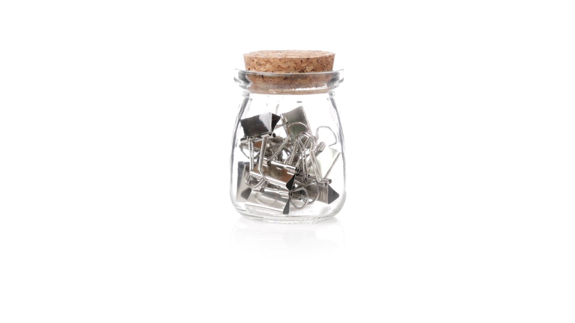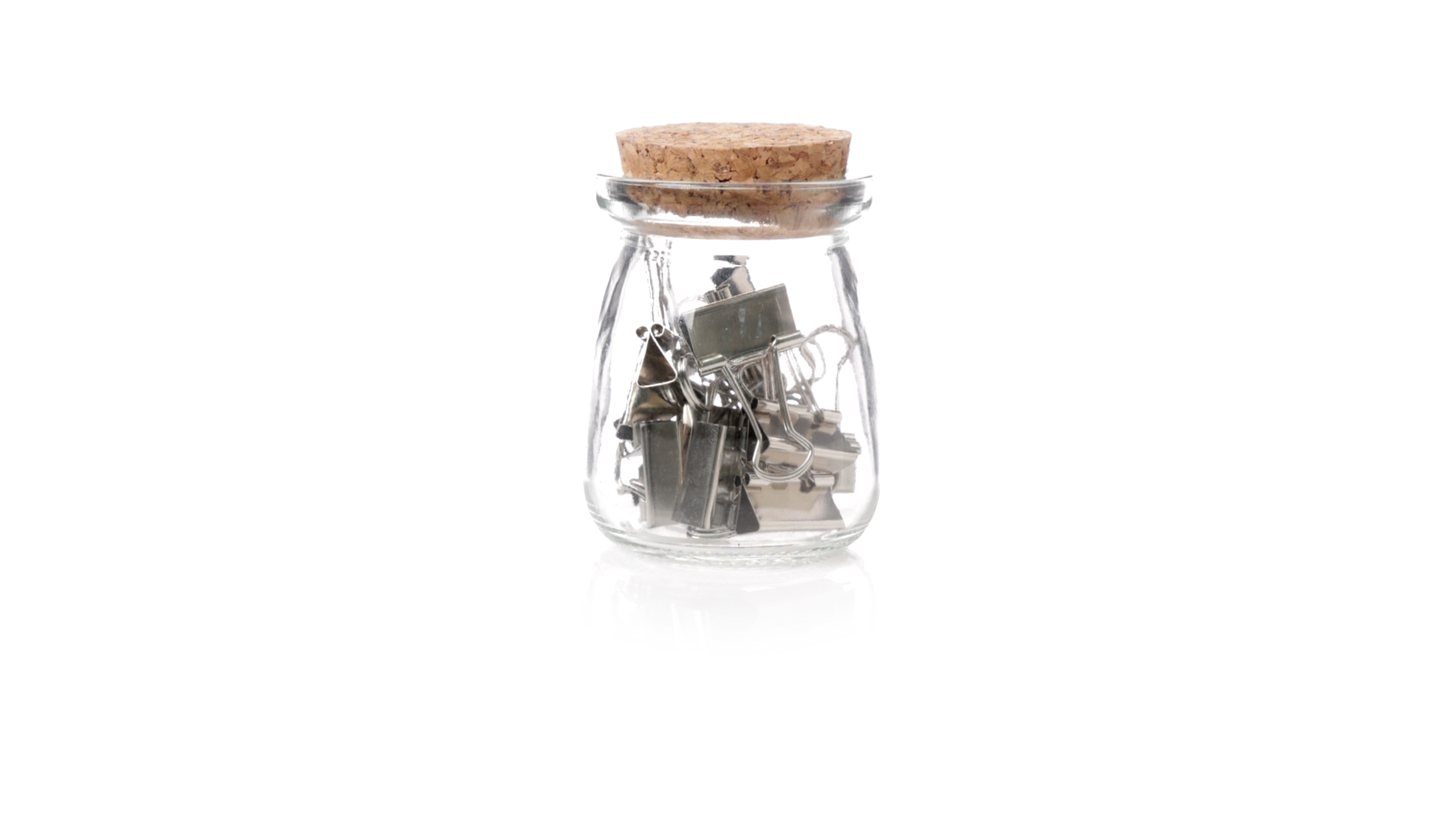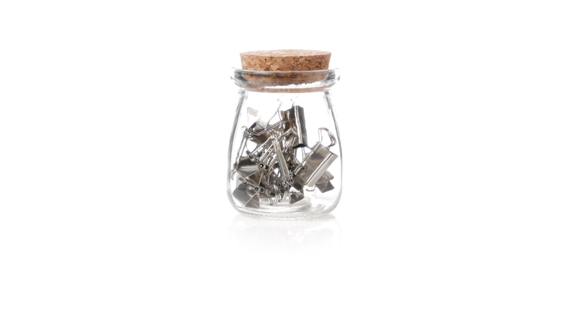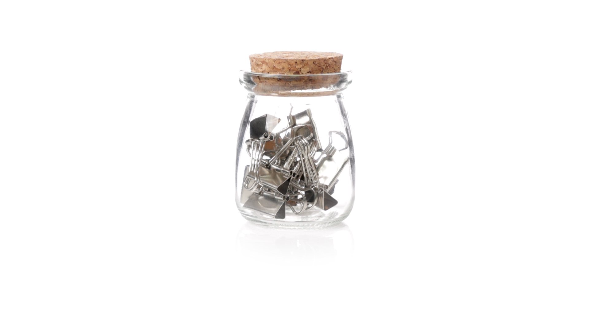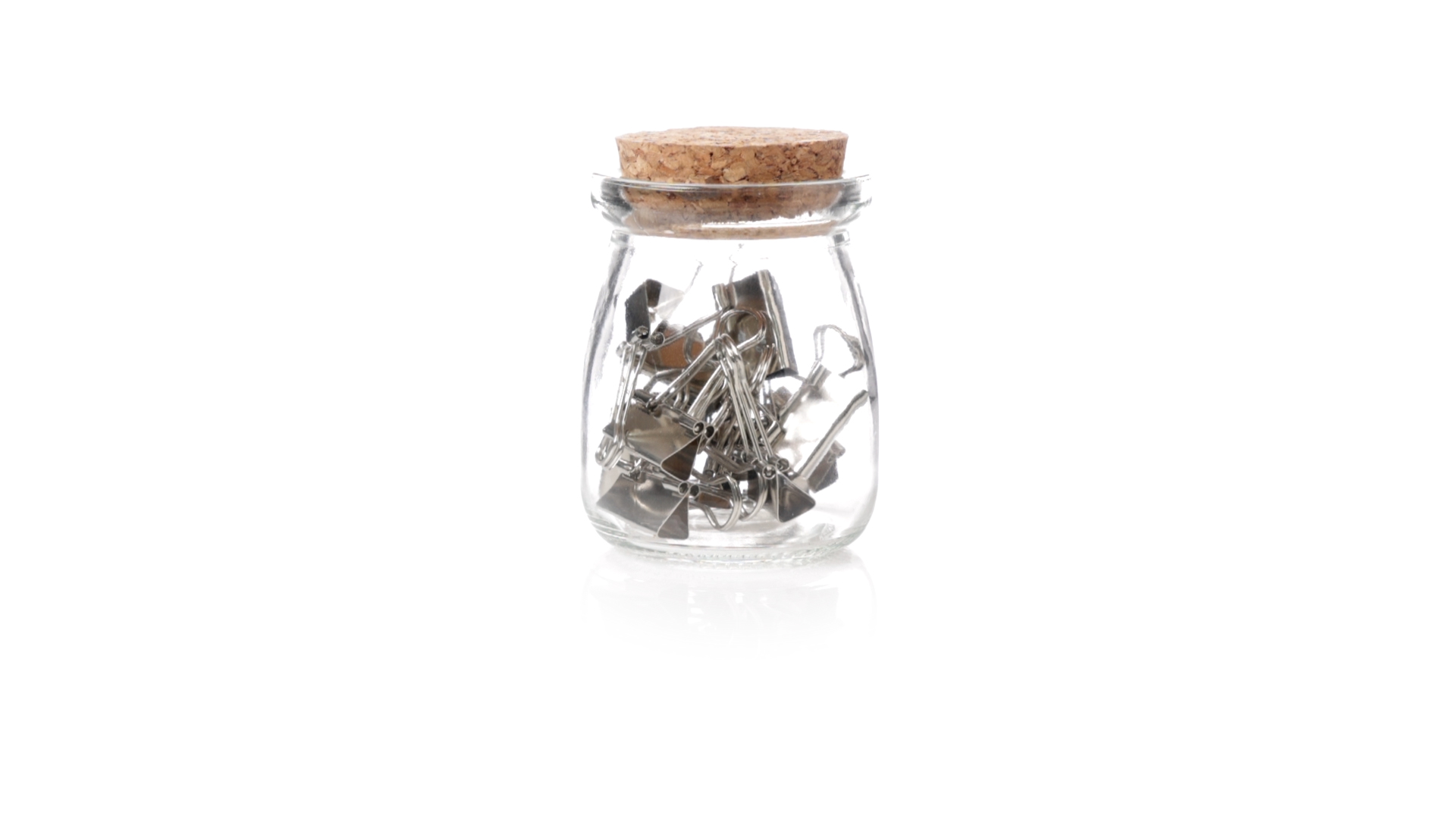 Cliphalter aus widerstandsfähigem, transparentem Glas, mit originellem Vintage-Design und Naturkorkverschluss. Inklusive 15 Metallklammern, präsentiert in einer individuellen Kraftkartonschachtel.