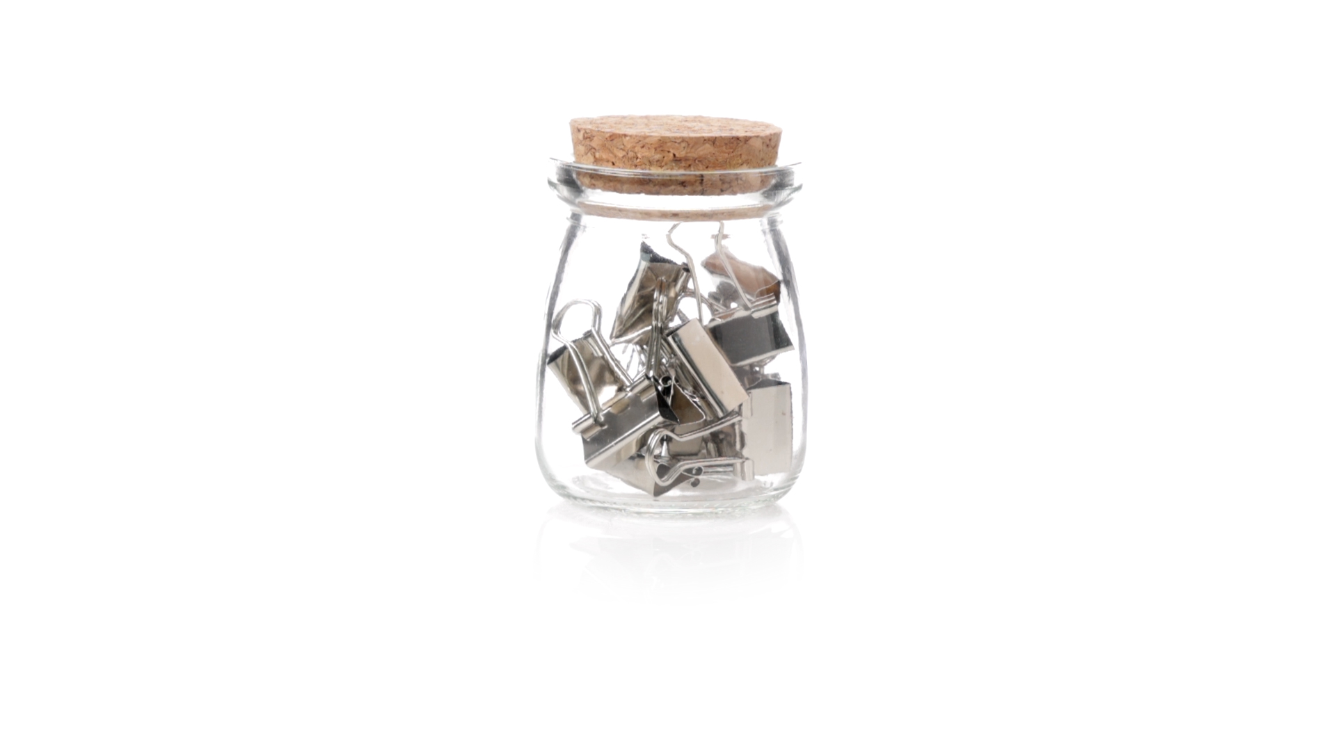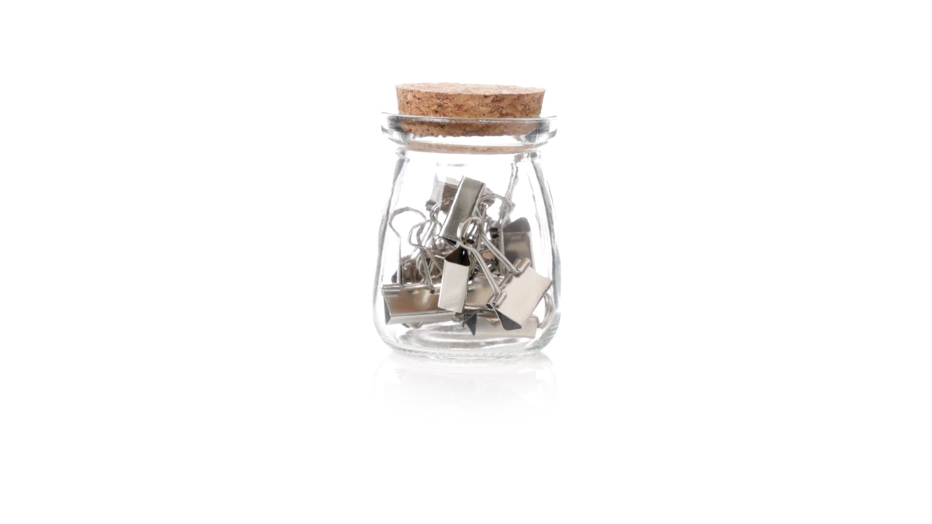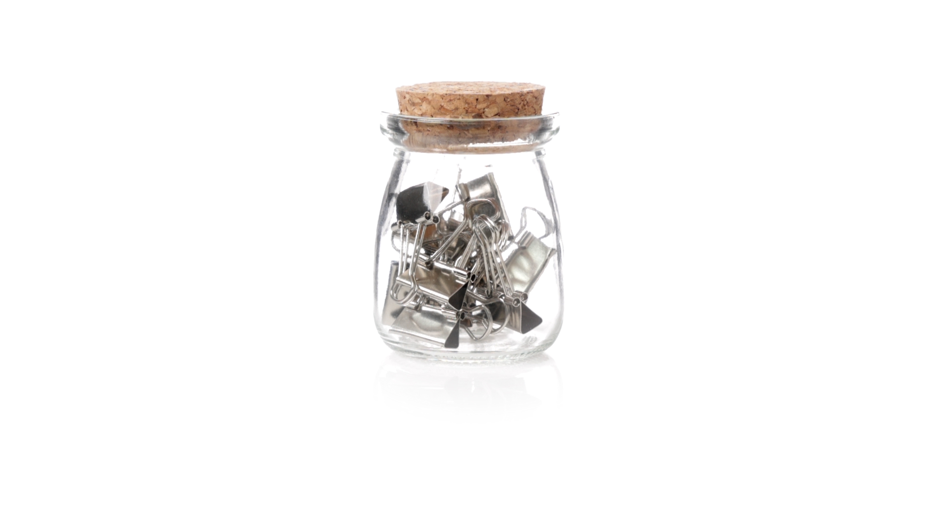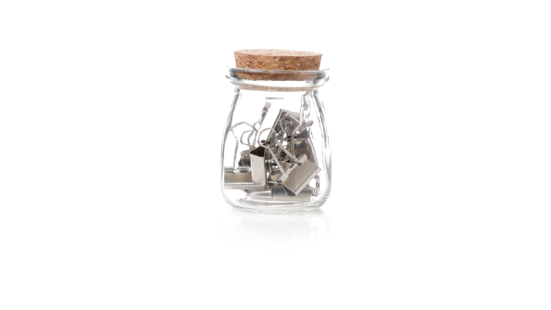 Cliphalter aus widerstandsfähigem, transparentem Glas, mit originellem Vintage-Design und Naturkorkverschluss. Inklusive 15 Metallklammern, präsentiert in einer individuellen Kraftkartonschachtel.