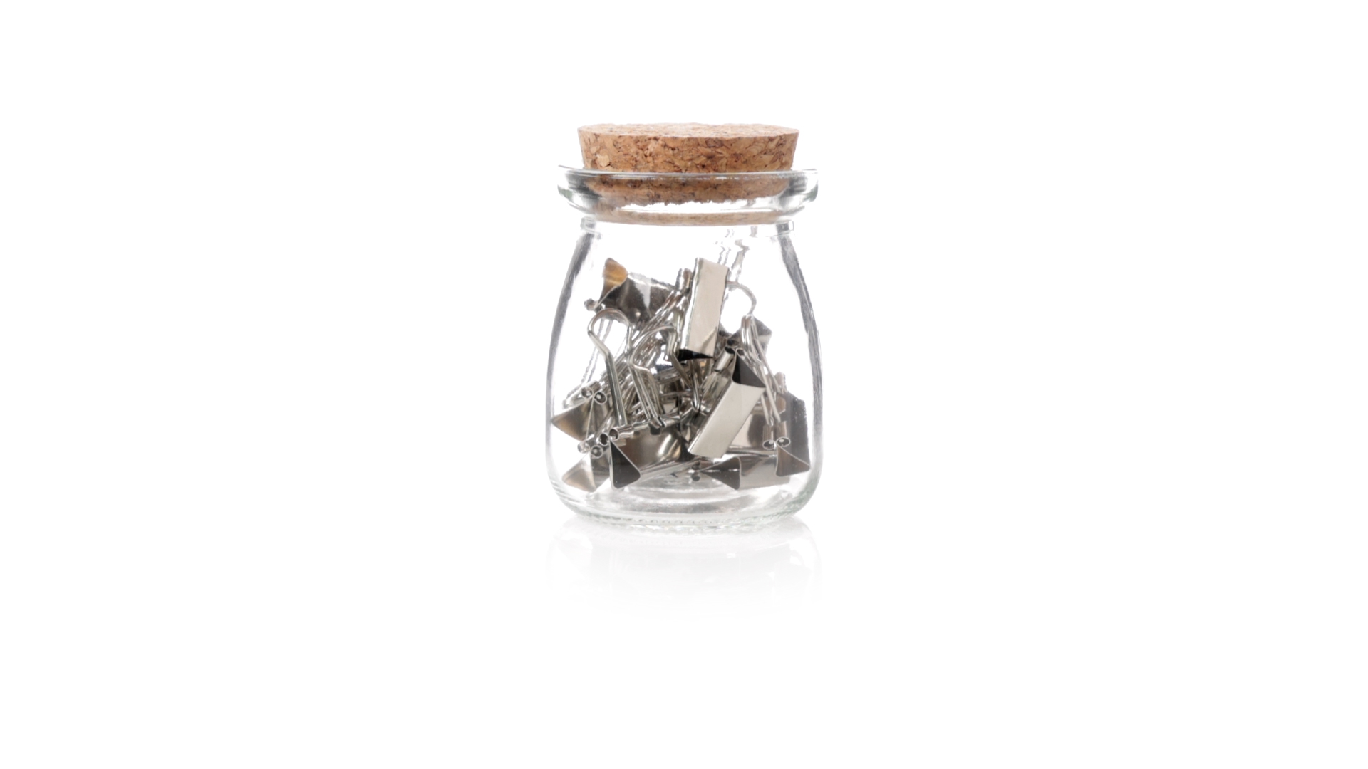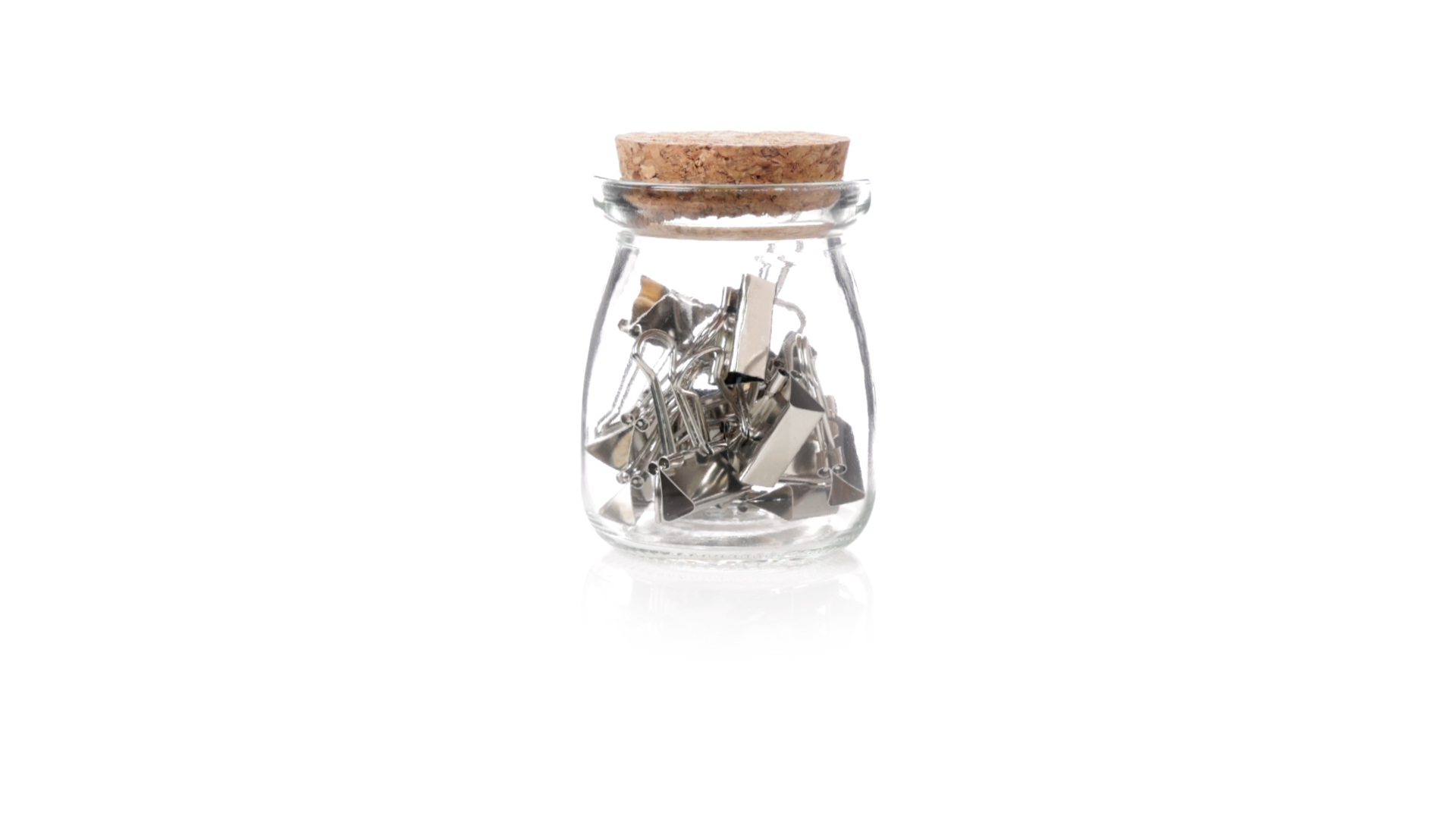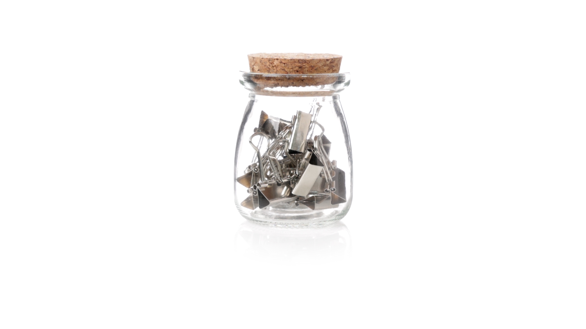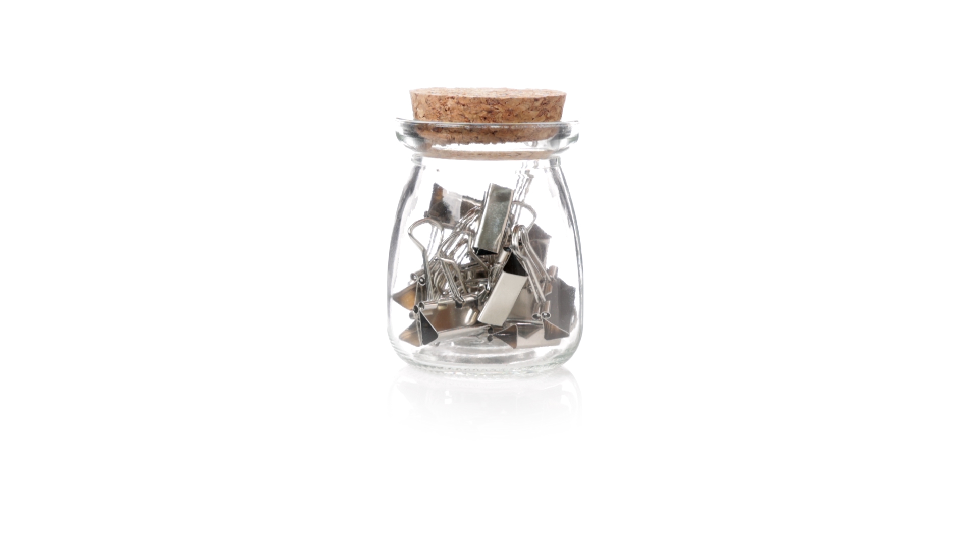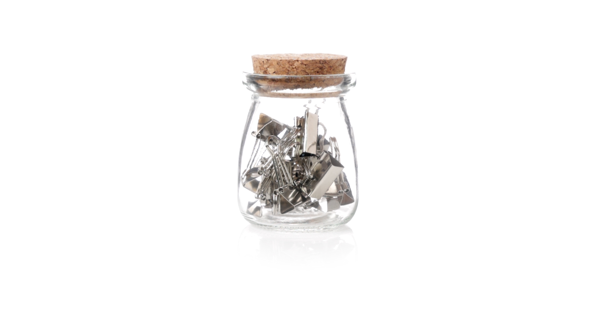 Cliphalter aus widerstandsfähigem, transparentem Glas, mit originellem Vintage-Design und Naturkorkverschluss. Inklusive 15 Metallklammern, präsentiert in einer individuellen Kraftkartonschachtel.
