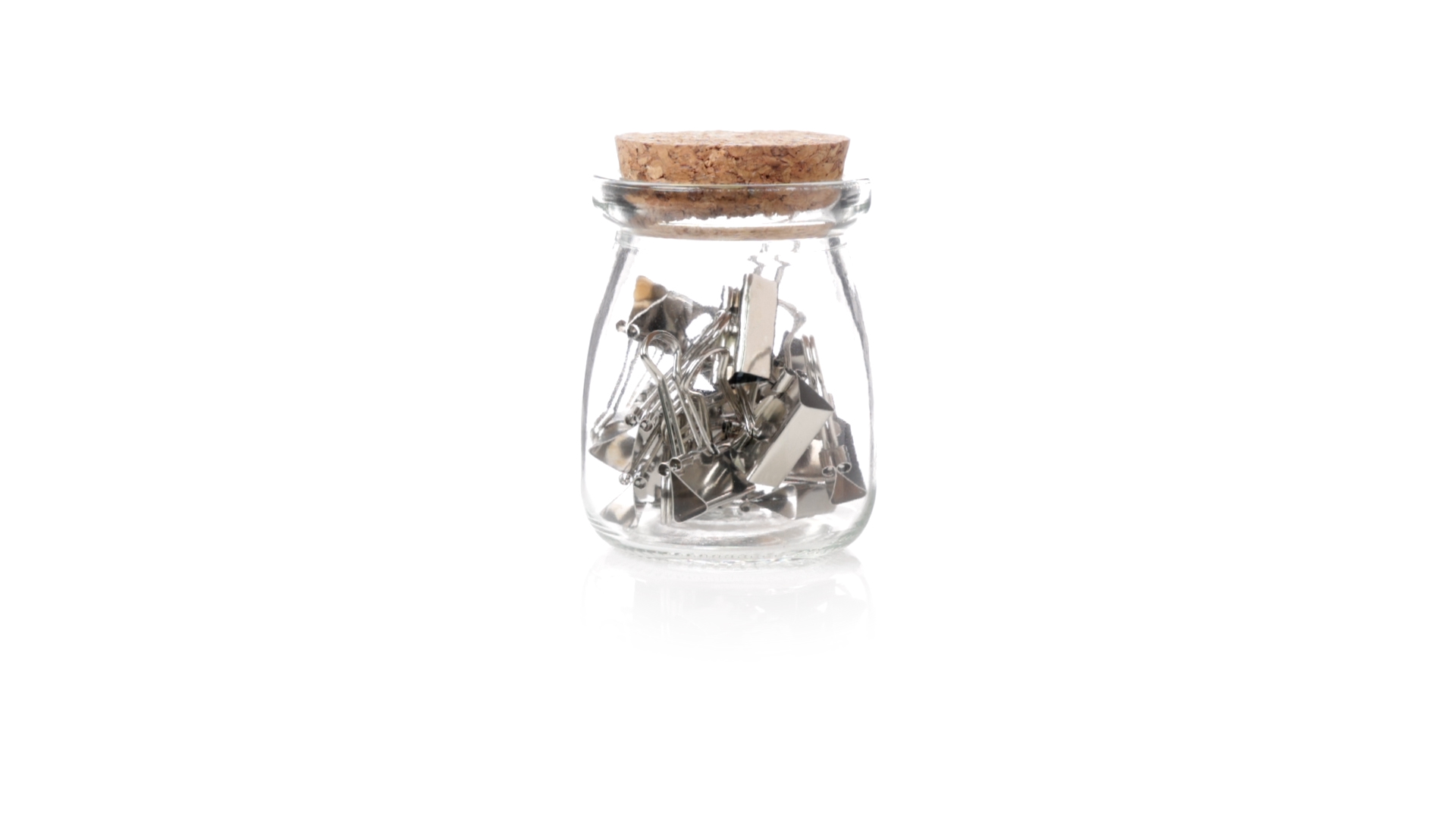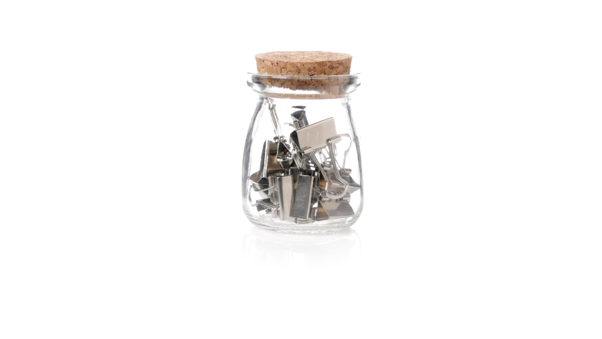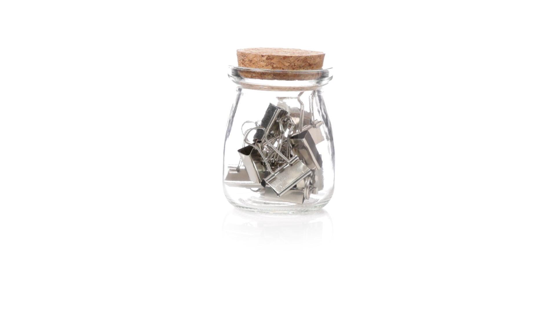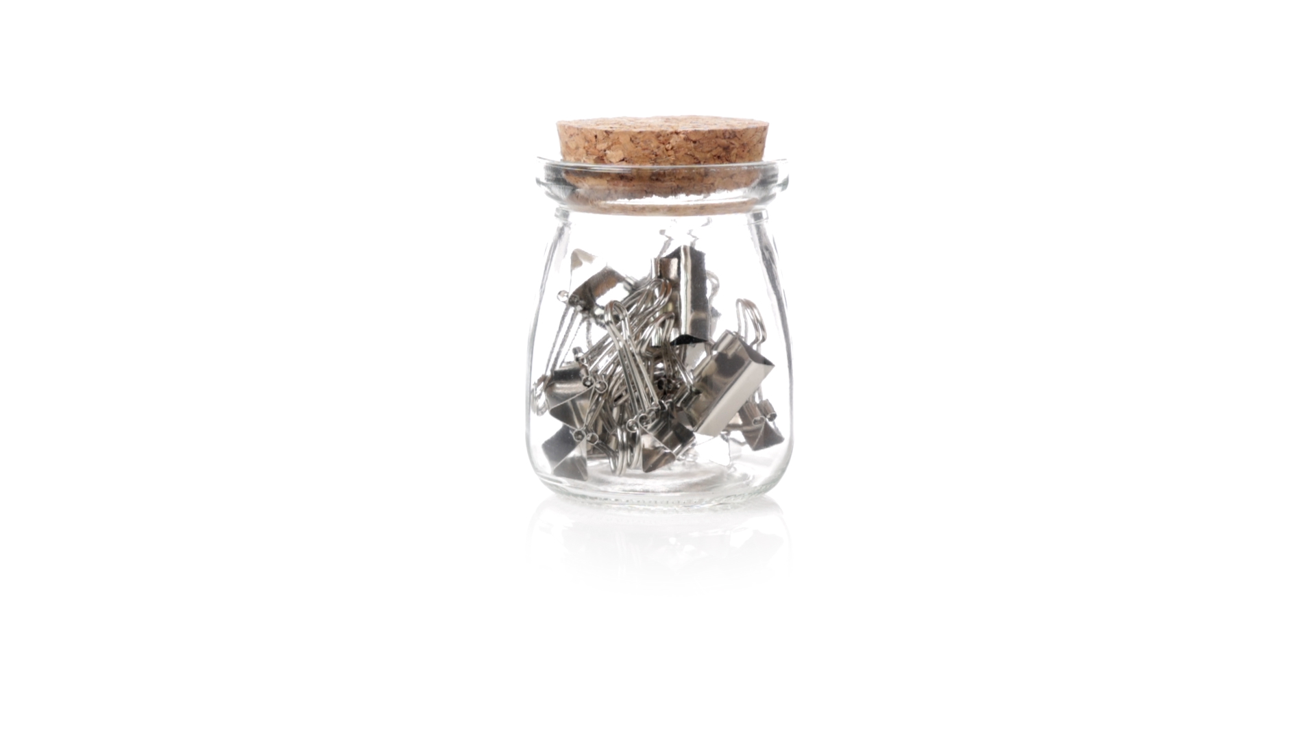 Cliphalter aus widerstandsfähigem, transparentem Glas, mit originellem Vintage-Design und Naturkorkverschluss. Inklusive 15 Metallklammern, präsentiert in einer individuellen Kraftkartonschachtel.