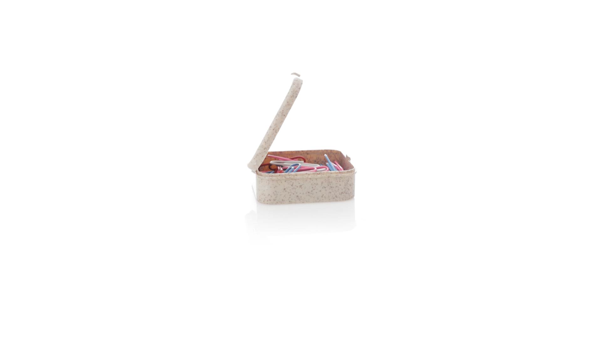 Praktischer Cliphalter aus Weizenstroh. Mit Steckverschluss und aus recycelten Elementen gefertigt, mit 50 Clips im Inneren.