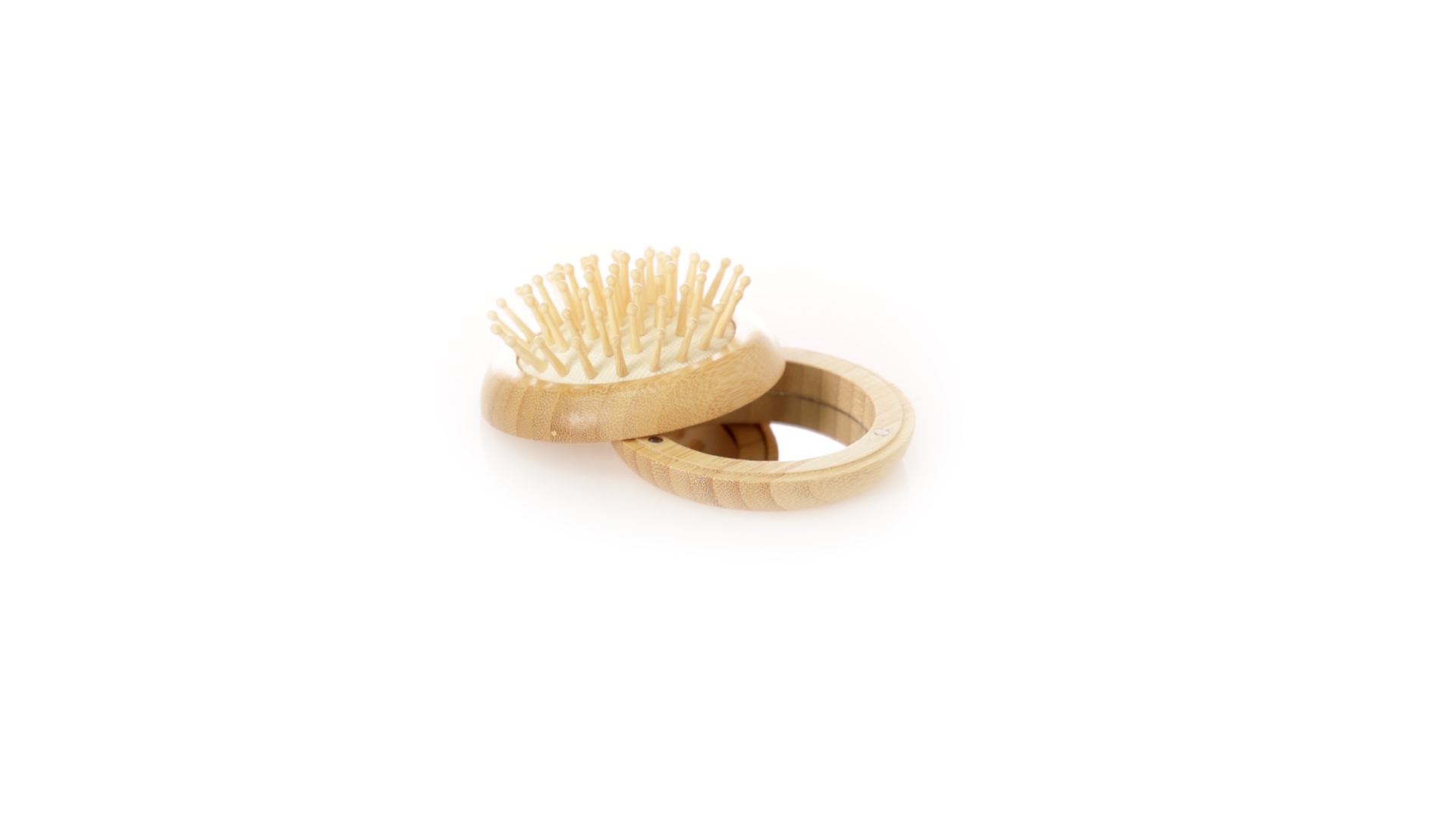 Originelle Bürste mit Spiegel aus natürlichem Bambusholz. Die magnetische Befestigung und die kompakte Grösse machen ihn zu einem perfekten Accessoire für jeden Tag. Präsentiert in einer individuellen Kraft-Design-Box.