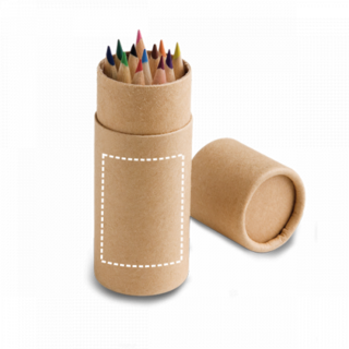 12 Holzbuntstifte in einer runden Kartonschachtel. ø35 x 97 mm