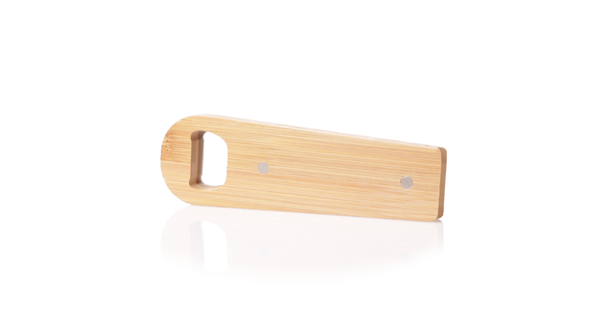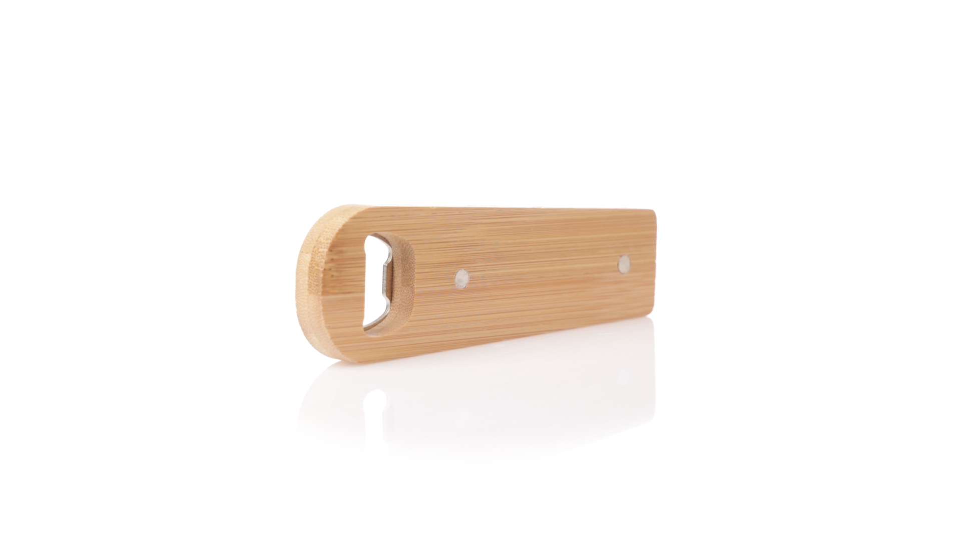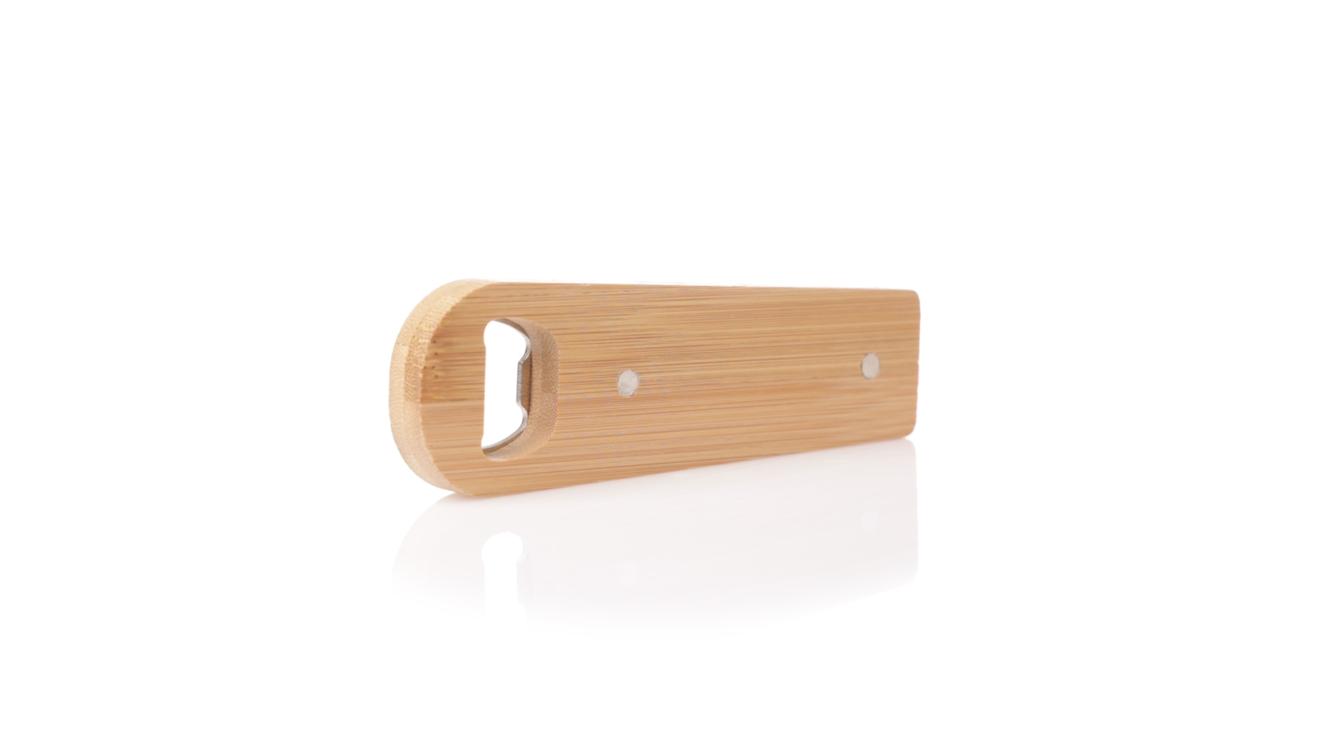 Linie Natur Origineller magnetischer Flaschenöffner, hergestellt aus widerstandsfähigem Bambus. Mit integrierter Klemme im Gehäuse und Metallöffnungssystem.