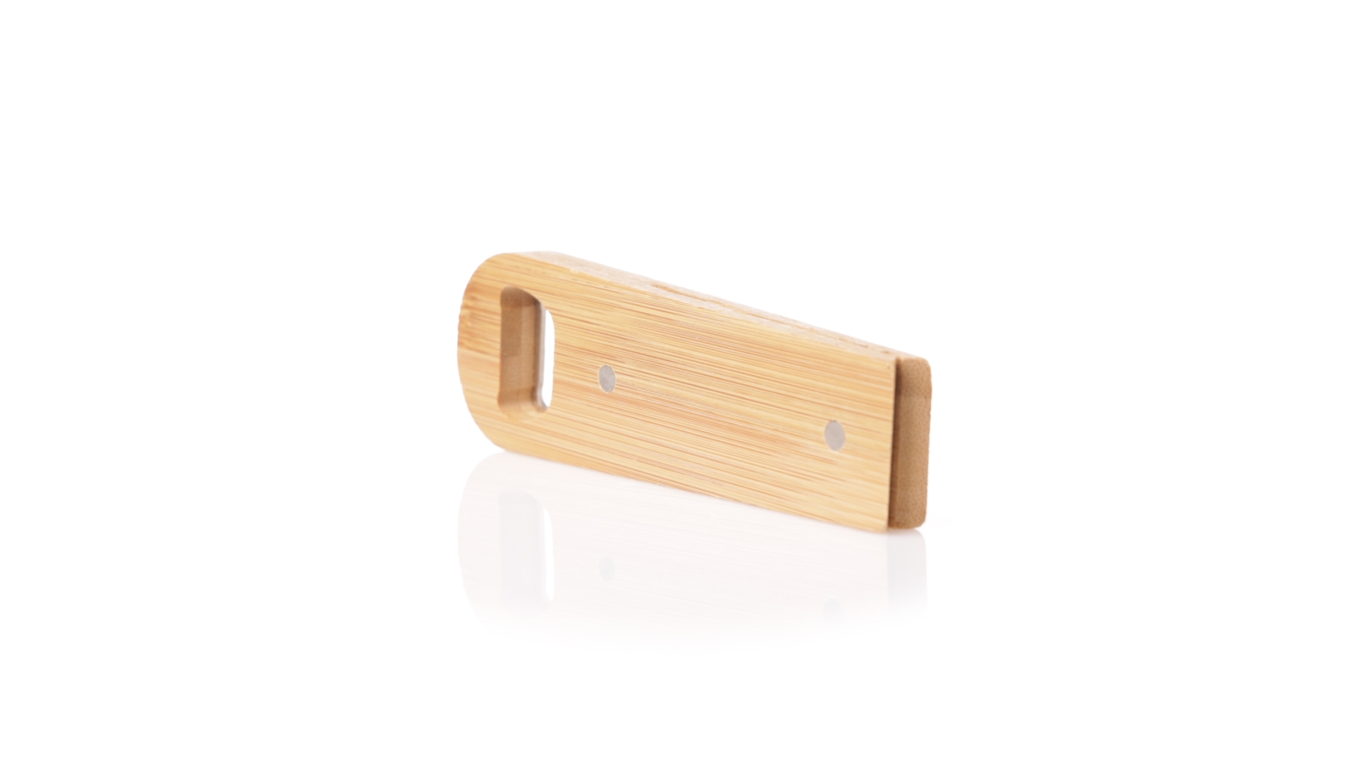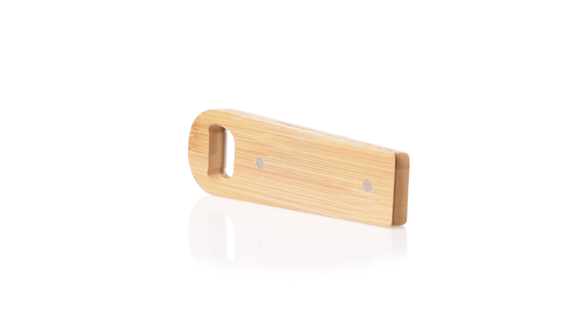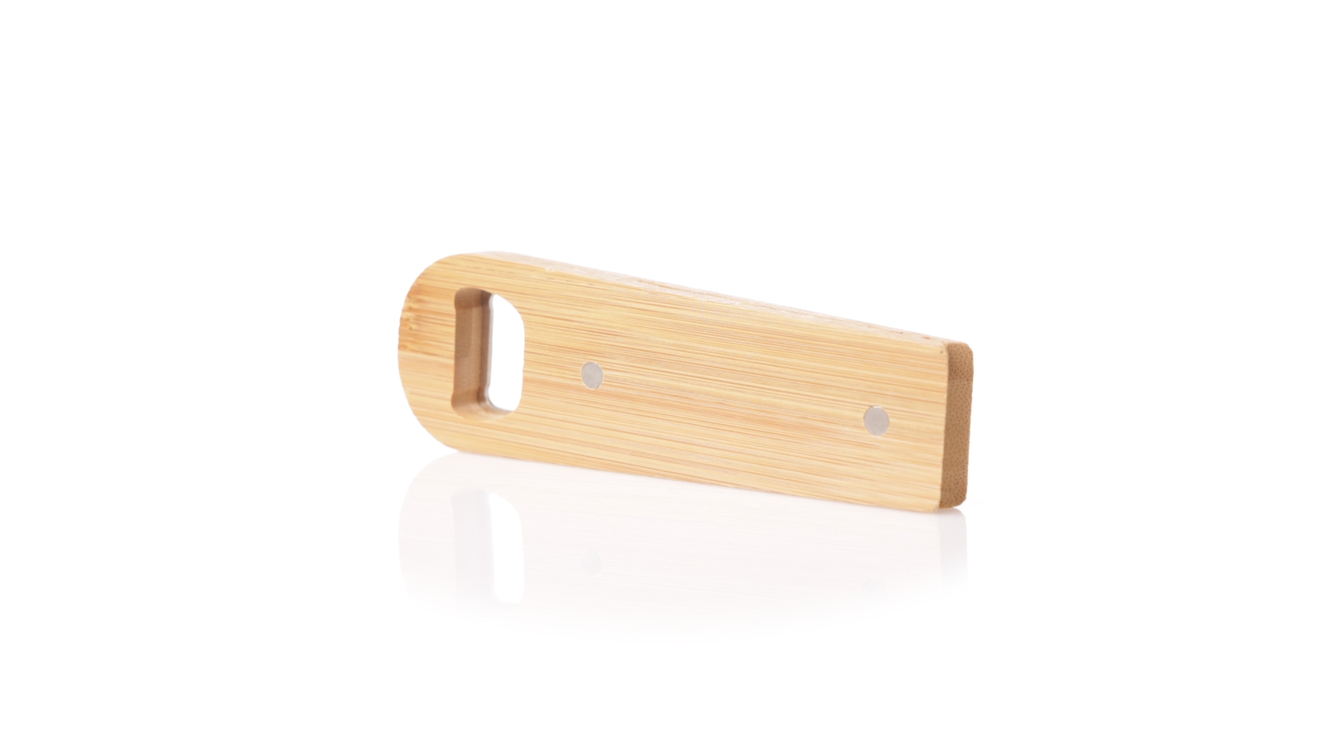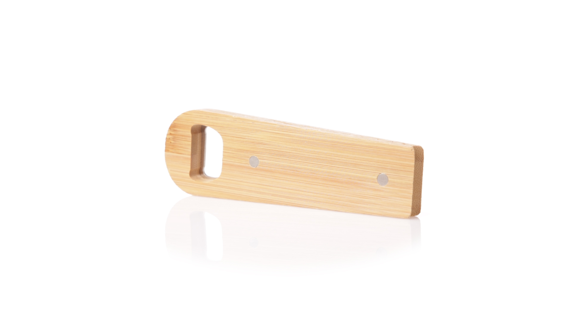 Linie Natur Origineller magnetischer Flaschenöffner, hergestellt aus widerstandsfähigem Bambus. Mit integrierter Klemme im Gehäuse und Metallöffnungssystem.