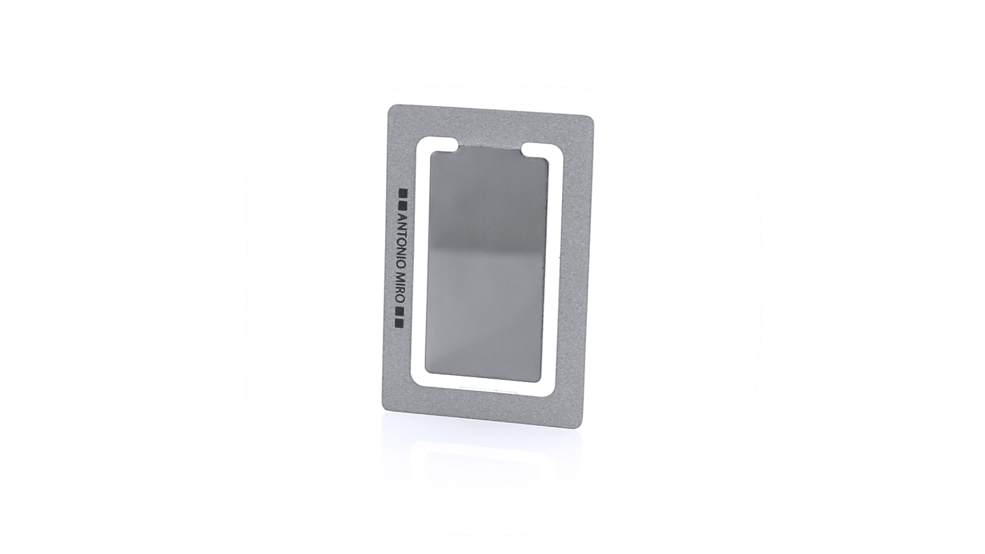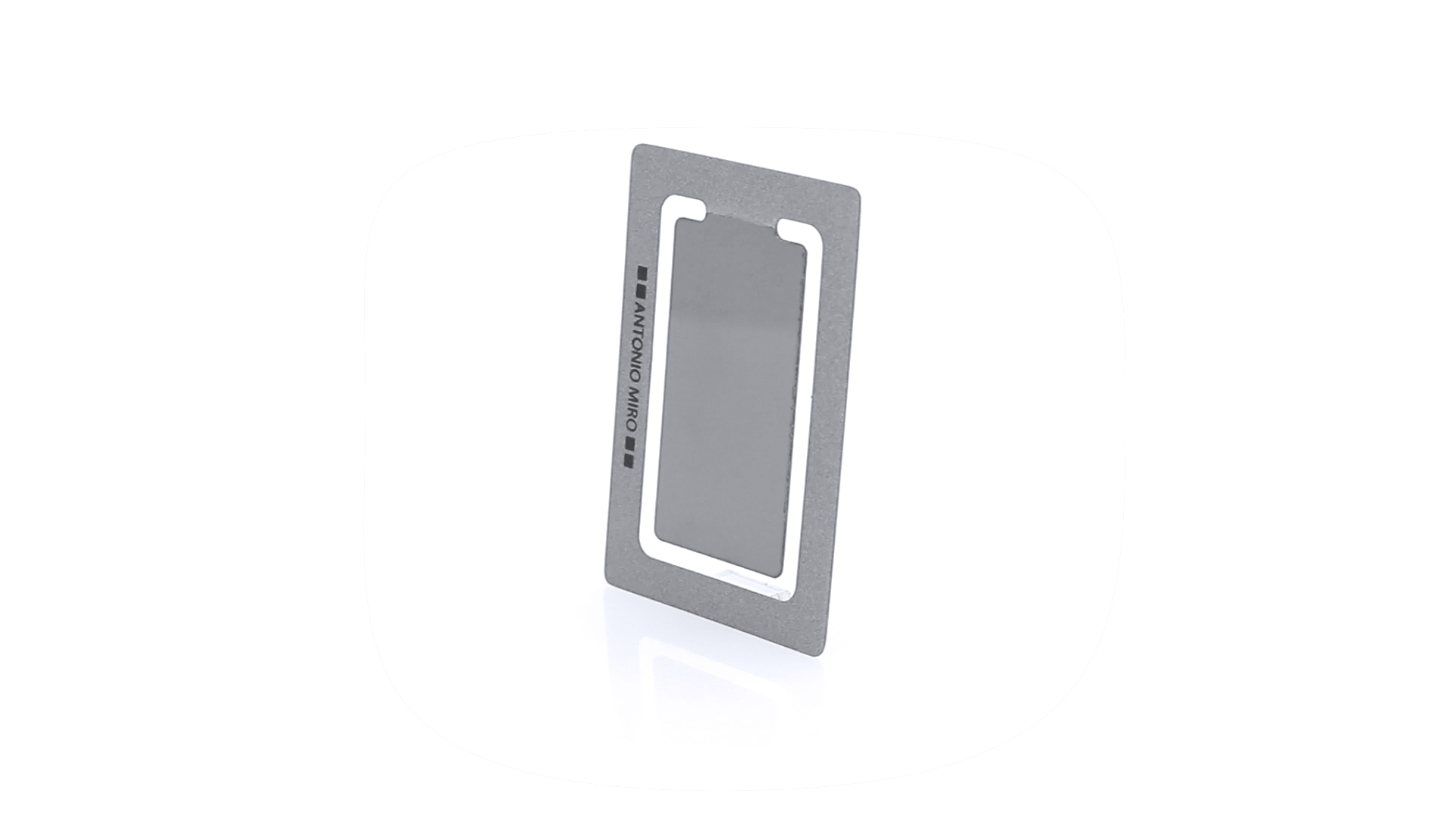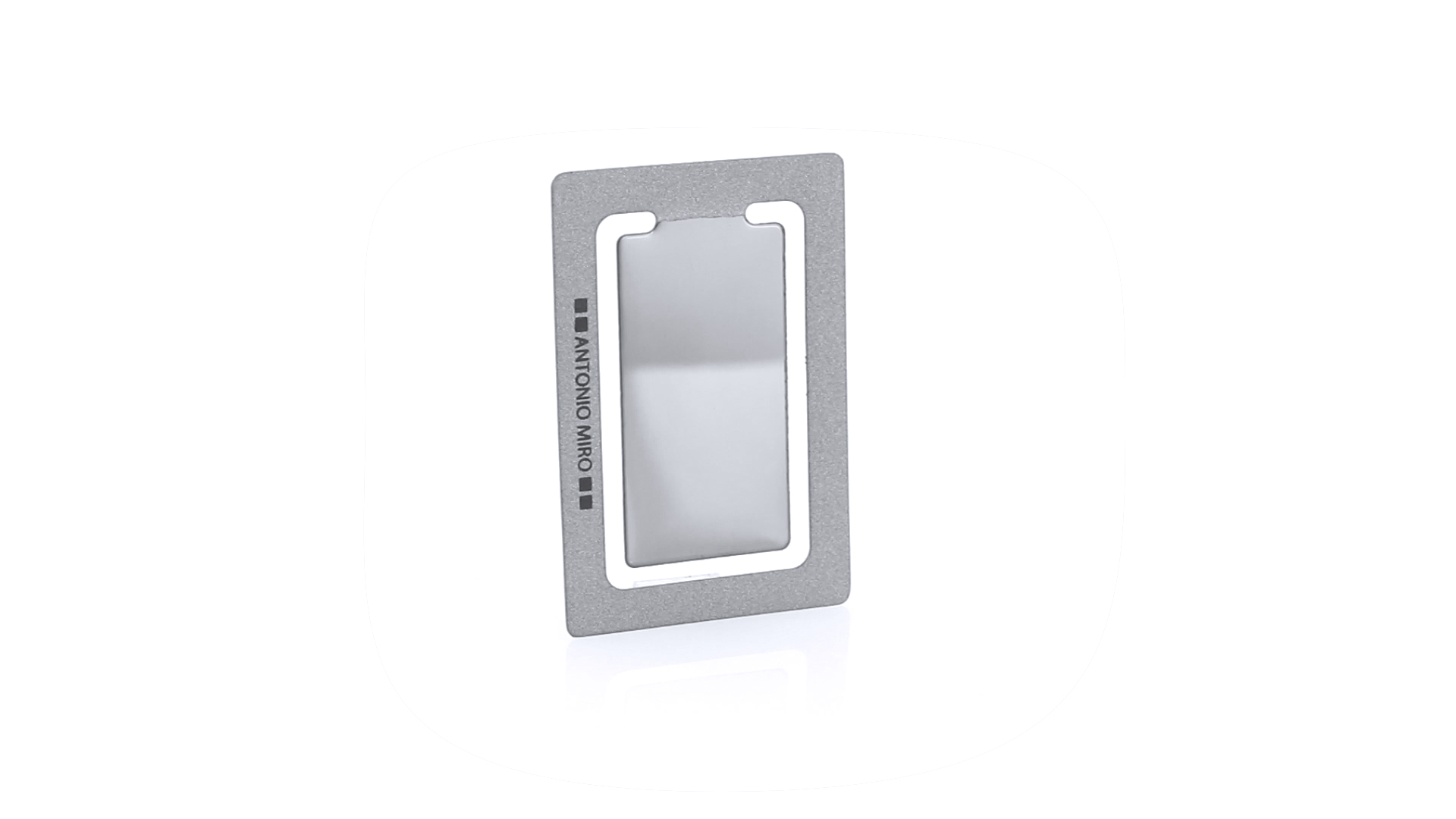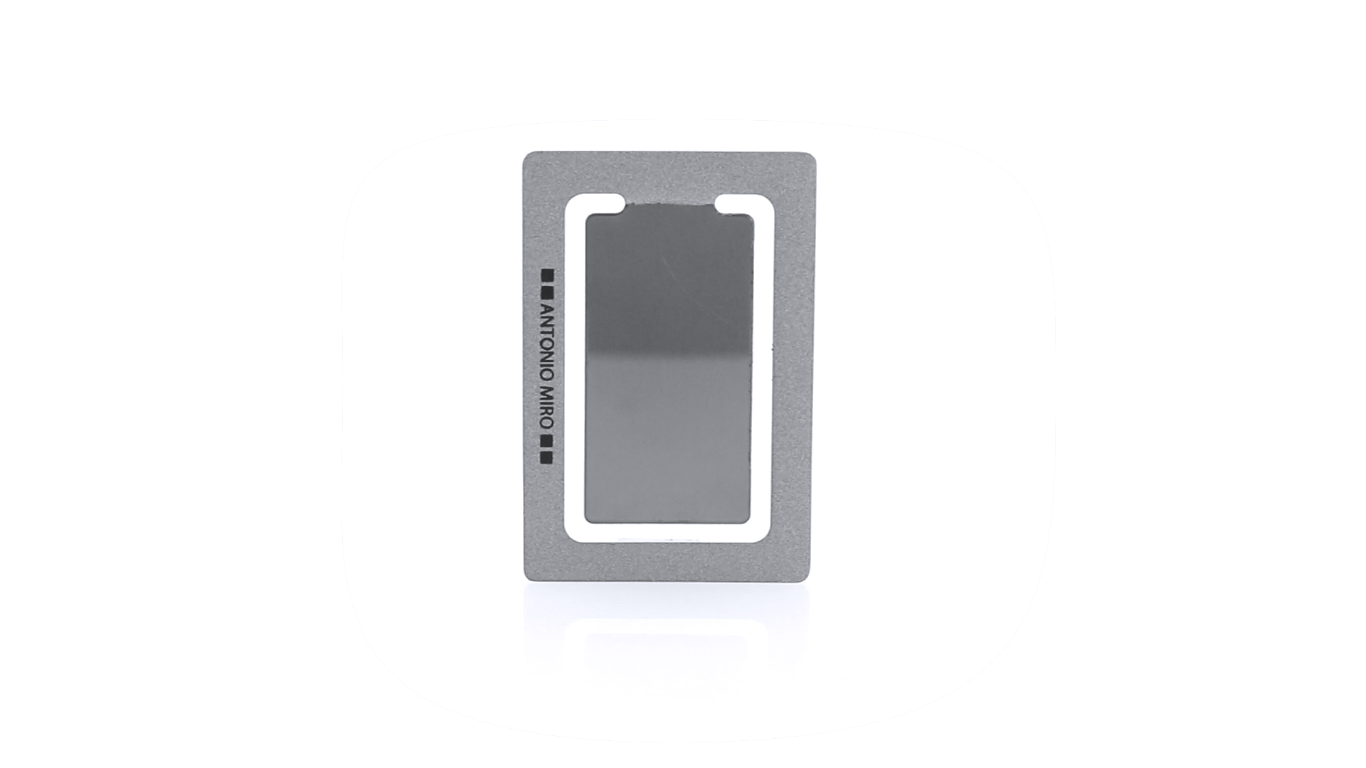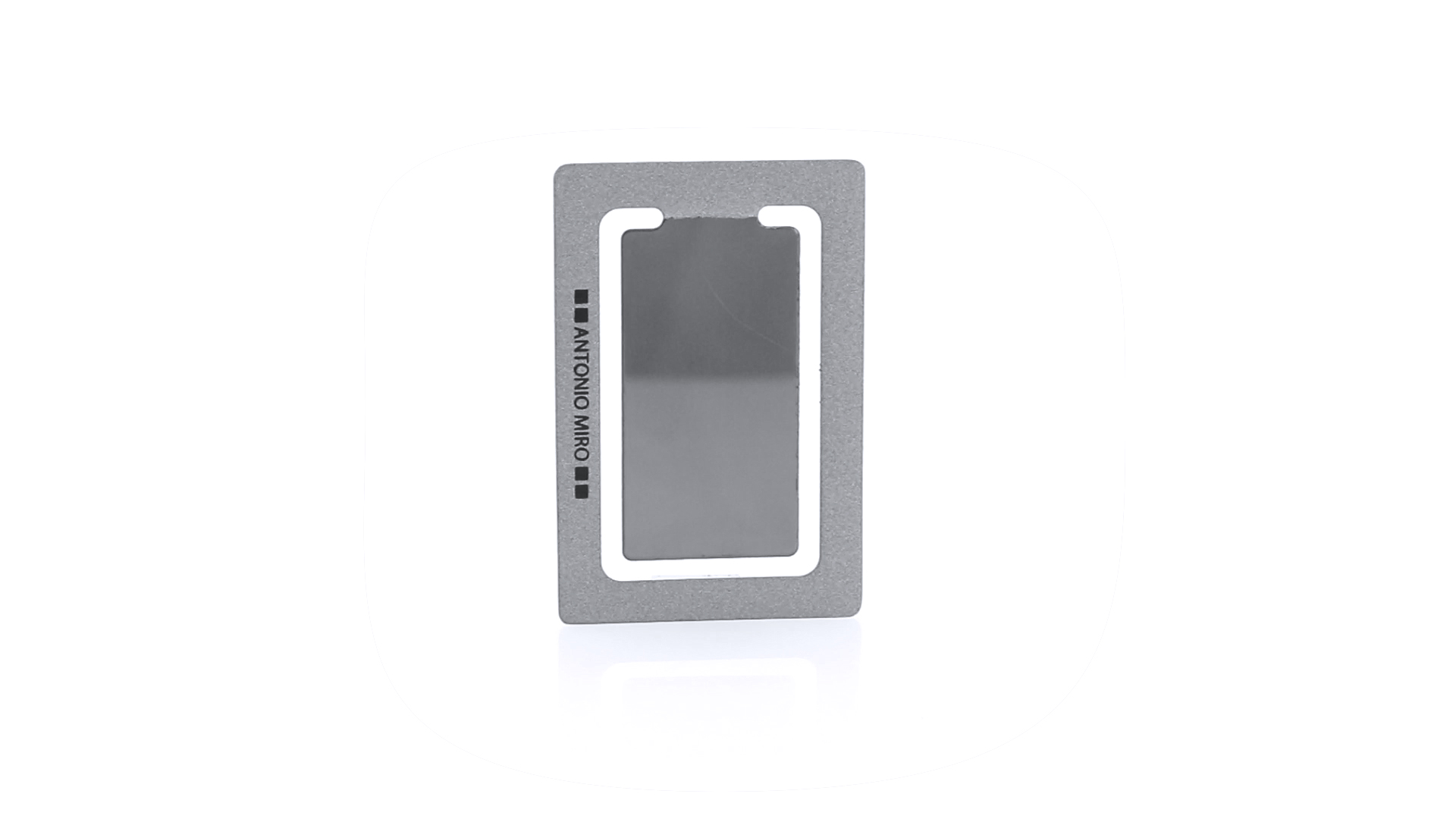 Eleganter Lesezeichenclip aus Metall von Antonio Miró. In Dunkelgrau mit dem Markenlogo. Präsentiert in einer individuellen Schachtel.