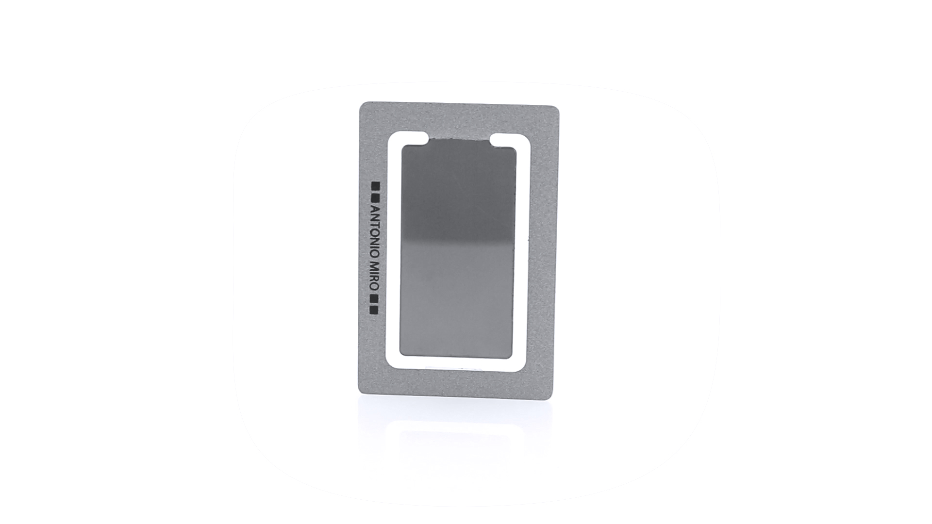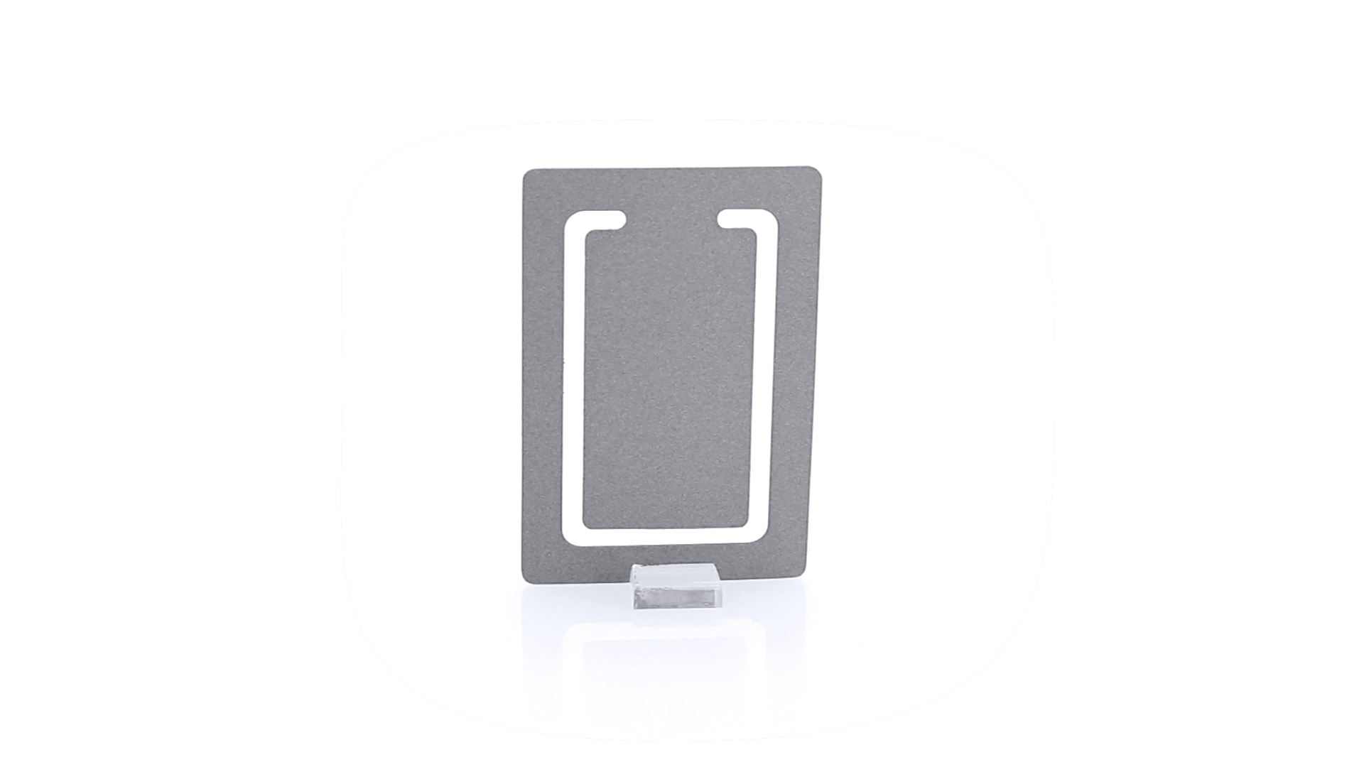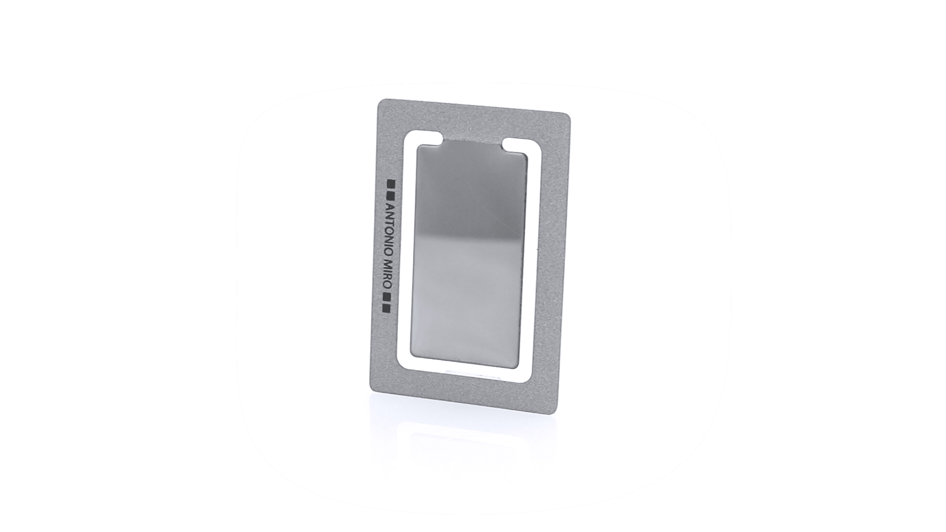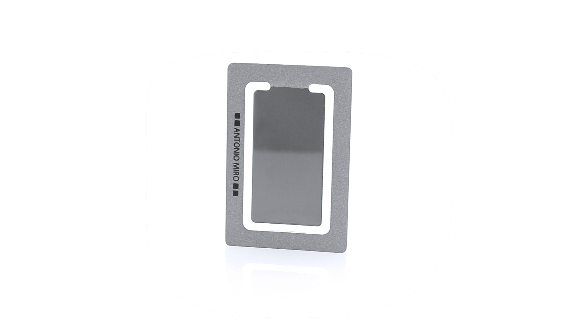Eleganter Lesezeichenclip aus Metall von Antonio Miró. In Dunkelgrau mit dem Markenlogo. Präsentiert in einer individuellen Schachtel.