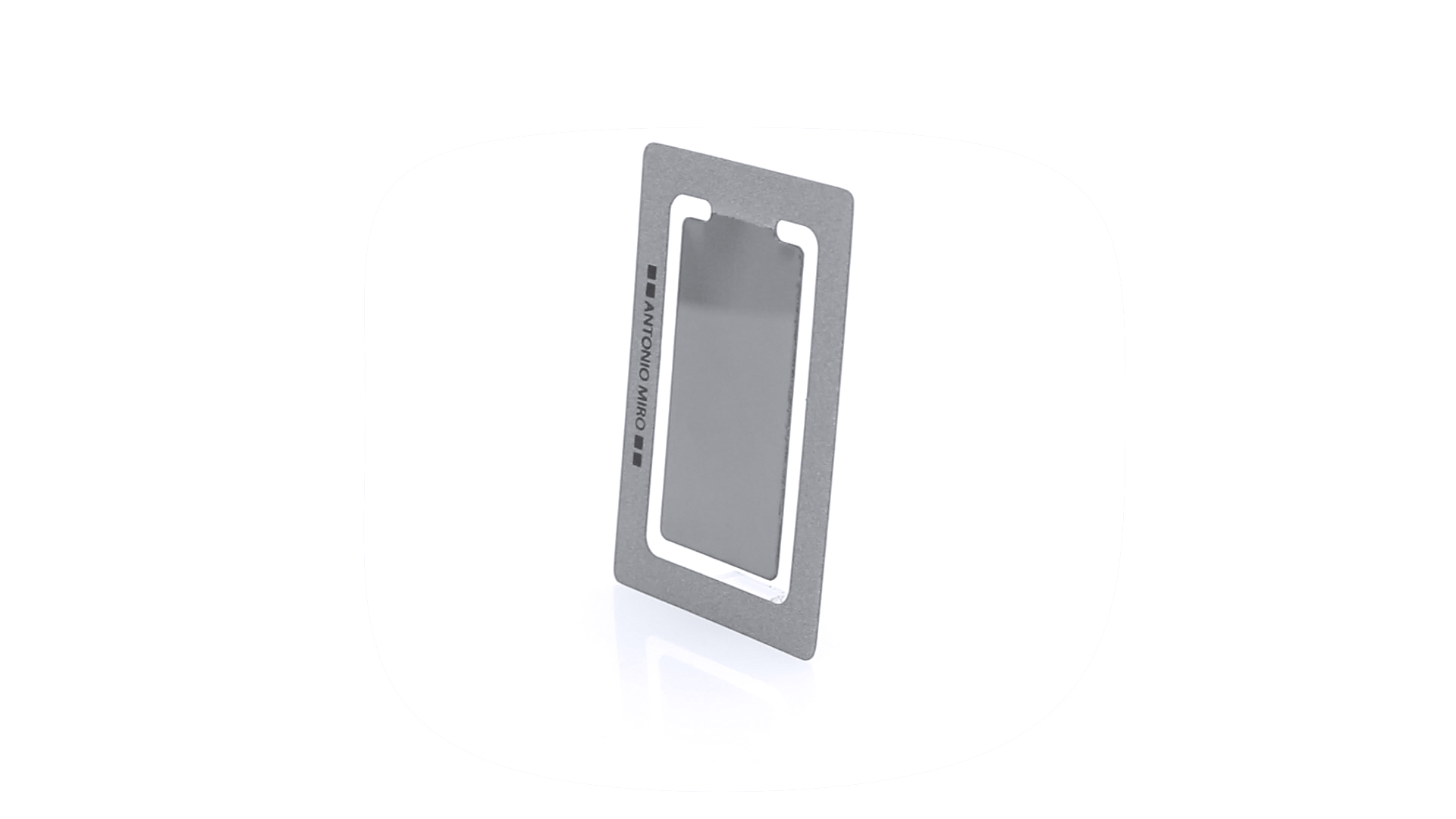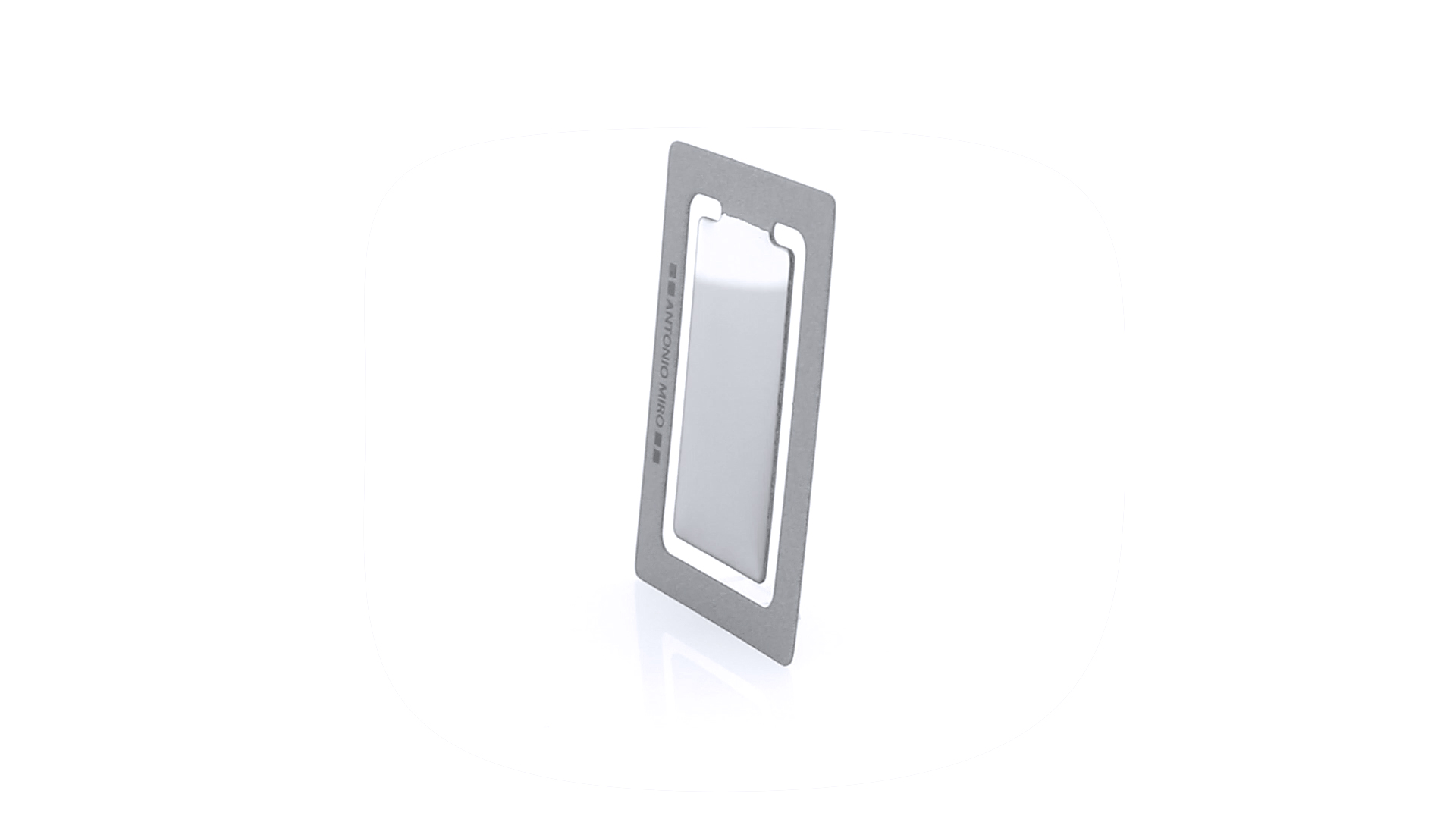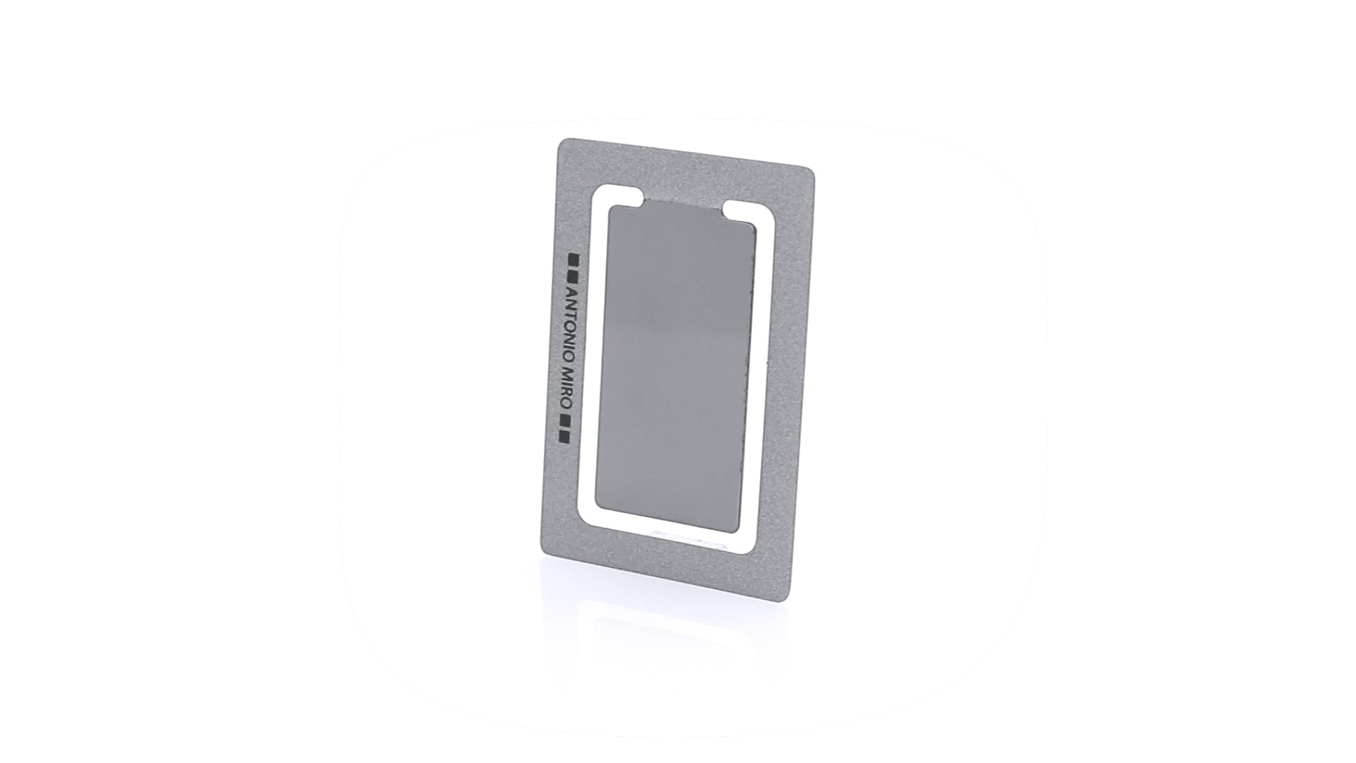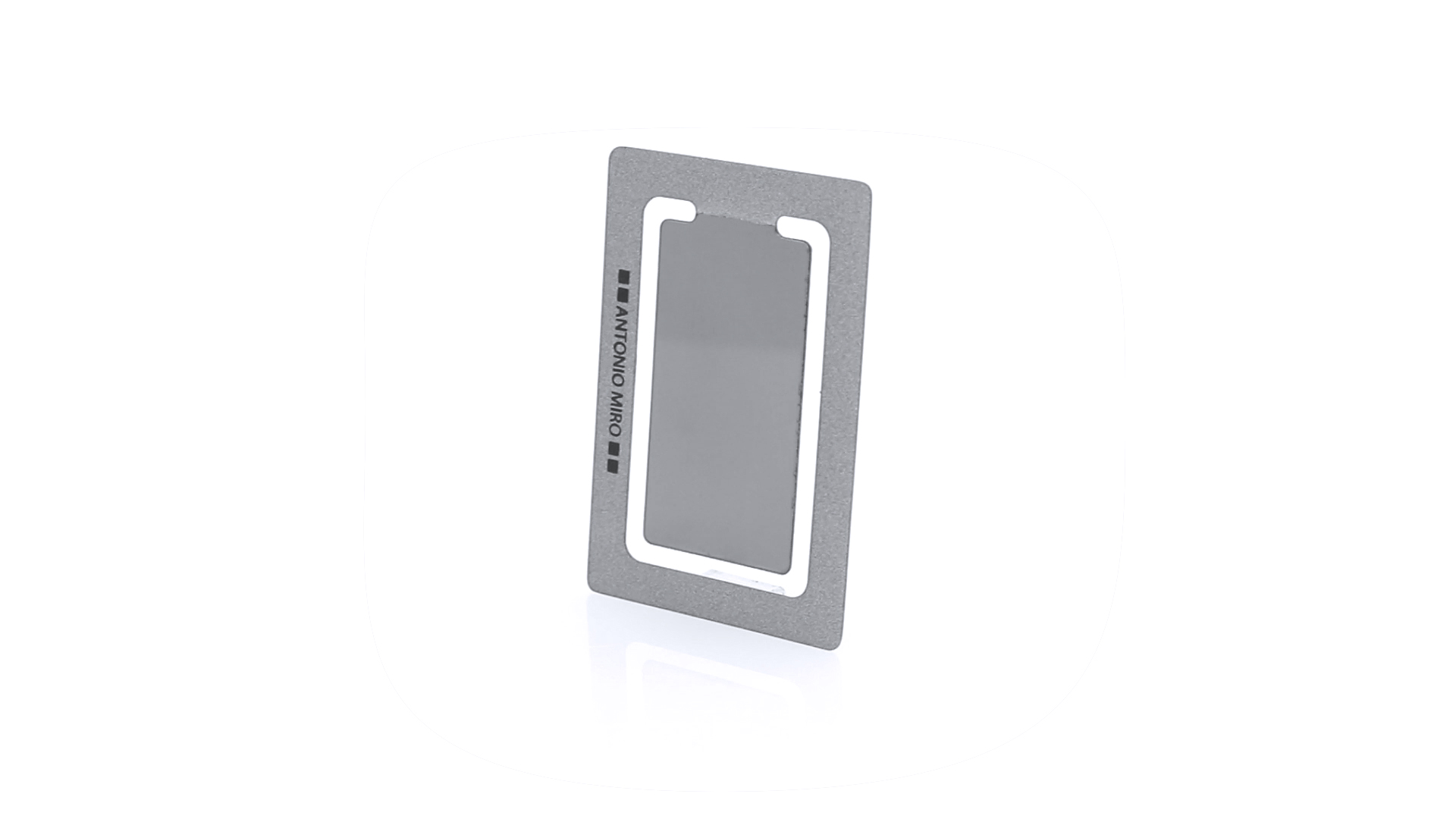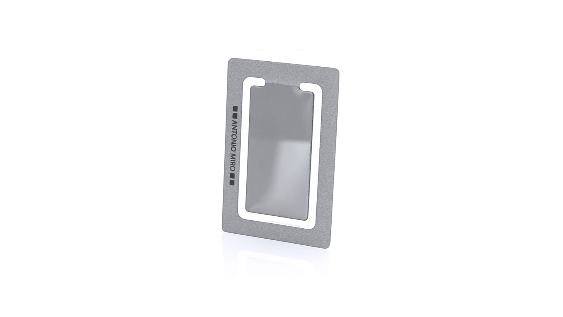 Eleganter Lesezeichenclip aus Metall von Antonio Miró. In Dunkelgrau mit dem Markenlogo. Präsentiert in einer individuellen Schachtel.