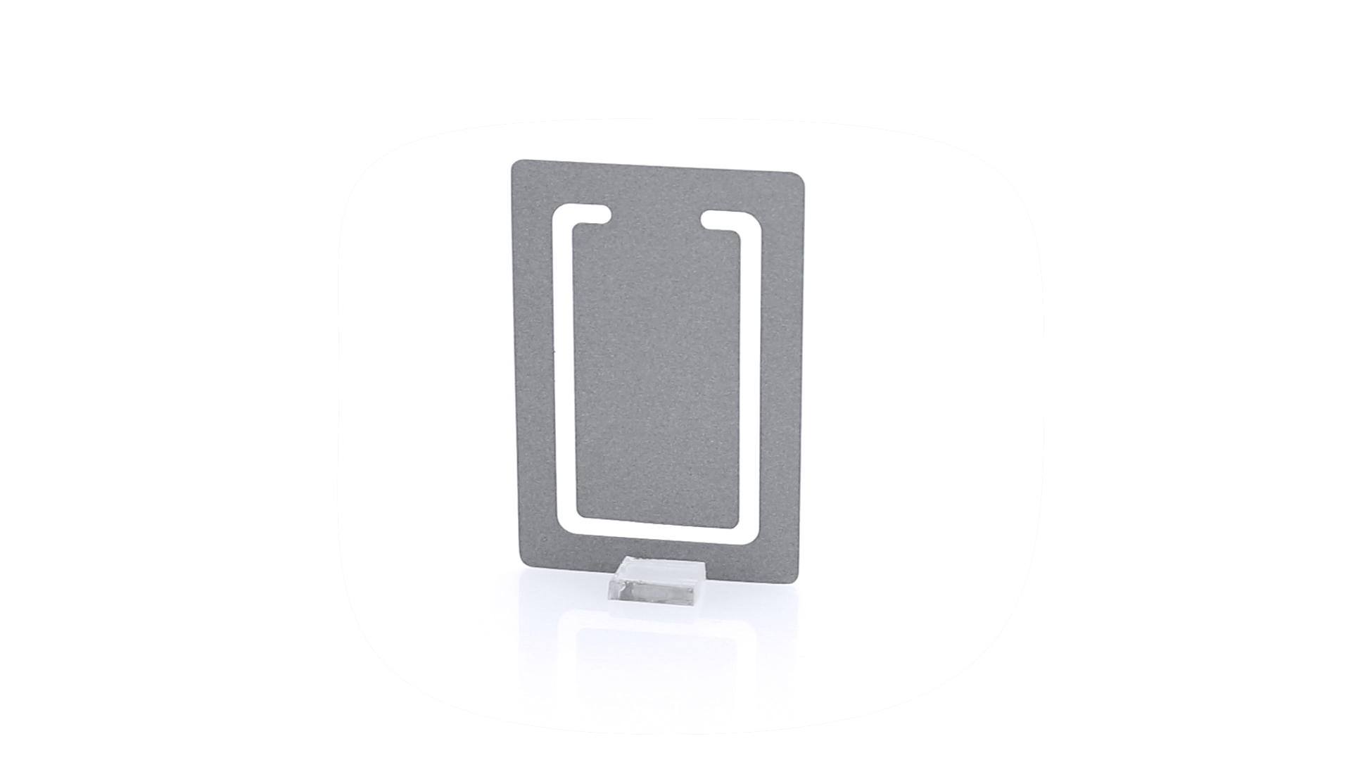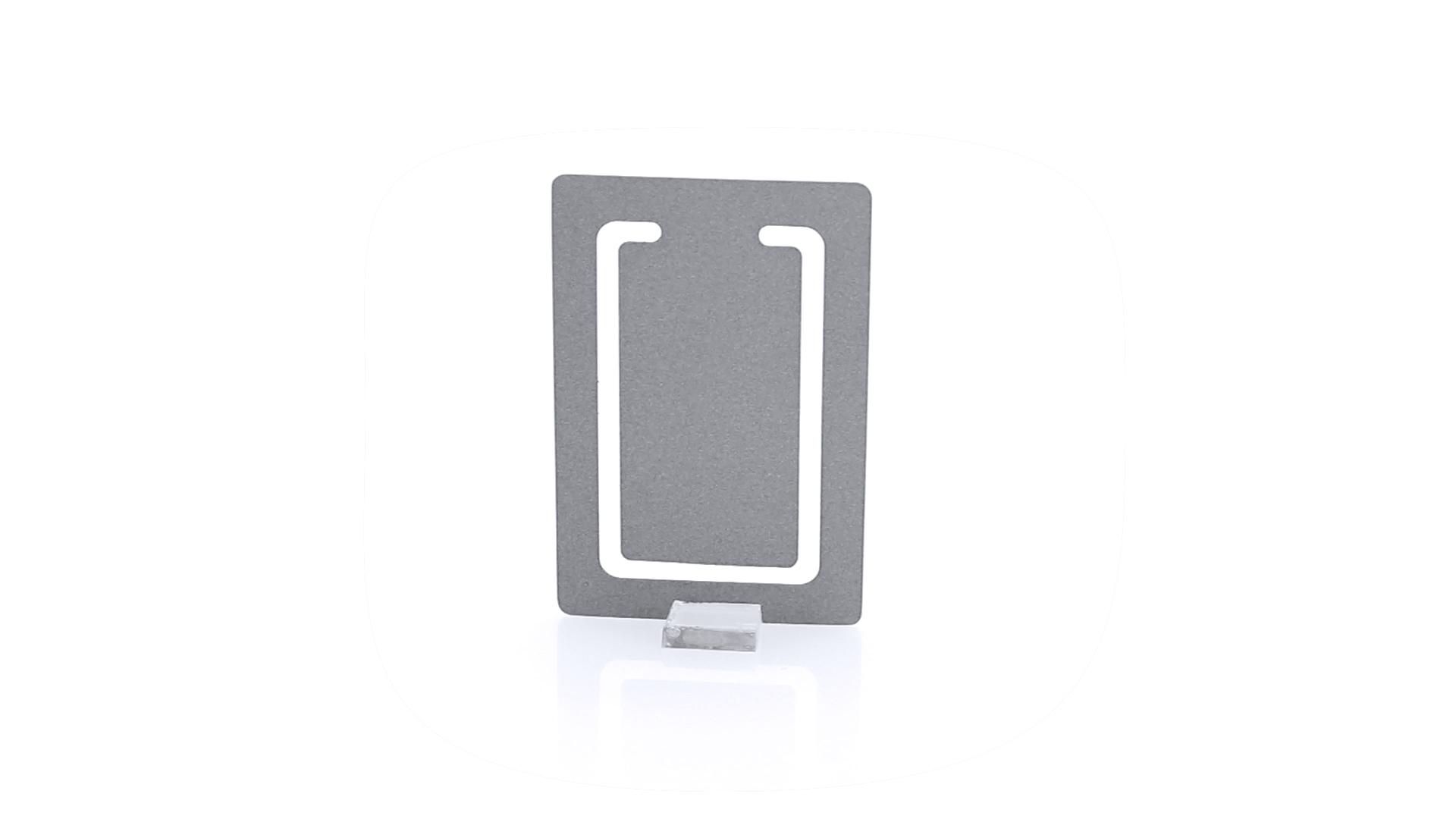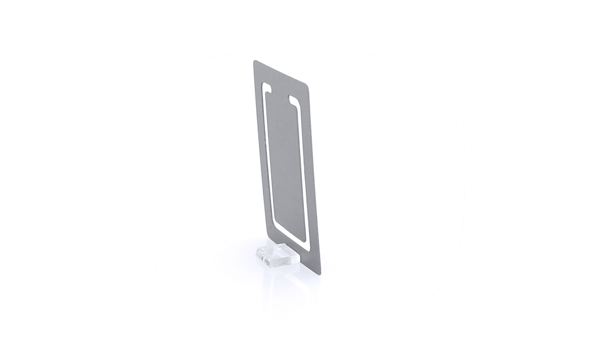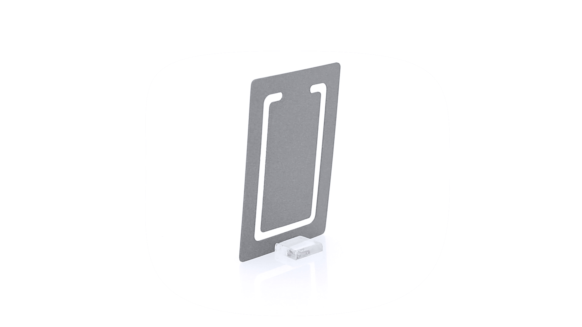 Eleganter Lesezeichenclip aus Metall von Antonio Miró. In Dunkelgrau mit dem Markenlogo. Präsentiert in einer individuellen Schachtel.