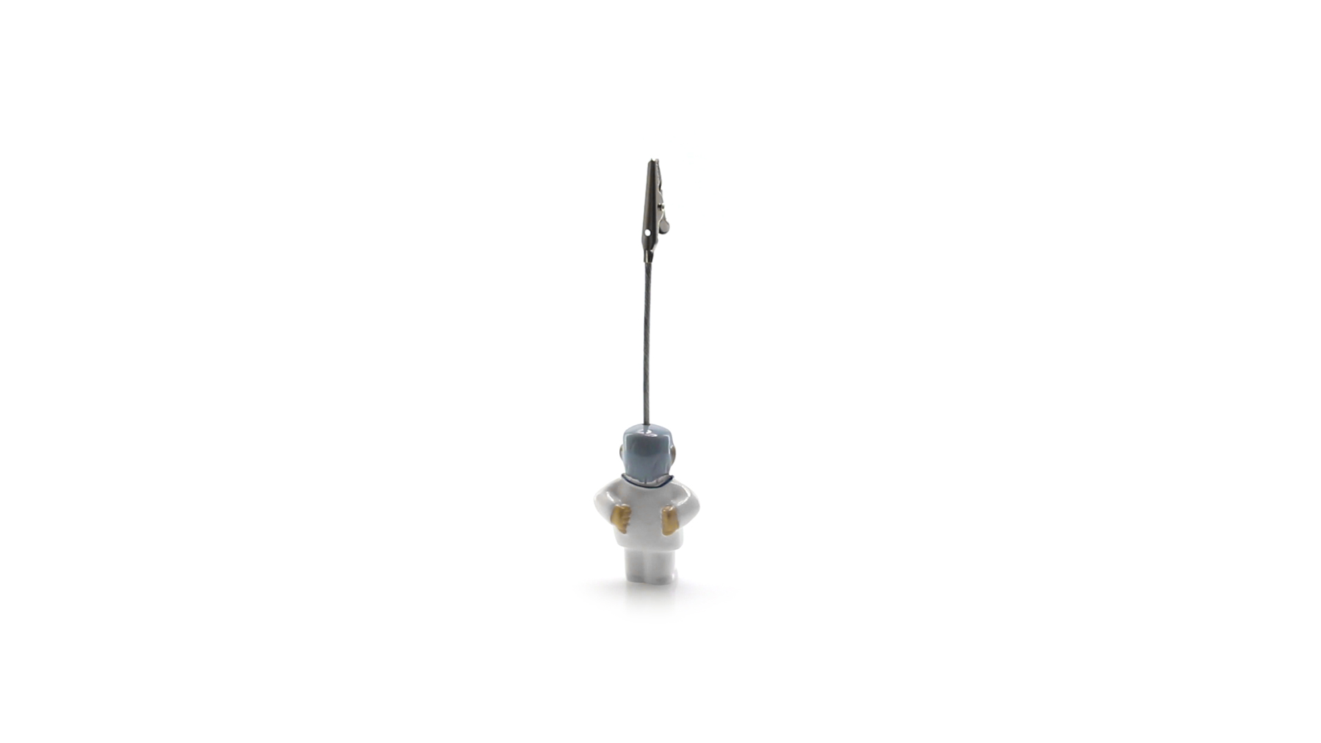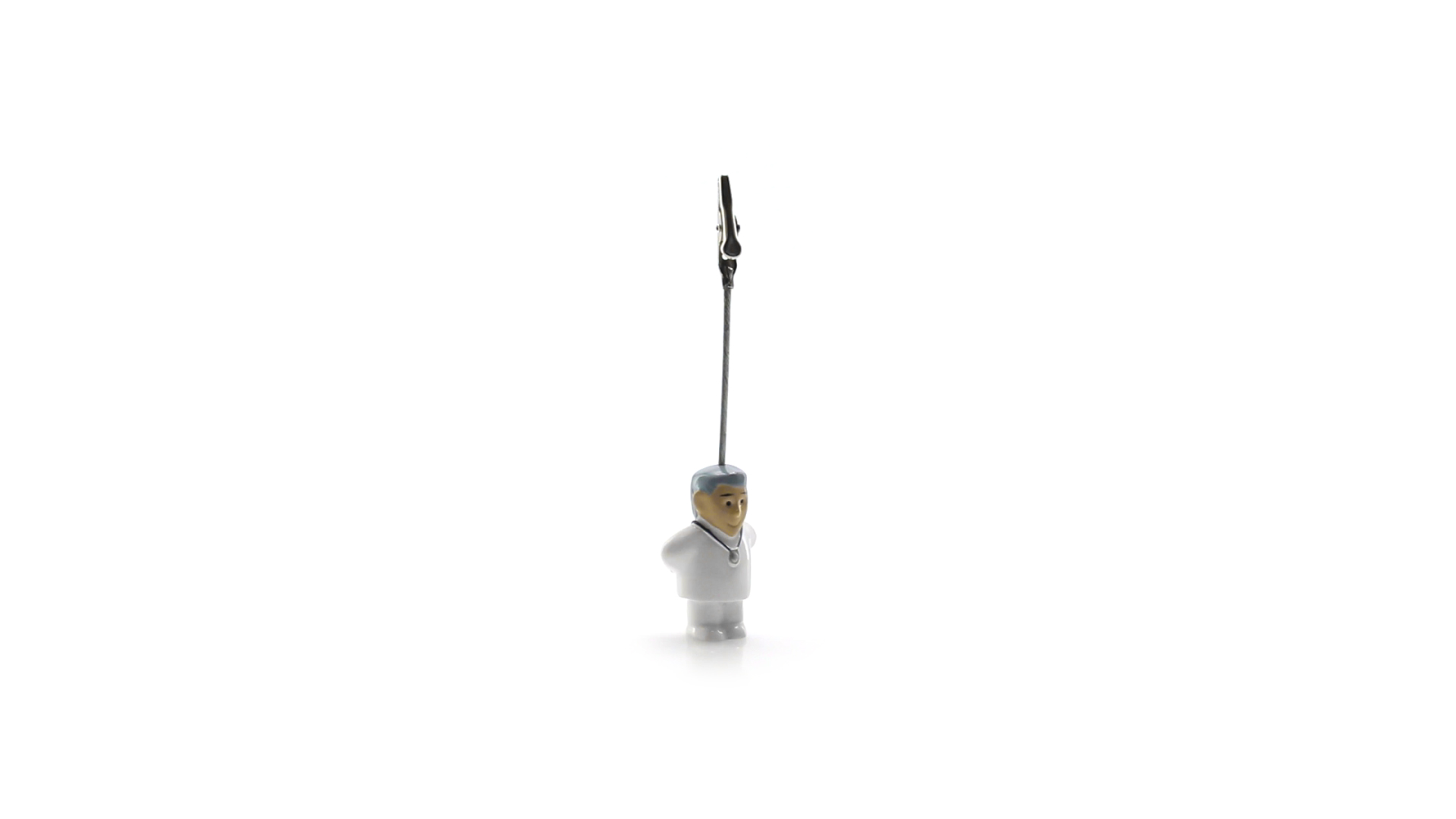 Notizhalter mit originellem Arzt-Design und Metallclip.