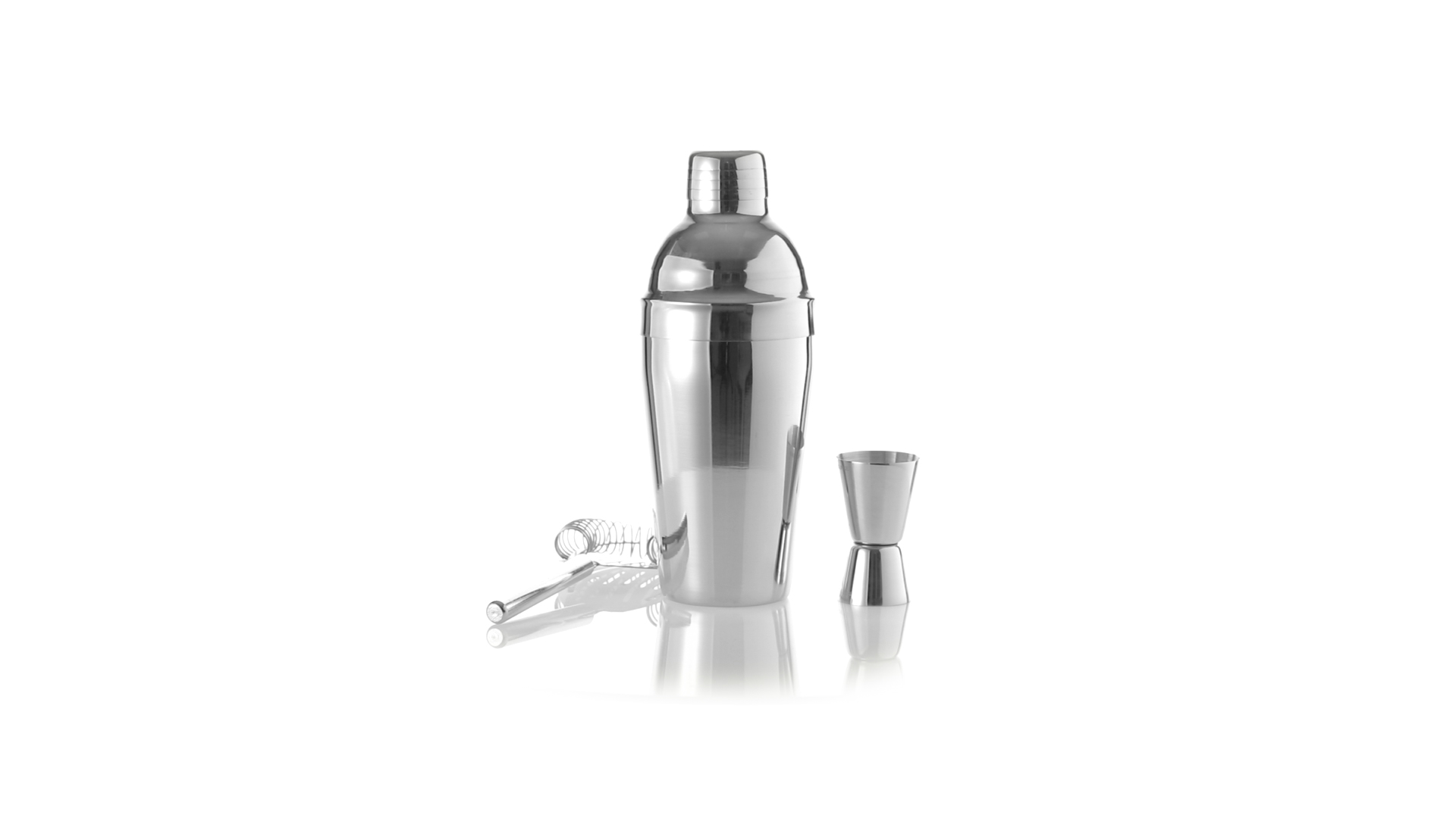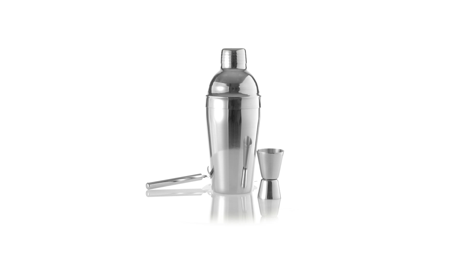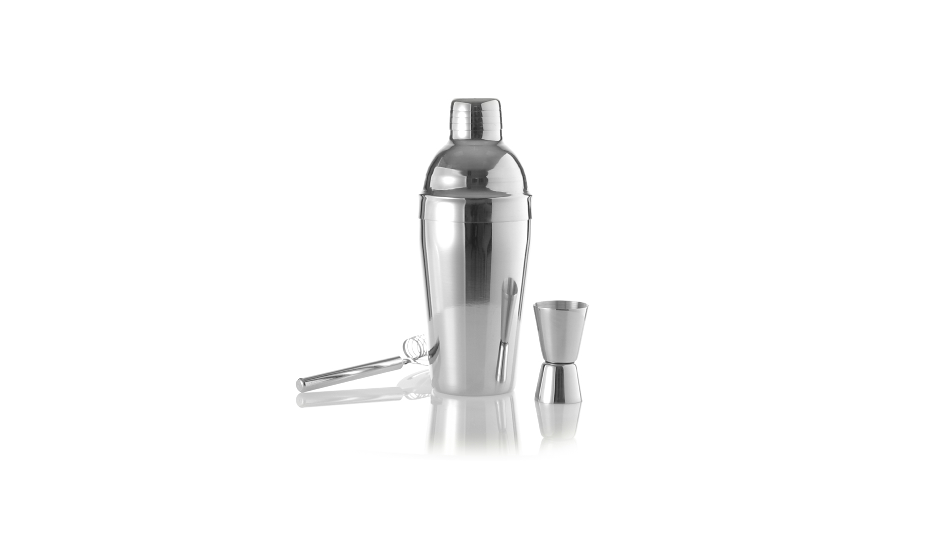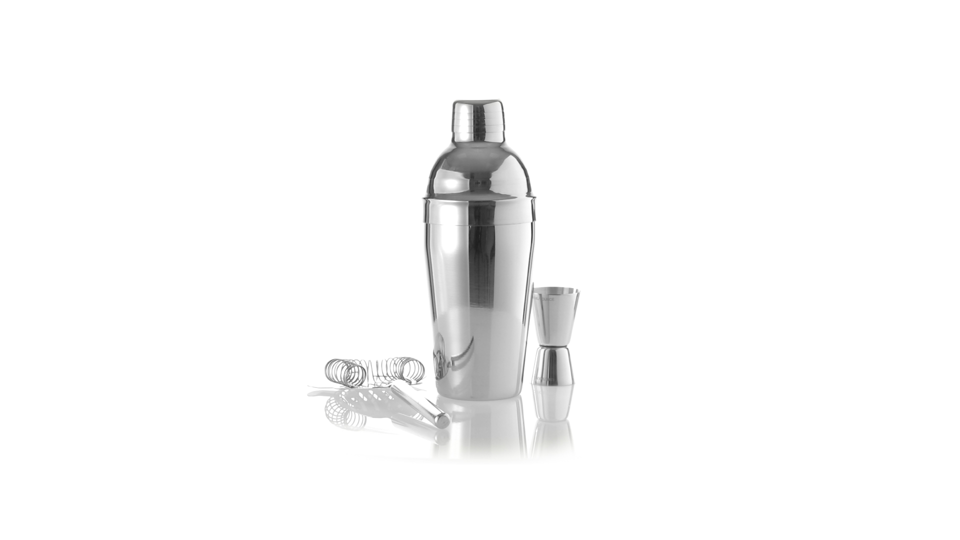 Cocktail-Set mit 3 Zubehörteilen aus Edelstahl mit Chrom-Finish. Lieferumfang:Cocktailshaker mit 550ml Fassungsvermögen, mit Sicherheitsverschluss und Spenderkappe auf der Oberseite.Sieb mit Griff.Einzel-/Doppelmeter.