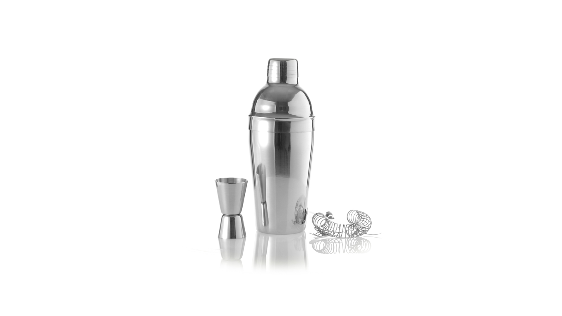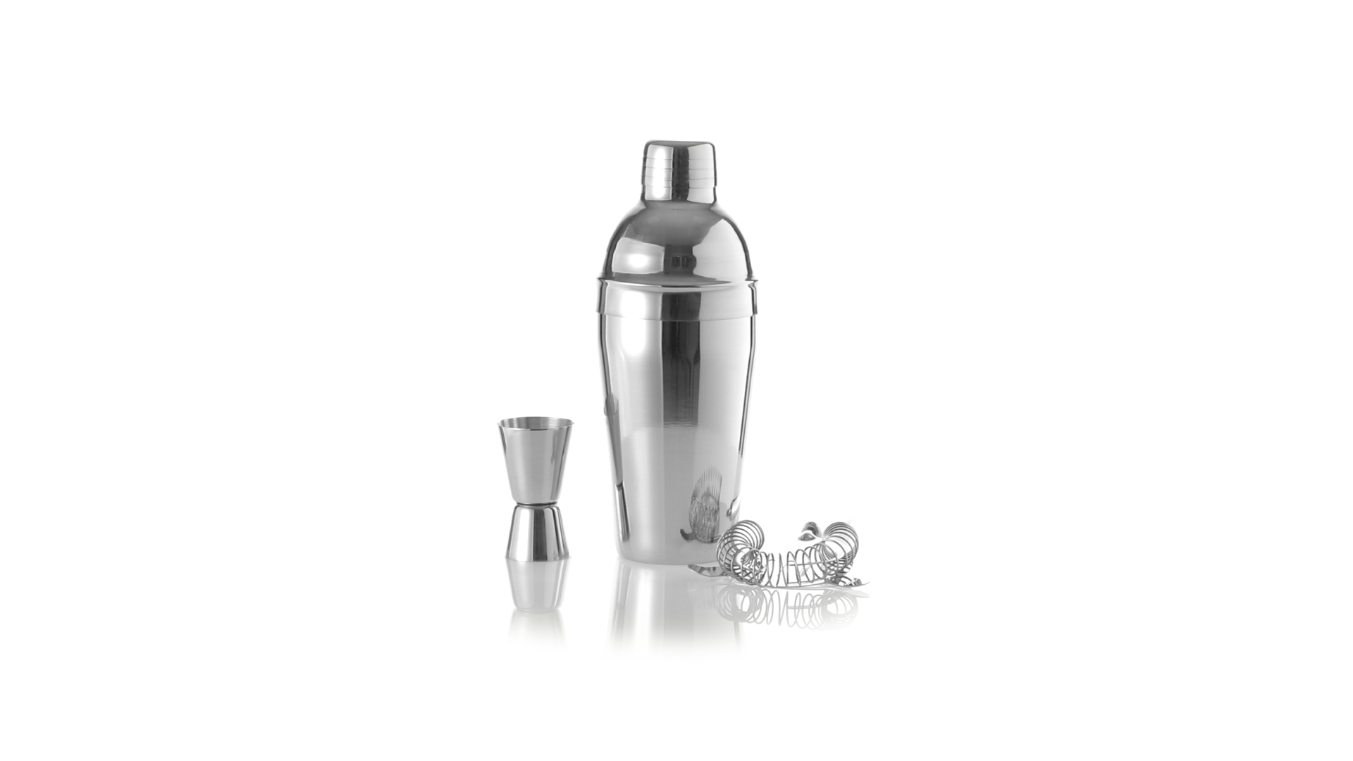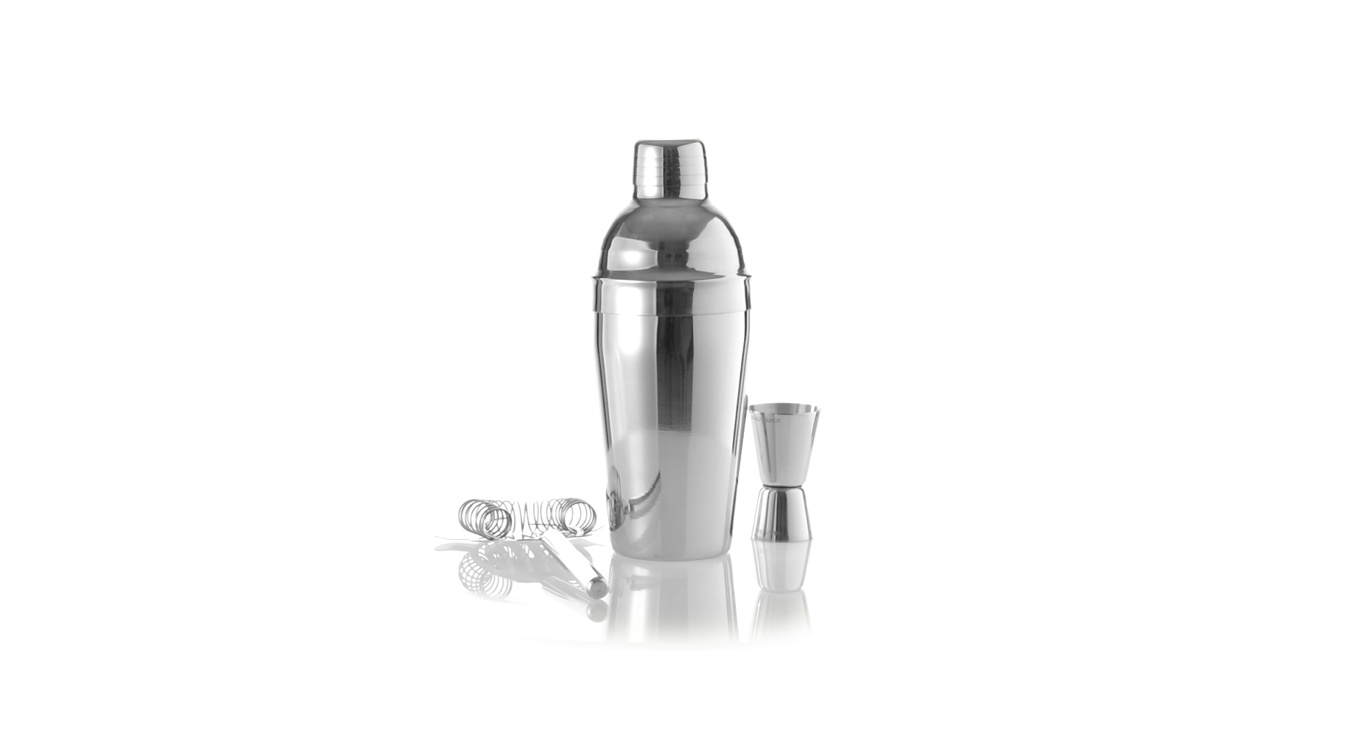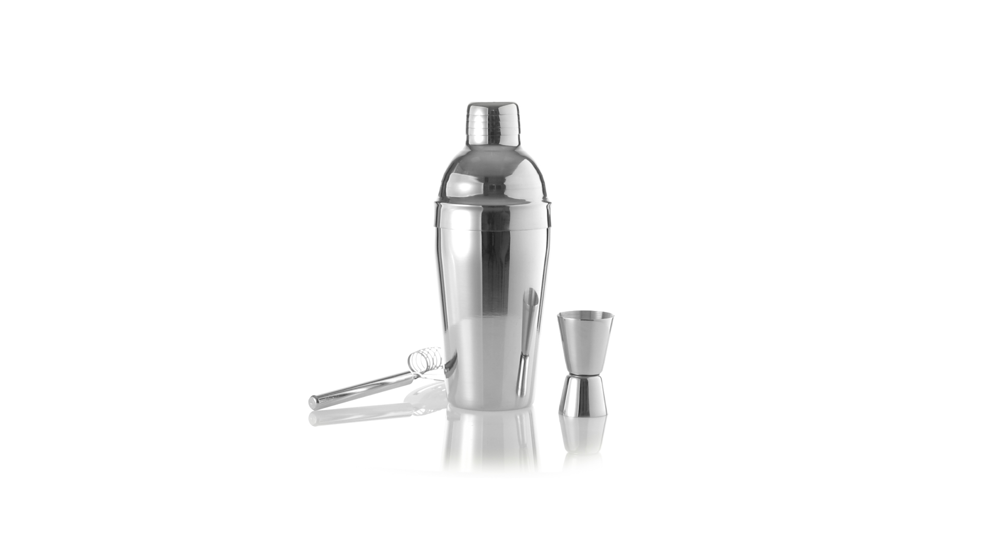 Cocktail-Set mit 3 Zubehörteilen aus Edelstahl mit Chrom-Finish. Lieferumfang:Cocktailshaker mit 550ml Fassungsvermögen, mit Sicherheitsverschluss und Spenderkappe auf der Oberseite.Sieb mit Griff.Einzel-/Doppelmeter.
