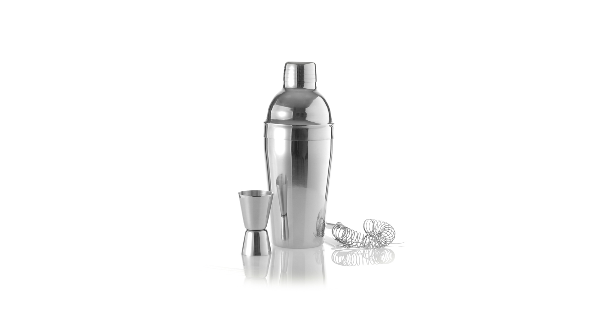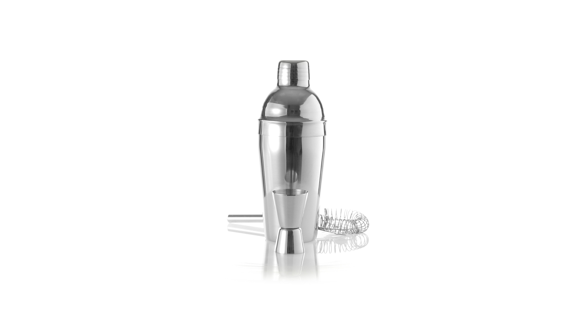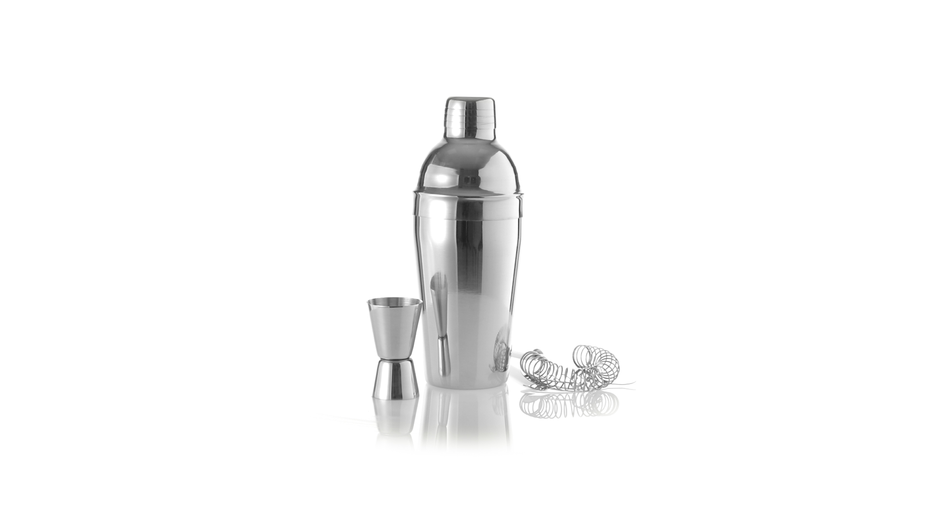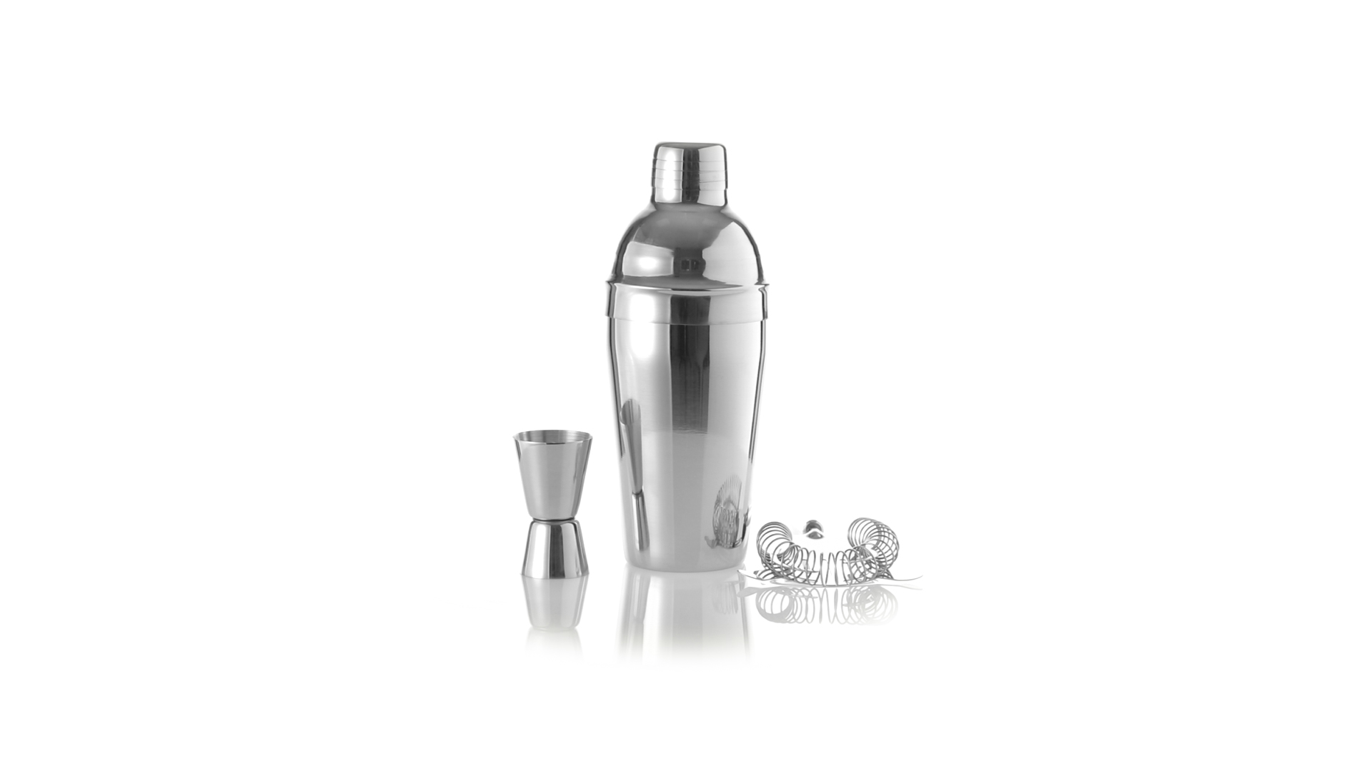 Cocktail-Set mit 3 Zubehörteilen aus Edelstahl mit Chrom-Finish. Lieferumfang:Cocktailshaker mit 550ml Fassungsvermögen, mit Sicherheitsverschluss und Spenderkappe auf der Oberseite.Sieb mit Griff.Einzel-/Doppelmeter.
