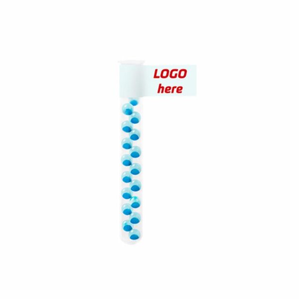 Glasröhrchen gefüllt mit 18 flüssigen Minzperlen, verschlossen mit einem Plastikstopfen. Dekoriert mit einem Aufkleber, der mit IHREM LOGO oder Ihrer Nachricht individualisiert ist. CoolCaps: die EINZIGE Doppelkapsel der Welt. Eine Kugel enthält zwei Flüssigkeitskapseln. Das Äußere schmilzt auf der Zunge, das Innere im Magen: Das schafft eine starke und langanhaltende, doppelte Wirkung für einzigartig frischen Atem.