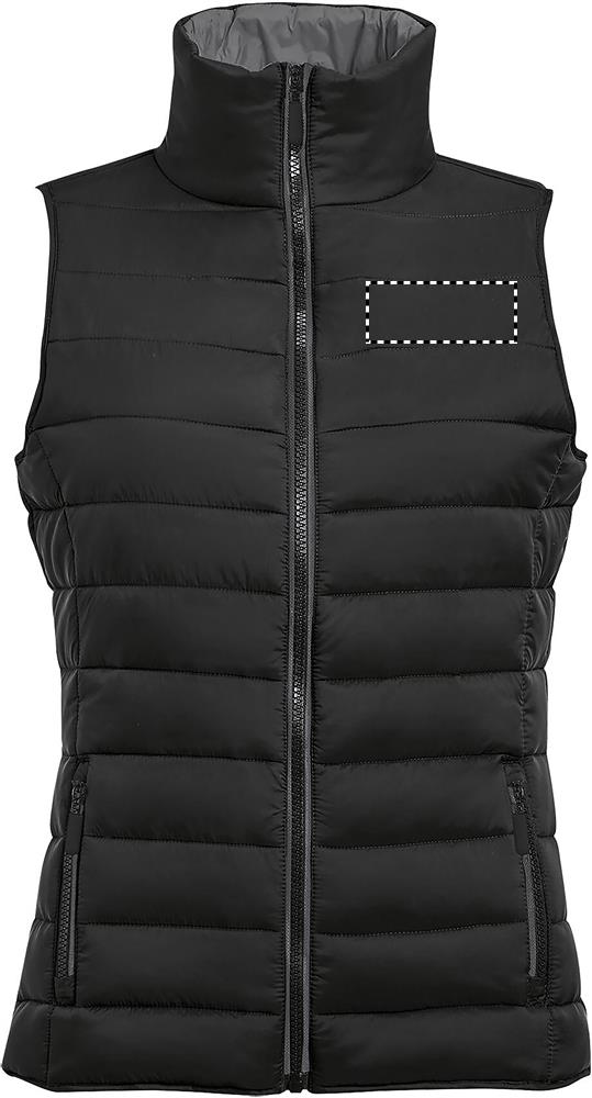 SOL'S WAVE Damen Bodywarmer/Weste aus leichtem Material. Die ärmellose Version der beliebten RIDE Jacke, bietet mehr Bewegungsfreiheit. Sie kann auch zusätzlich unter einer Jacke getragen werden. Wind- und wasserabweisendes Material. 2 Taschen mit stylischen Reissverschlüssen und farblich passendem Futter, hoher Kragen, stylische Passform, Ton-in-Ton-Verstärkung am Saum. Material: 100% Nylon, Futt