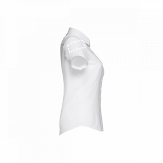 Damen kurzarm Oxford Bluse aus 70% Baumwolle und 30% Polyester (130g/m²), tailliert mit einer Knopfleiste mit 7 Knöpfen und je 2 Vorder- und Rückenfalten. Doppelnaht an den Ärmeln. Grössen: S, M, L, XL, XXL