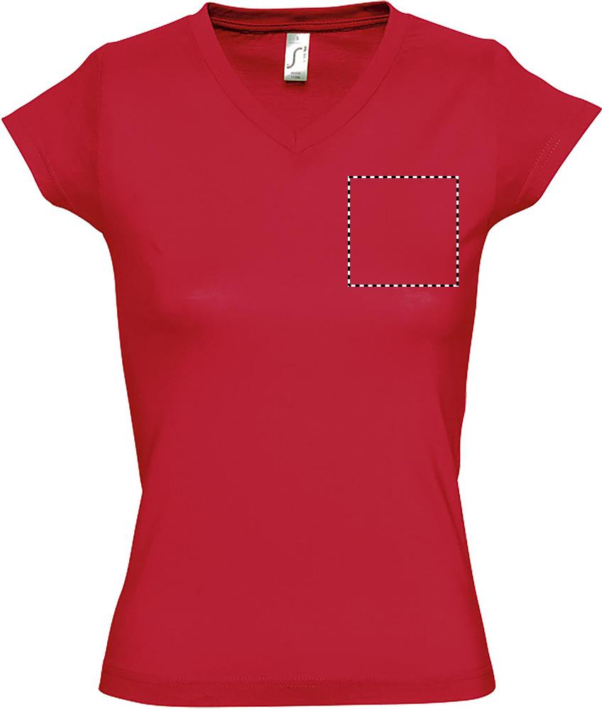 SOL'S MOON Damen-T-Shirt mit tiefem V-Ausschnitt und taillierter Schnittführung. Rippkragen, Nackenband, Kurzarm, Seitennähte. Material: 150g/m² 100% halbgekämmte, ringgesponnene Baumwolle.