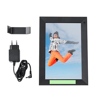 Digitaler Fotorahmen mit 10,1 Zoll. Mit hochauflösendem 1280x800 Pixel IPS-Touchscreen, WiFi-Konnektivität und ausgestattet mit intelligenten Funktionen wie Wetteranzeige, Alarm und Uhr. Ausserdem verfügt er über ein Menü, mit dem Sie beim Betrachten von Videos, beim Durchsuchen von Fotos und beim Hören von Musik die Welt der Möglichkeiten erkunden können, wobei Sie die Wahl zwischen horizontaler und vertikaler Ansicht haben. Mit rückseitiger Halterung und Schlitzen für die Wandmontage. AC 220V-240V Stromversorgung, Ladegerät im Lieferumfang enthalten. Präsentiert in einer Design-Kraftstoffbox und mit einer Bedienungsanleitung in Englisch und Spanisch.