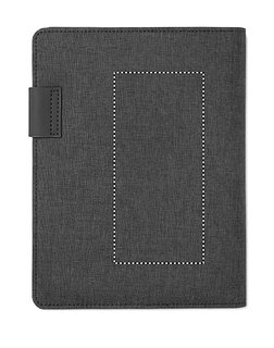 DIN A5 Portfolio mit Cover aus PU in Leinen-Optik. Magnetverschluss. Block mit 20 Blatt (40 Seiten) liniertem Papier. Inkl. 4000 mAh Powerbank und Mikro-USB-Kabel/Typ C. Smartphone- /Tablet Halterung. Kreditkarten Steckfächer. Stiftschlaufe.