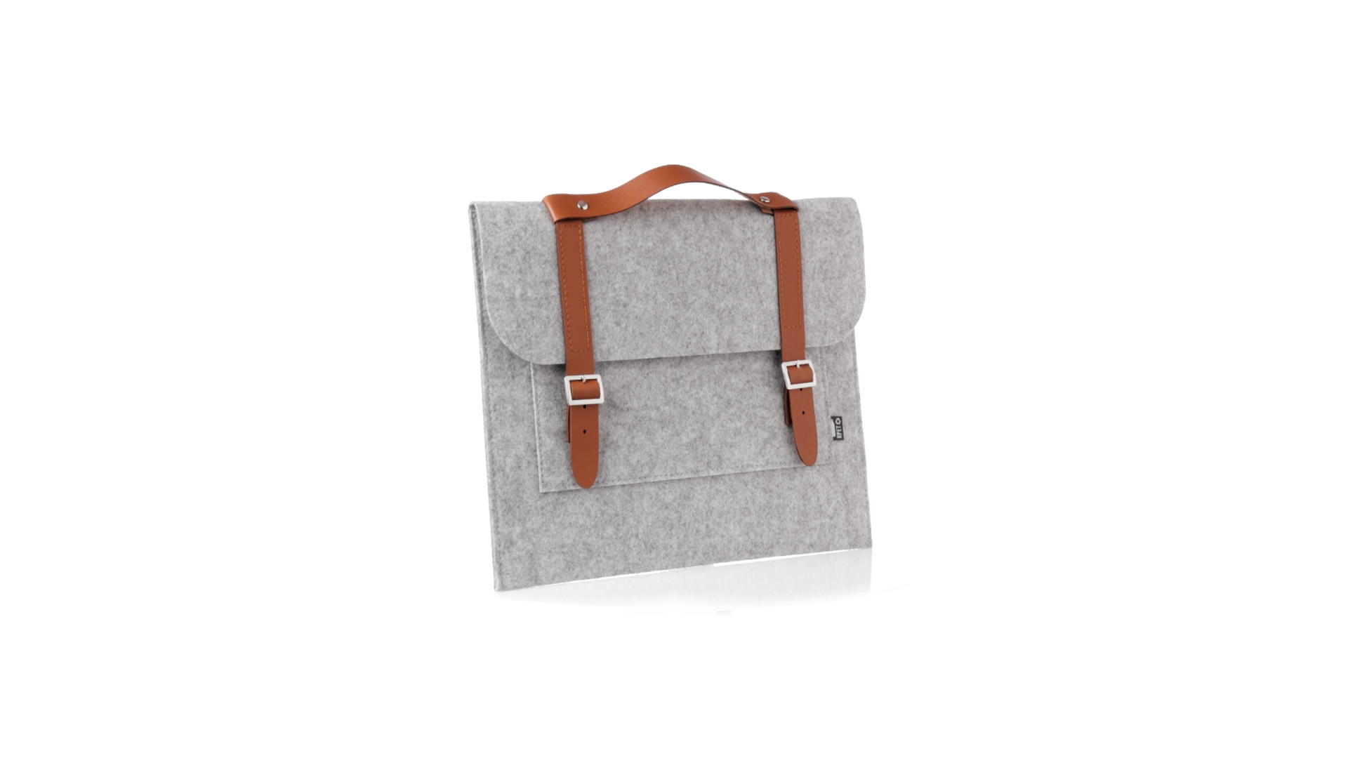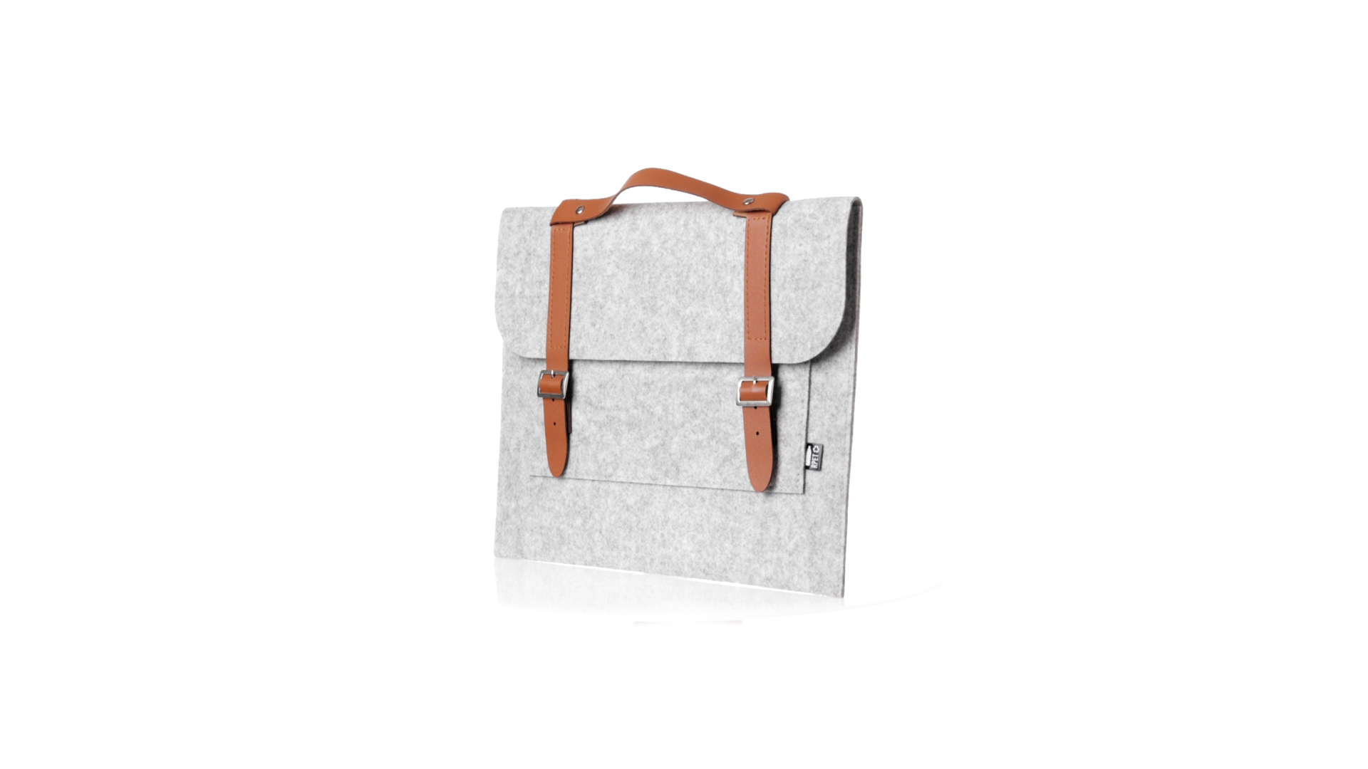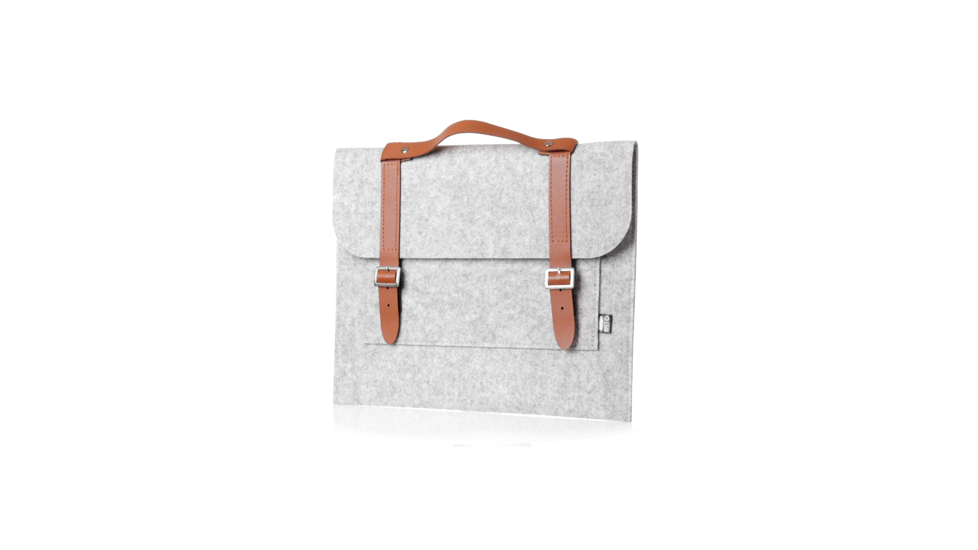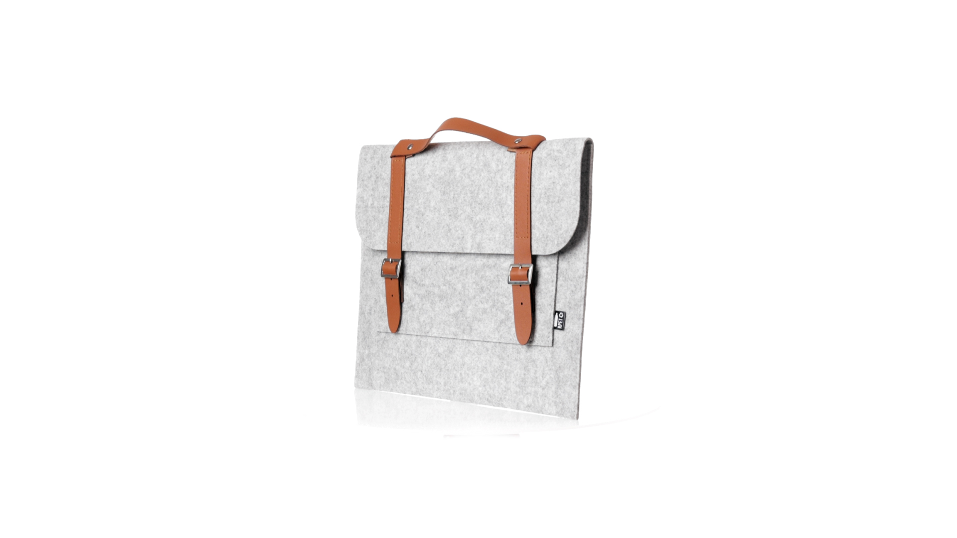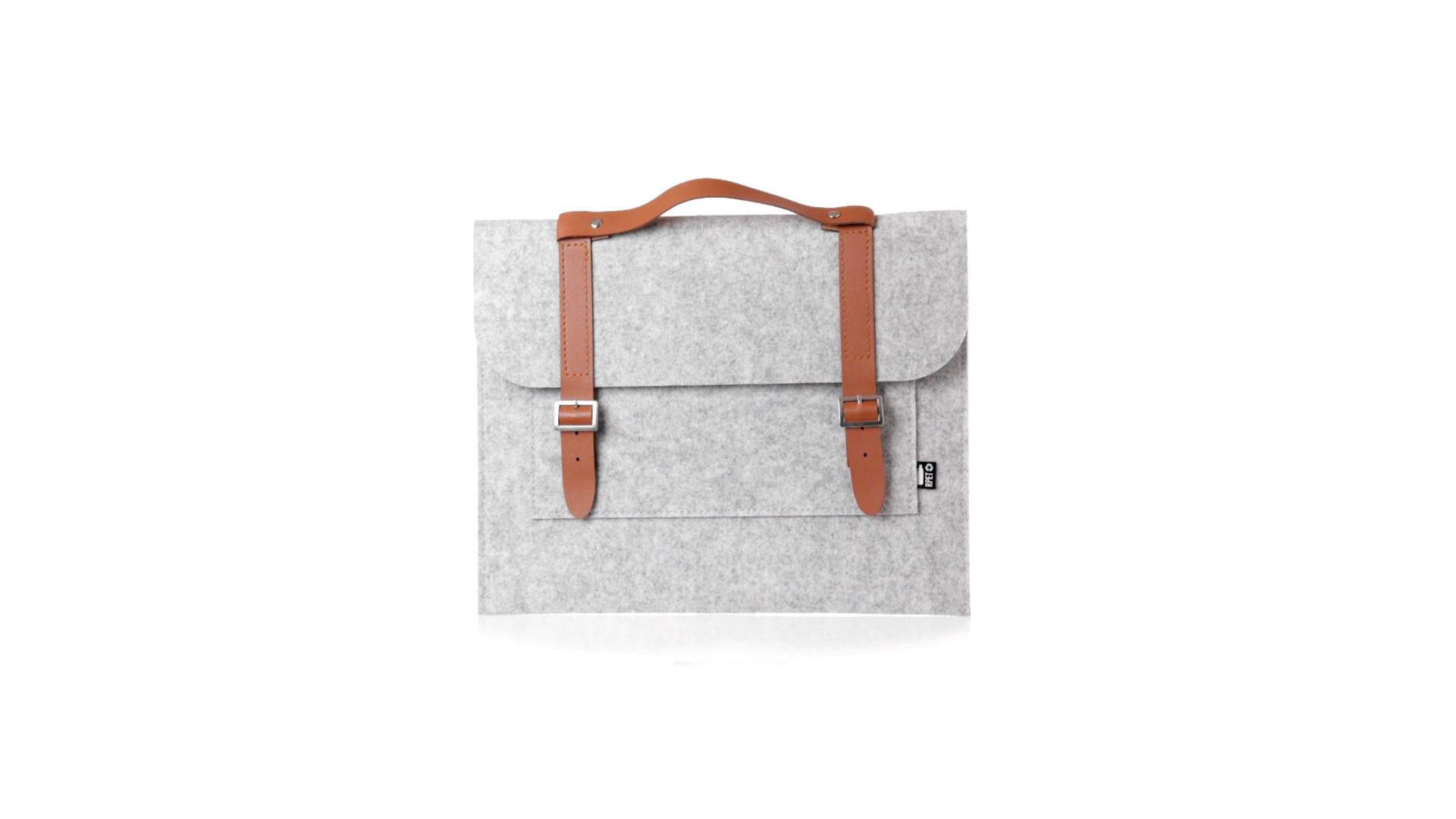 Originelle Dokumententasche der Linie "Natur" aus strapazierfähigem RPET-Filz. Hauptfach mit Klappe und Schnallenverschluss, kontrastierender Griff und Riemen aus elegantem braunem Kunstleder. Aussentasche mit RPET-Etikett.RPET-Filz ist das Ergebnis der Kombination des Recyclingprozesses von Kunststoffen mit der jahrtausendealten Technik der Filzherstellung. Das Ergebnis ist ein Öko-Trendmaterial, das nicht nur recycelt, sondern auch wiederverwertbar ist.