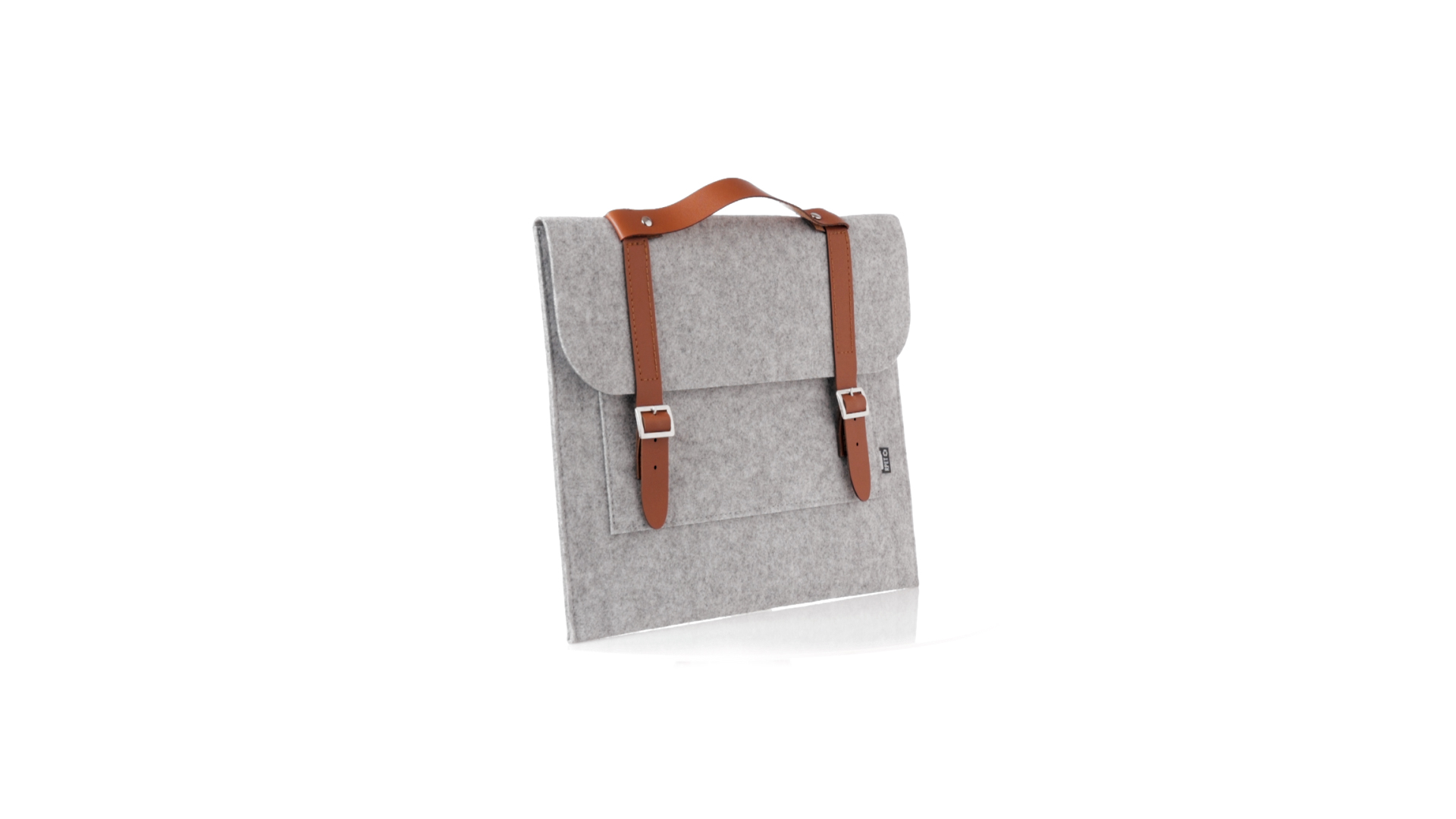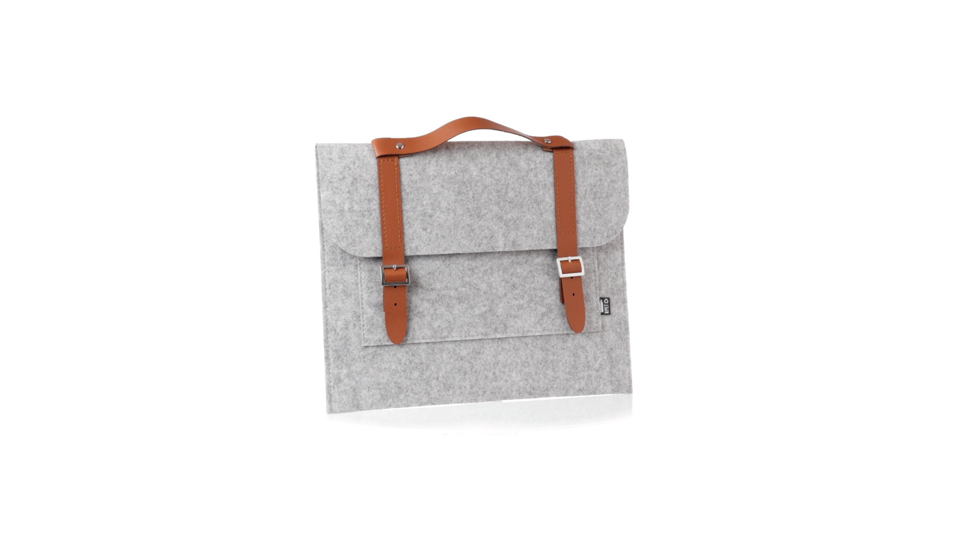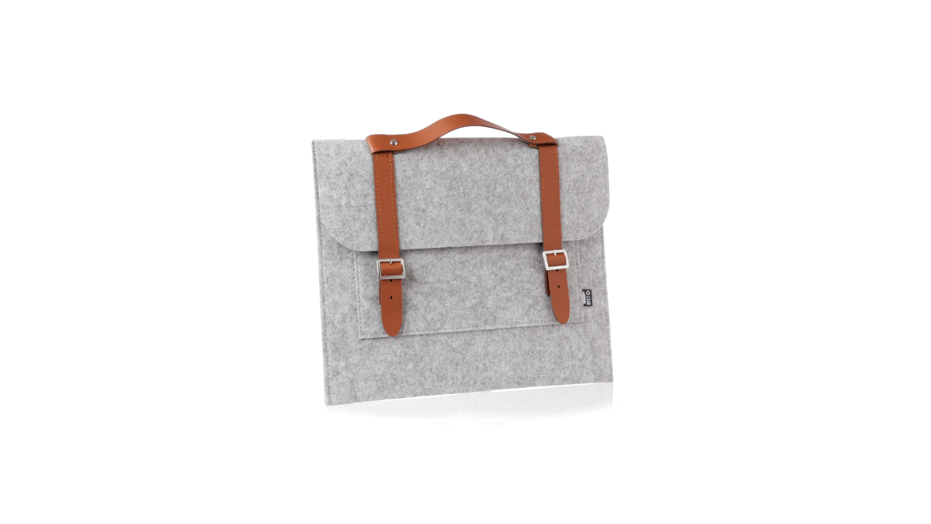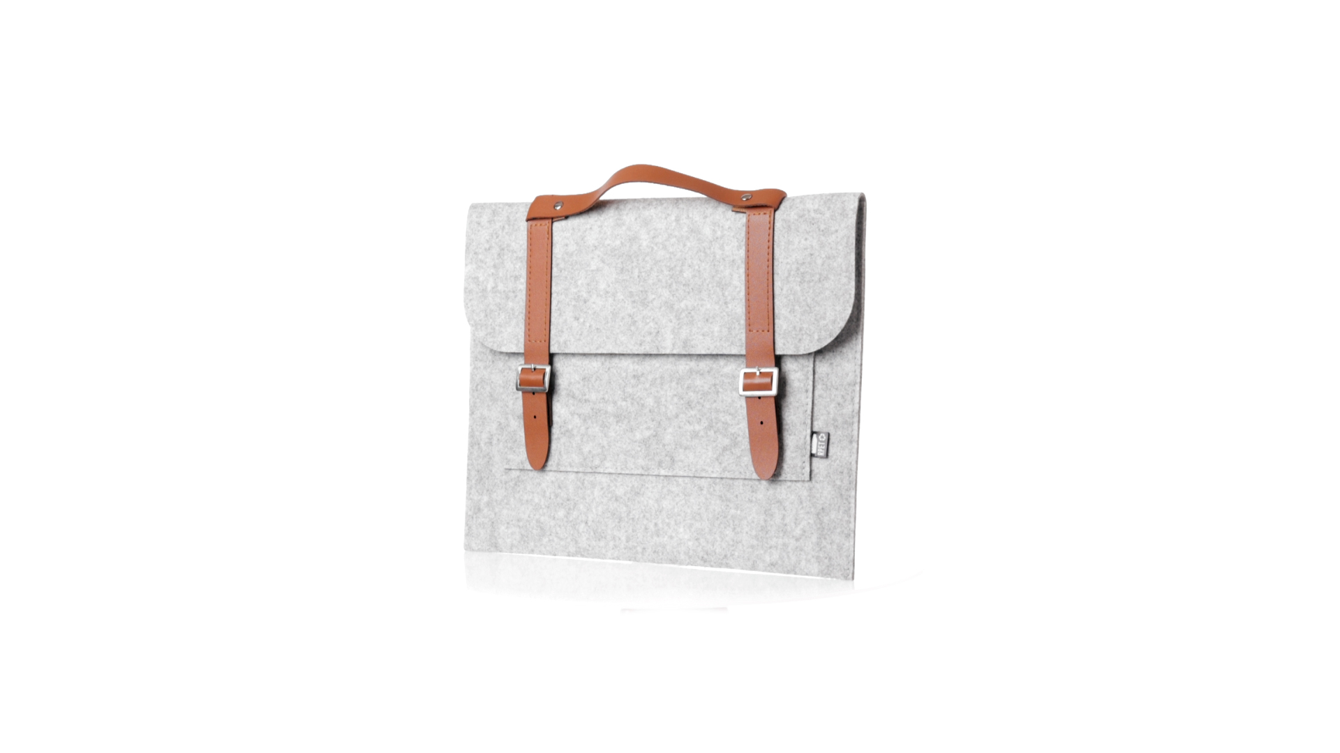 Originelle Dokumententasche der Linie "Natur" aus strapazierfähigem RPET-Filz. Hauptfach mit Klappe und Schnallenverschluss, kontrastierender Griff und Riemen aus elegantem braunem Kunstleder. Aussentasche mit RPET-Etikett.RPET-Filz ist das Ergebnis der Kombination des Recyclingprozesses von Kunststoffen mit der jahrtausendealten Technik der Filzherstellung. Das Ergebnis ist ein Öko-Trendmaterial, das nicht nur recycelt, sondern auch wiederverwertbar ist.