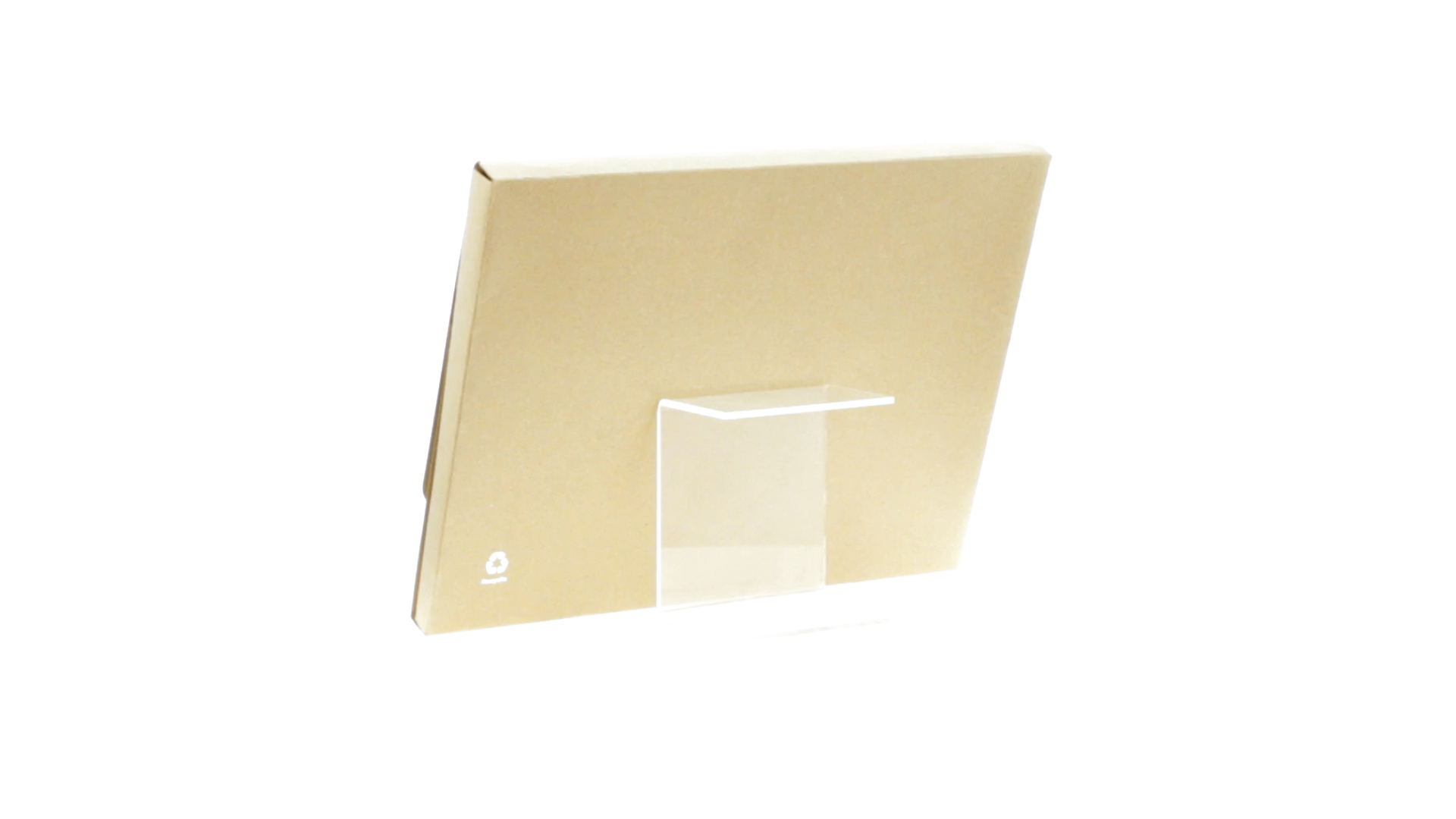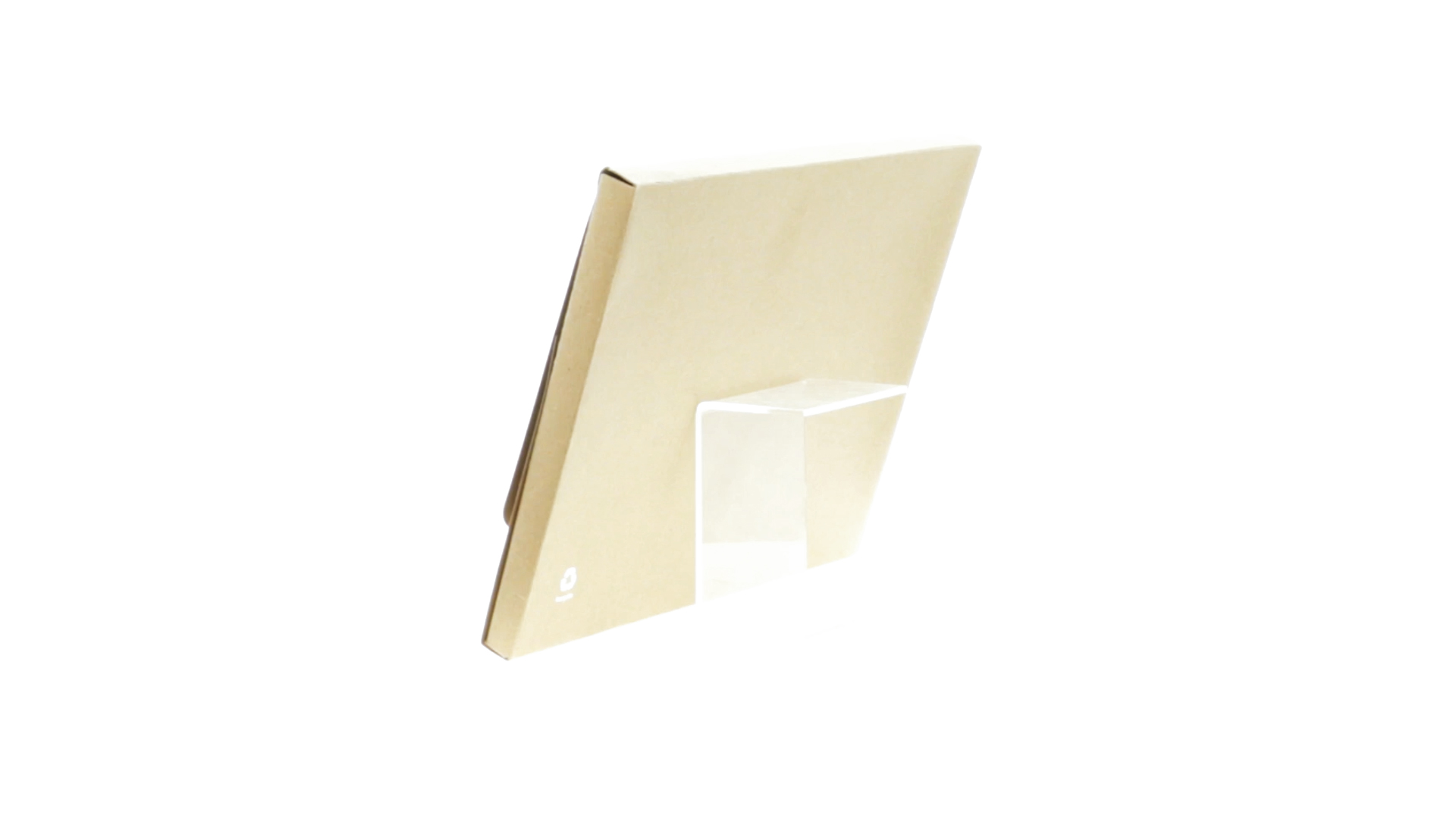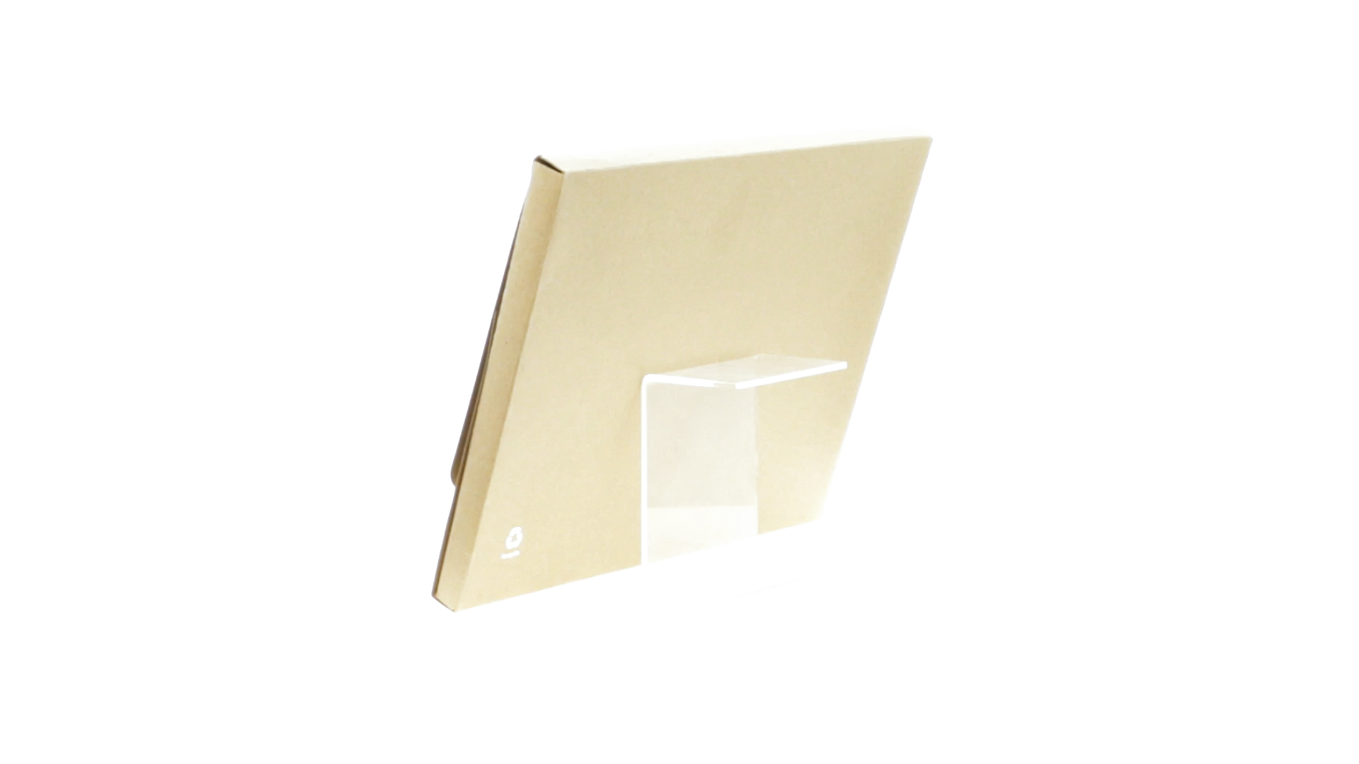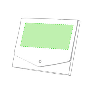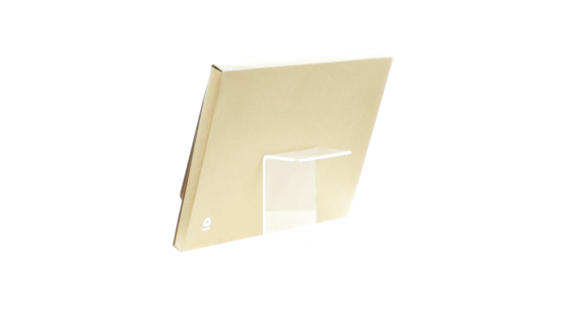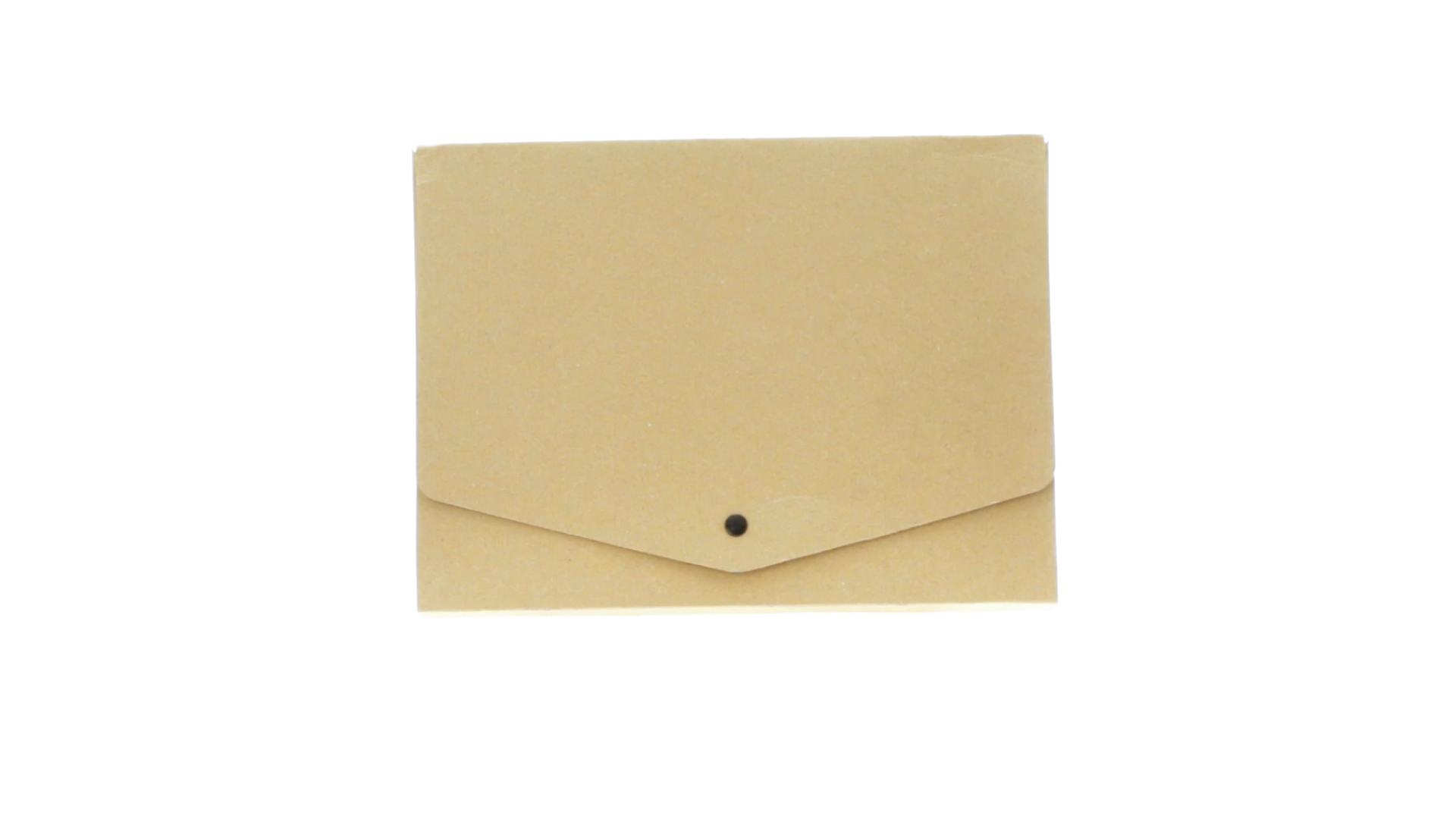 Dokumententasche aus stabilem Recyclingkarton mit Klappenverschluss mit Druckknopf.