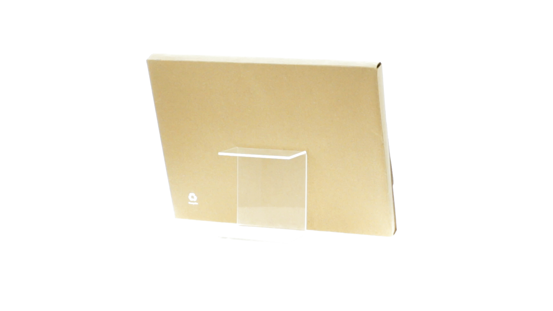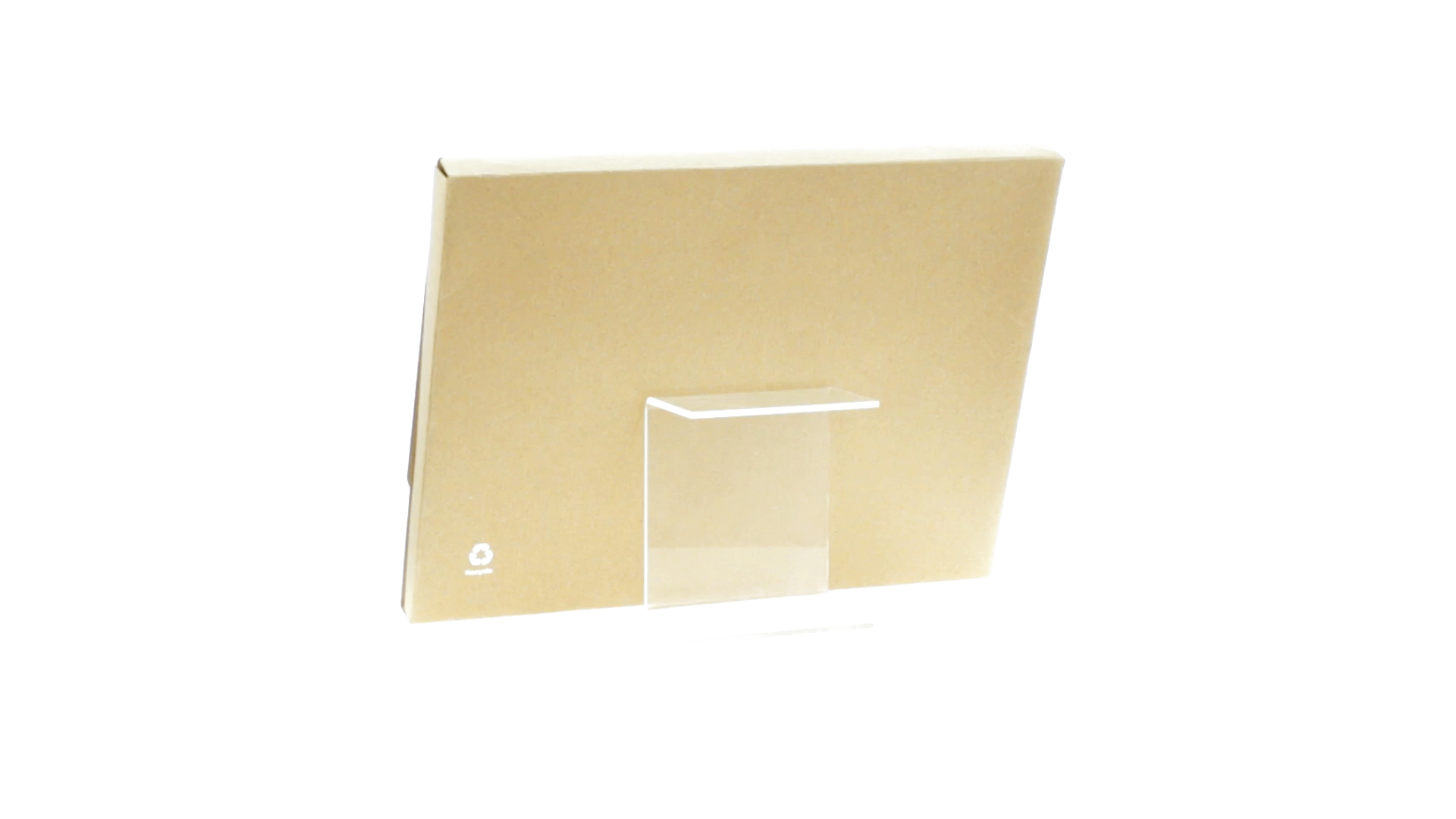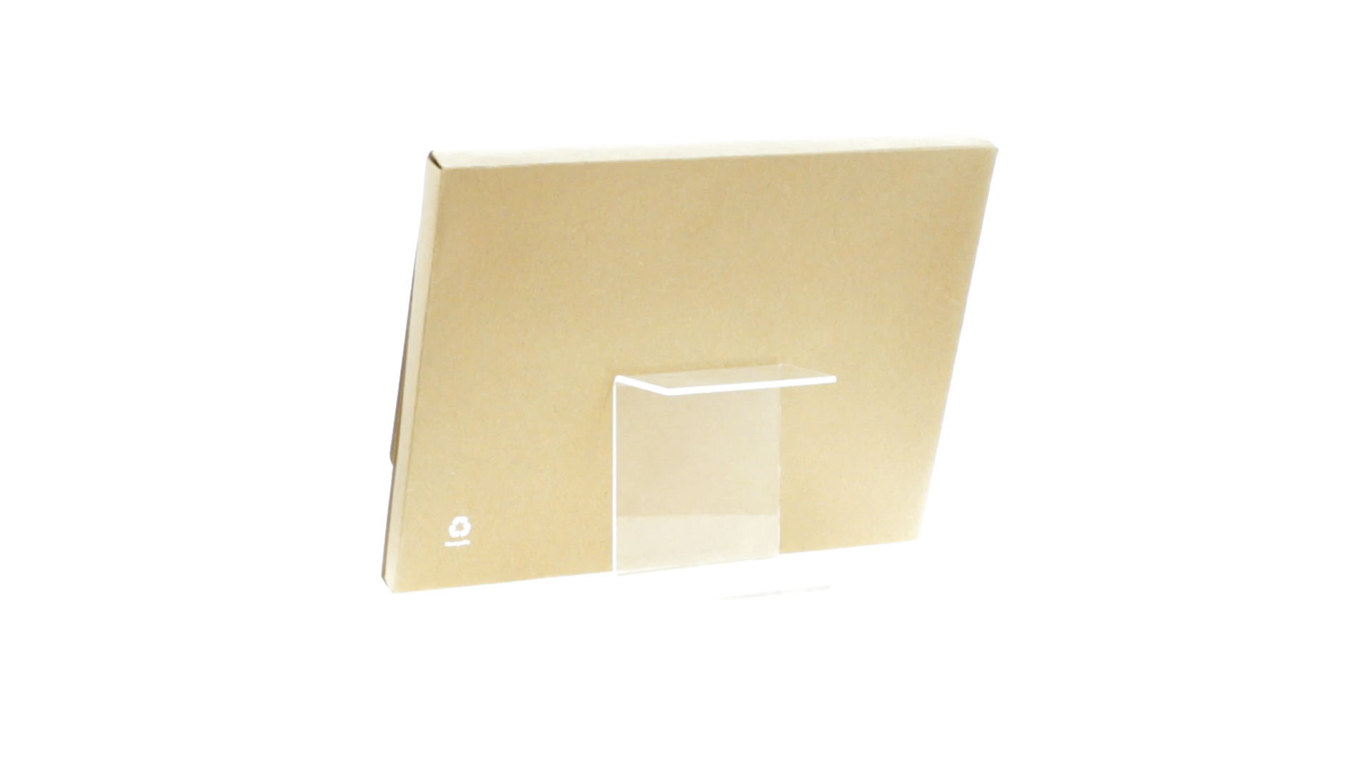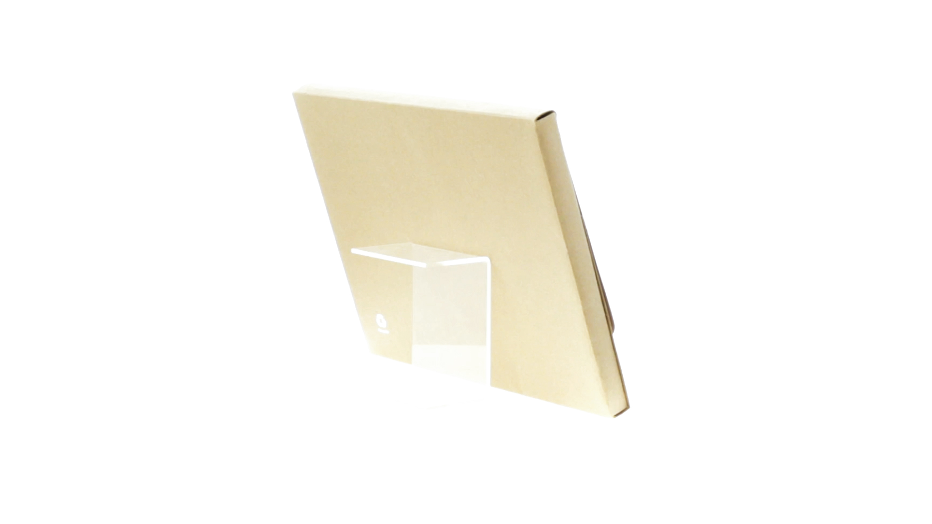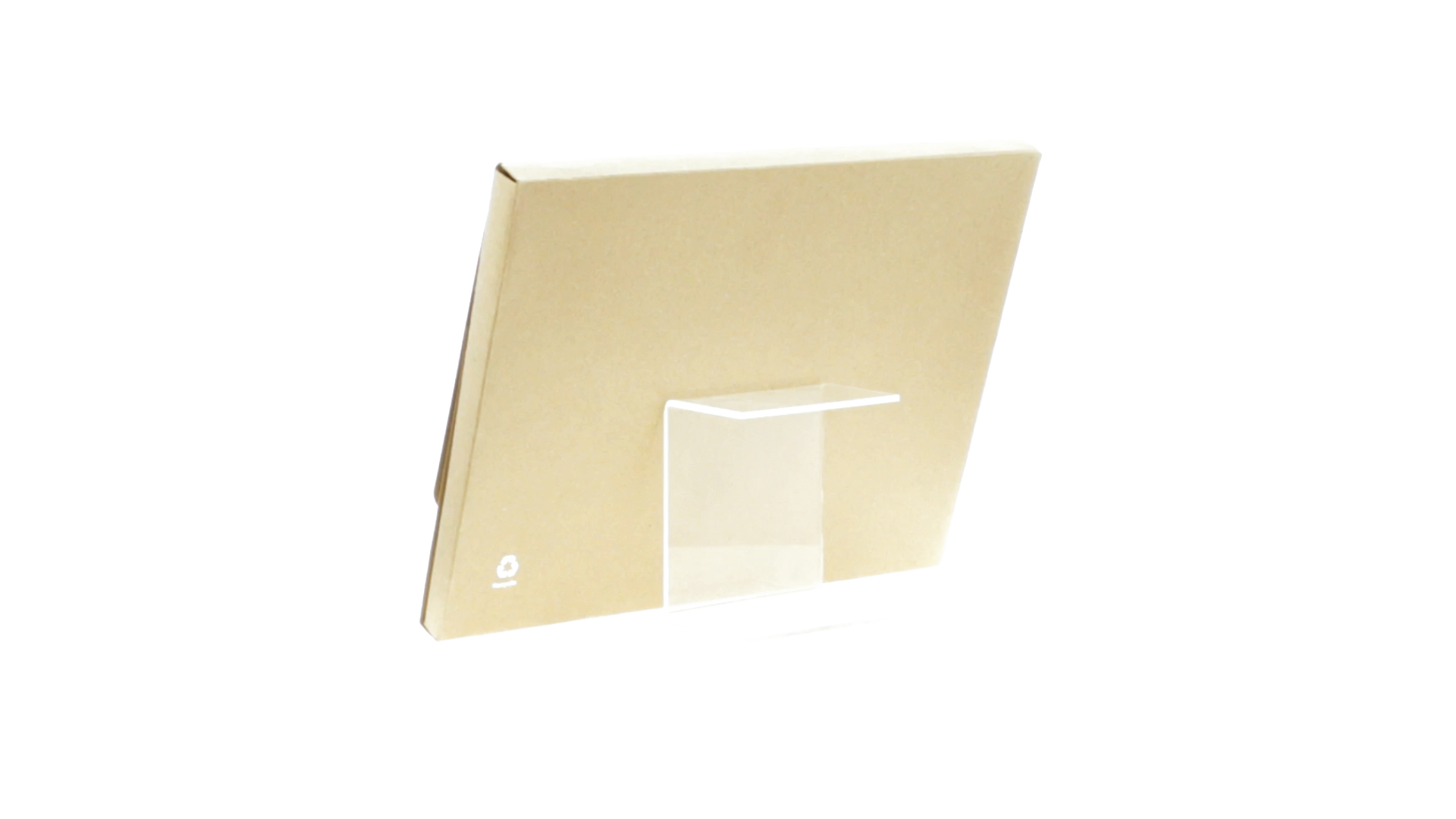 Dokumententasche aus stabilem Recyclingkarton mit Klappenverschluss mit Druckknopf.