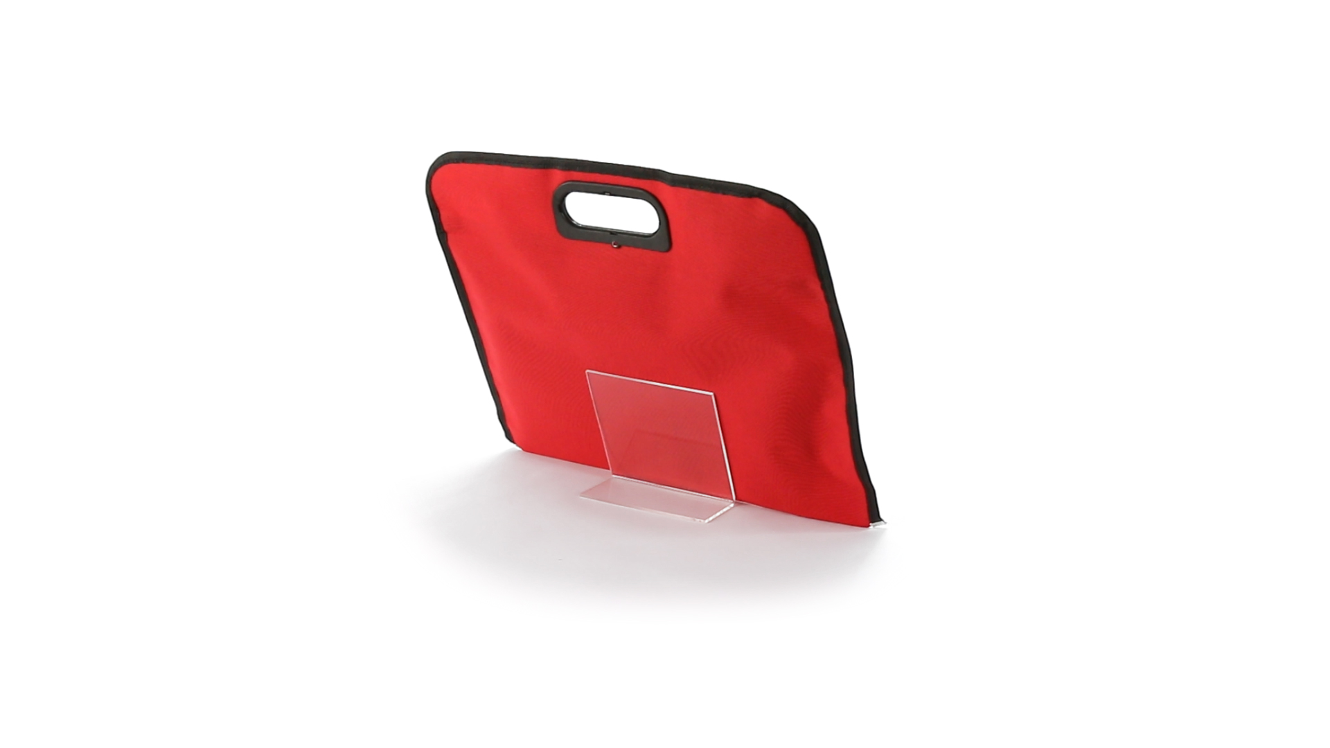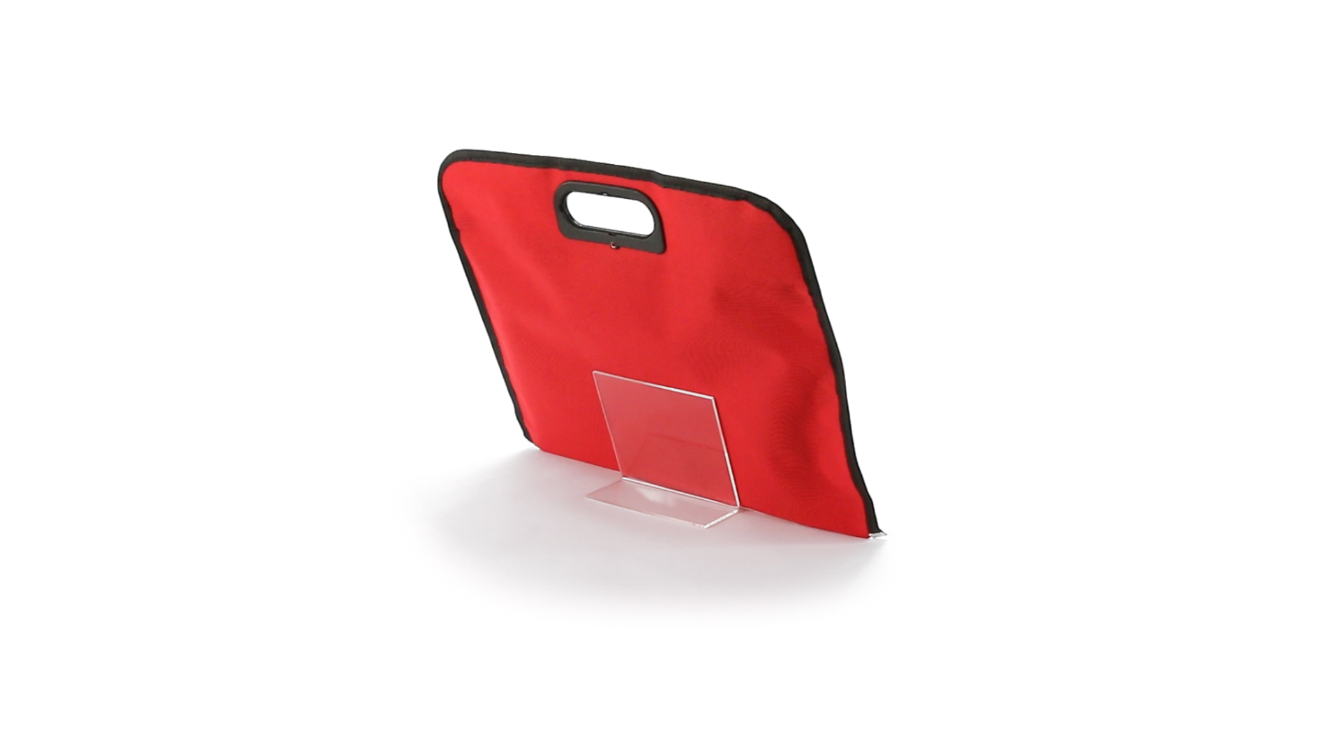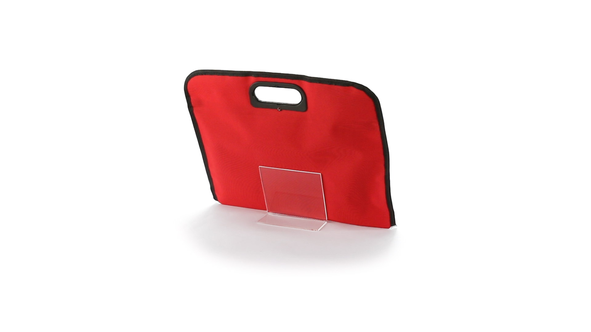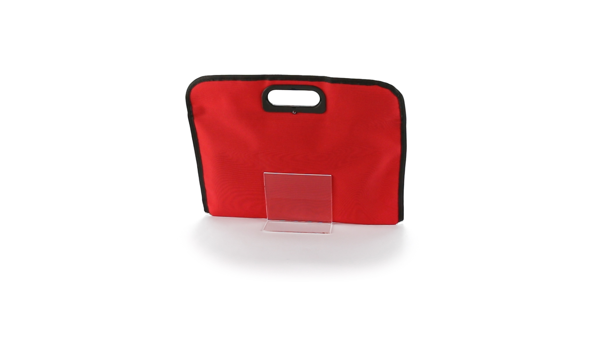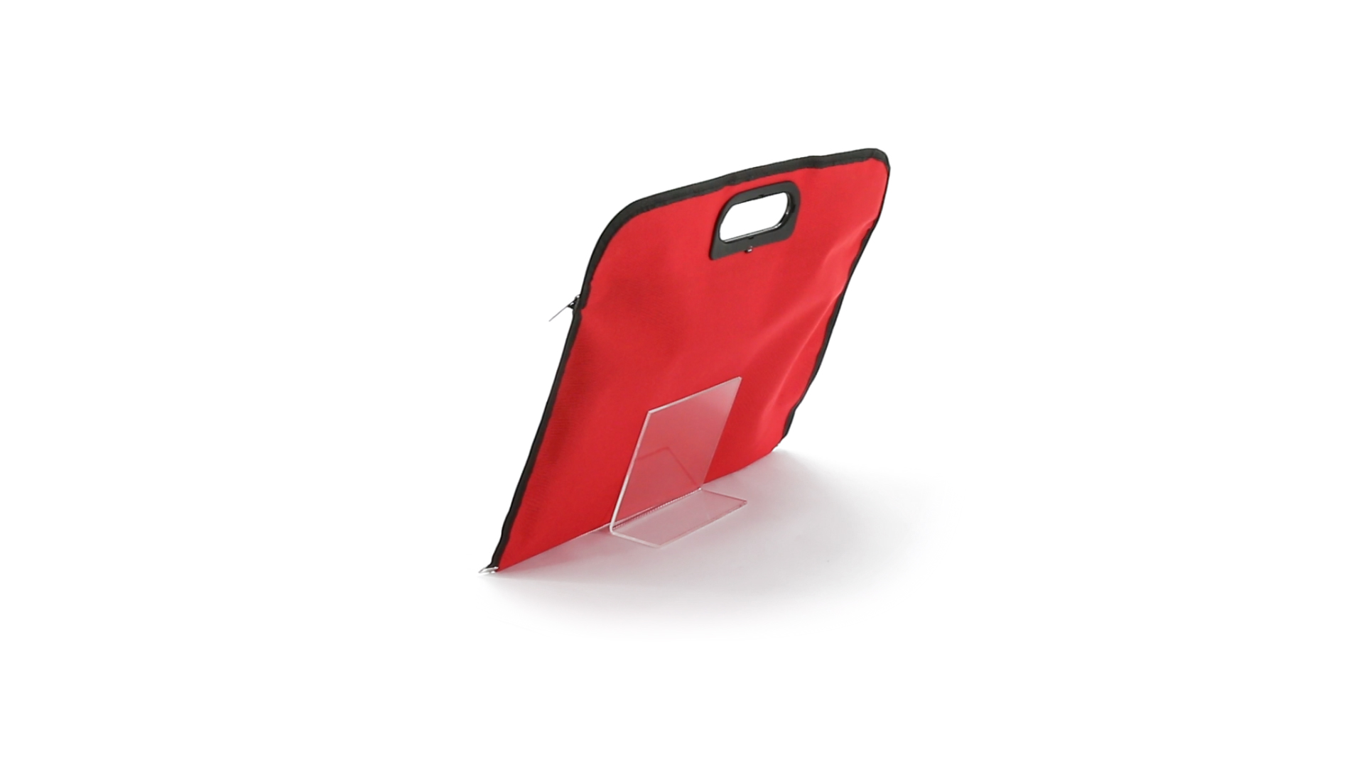Dokumententasche mit Reissverschluss aus weichem 600D Polyester in lebendigen Farben. Tragegriffe mit originellem Design mit Stanzung, Paspel in Schwarz und Metallverstärkungen am Boden.