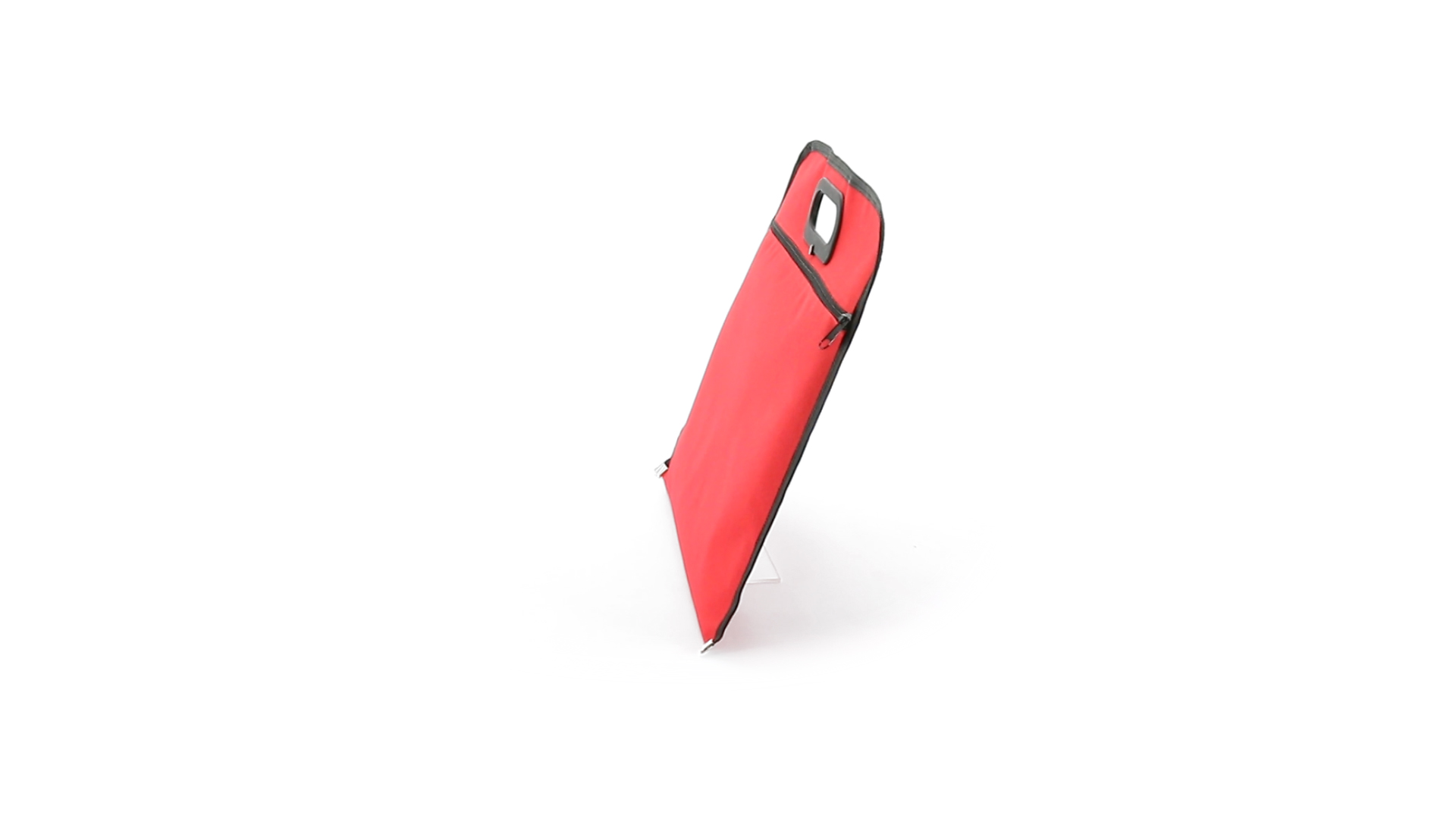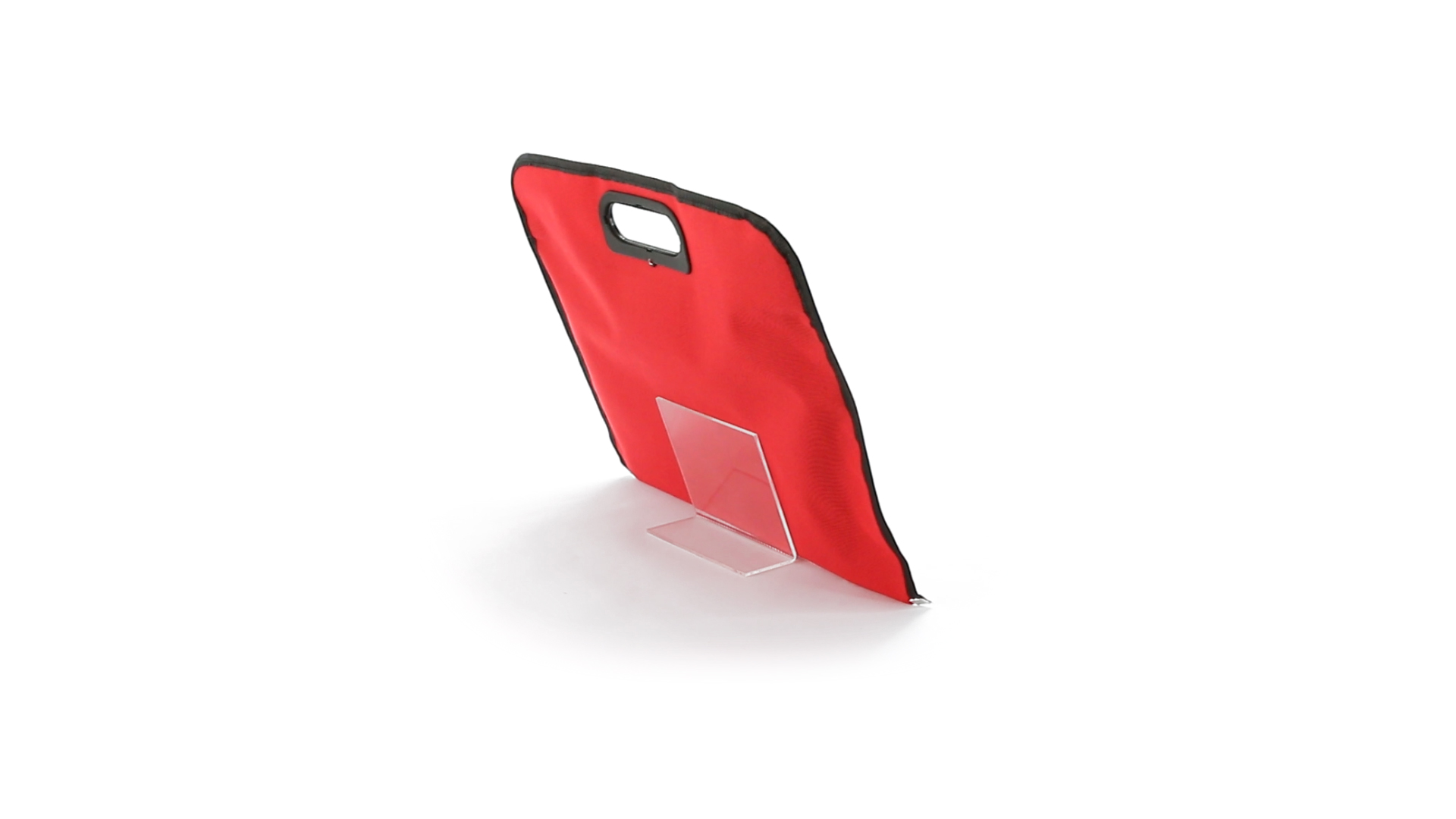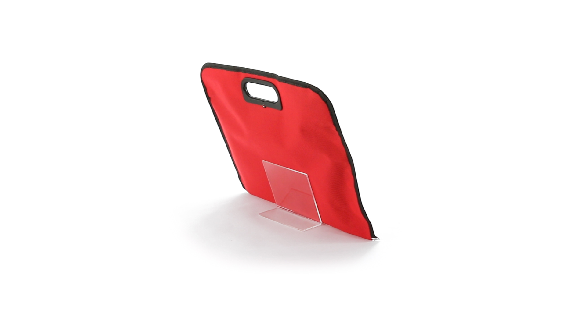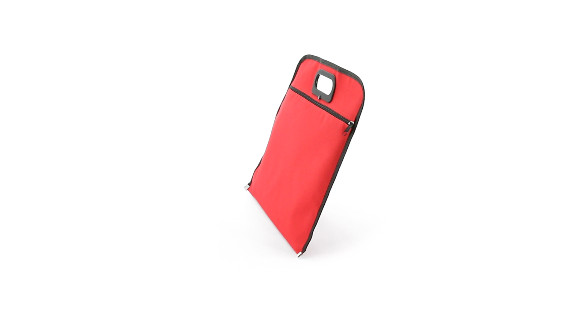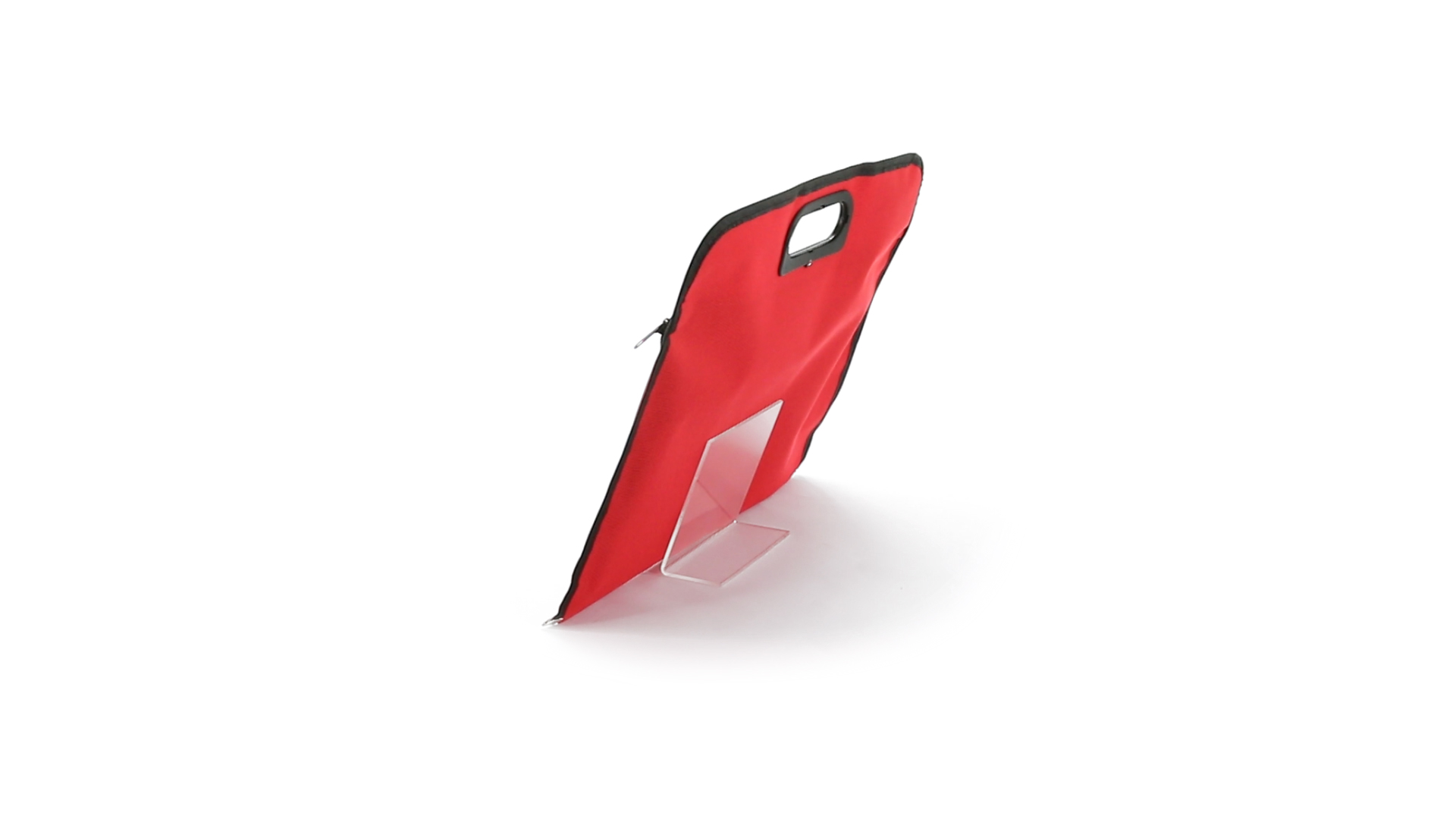 Dokumententasche mit Reissverschluss aus weichem 600D Polyester in lebendigen Farben. Tragegriffe mit originellem Design mit Stanzung, Paspel in Schwarz und Metallverstärkungen am Boden.