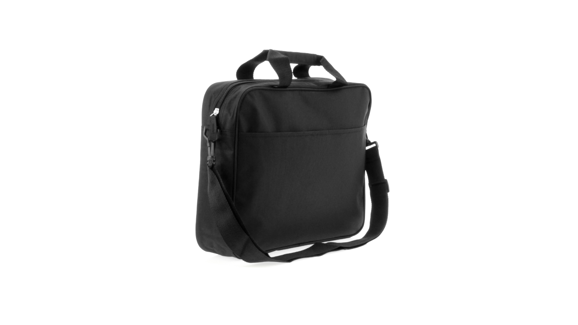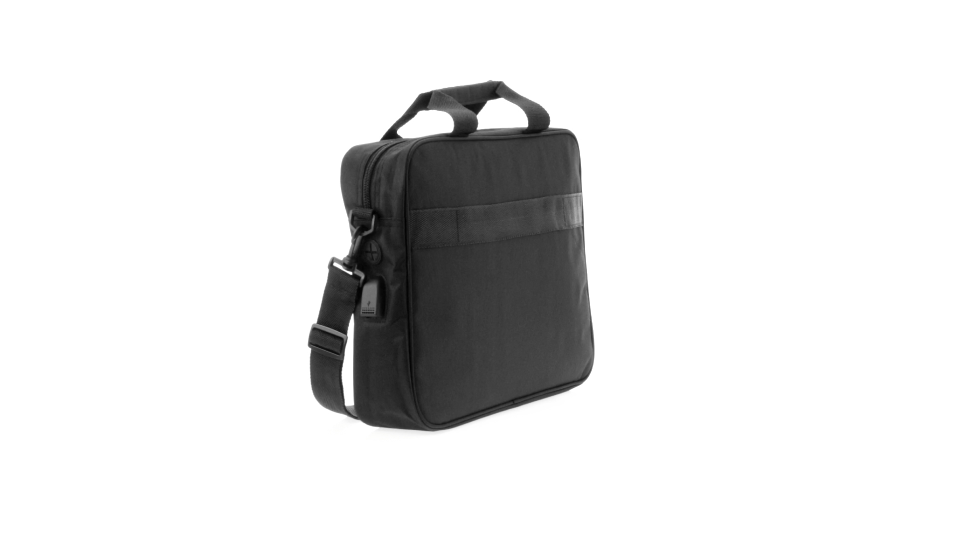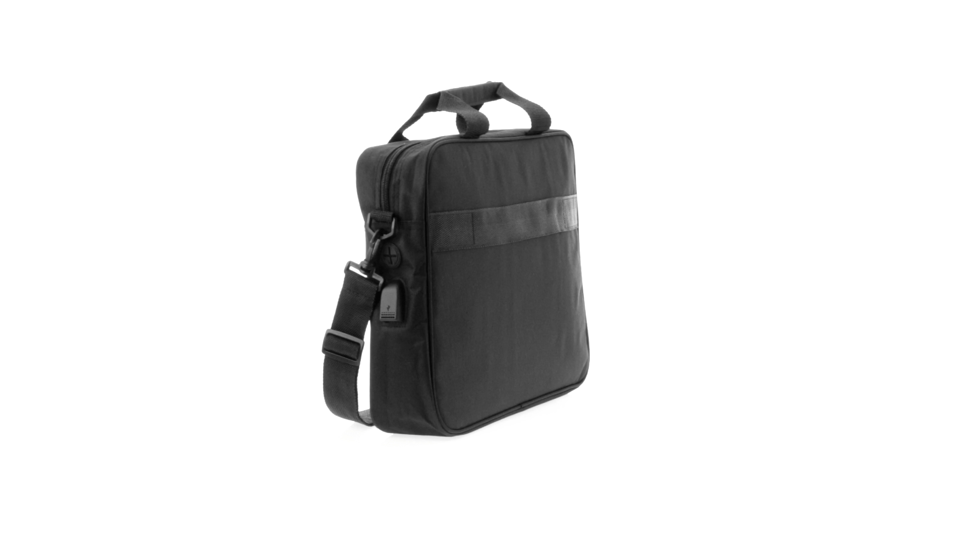 Dokumententasche aus resistentem 600D Polyester in Schwarz. Mit Reissverschluss, Kopfhörerausgang und Fach mit USB-Ausgang für externen Akku (nicht inklusive) im Inneren sowie robusten verstärkten Griffen. Zudem mit Befestigungsgurt auf der Rückseite für Anbringung an einem Trolley, gepolstertem Fach für Laptop von bis zu 15 Zoll und Tablet von bis zu 10 Zoll. Mit vielen verschiedenen Innen- und Aussentaschen sowie verstellbarem Schultergurt mit Karabinerbefestigung.