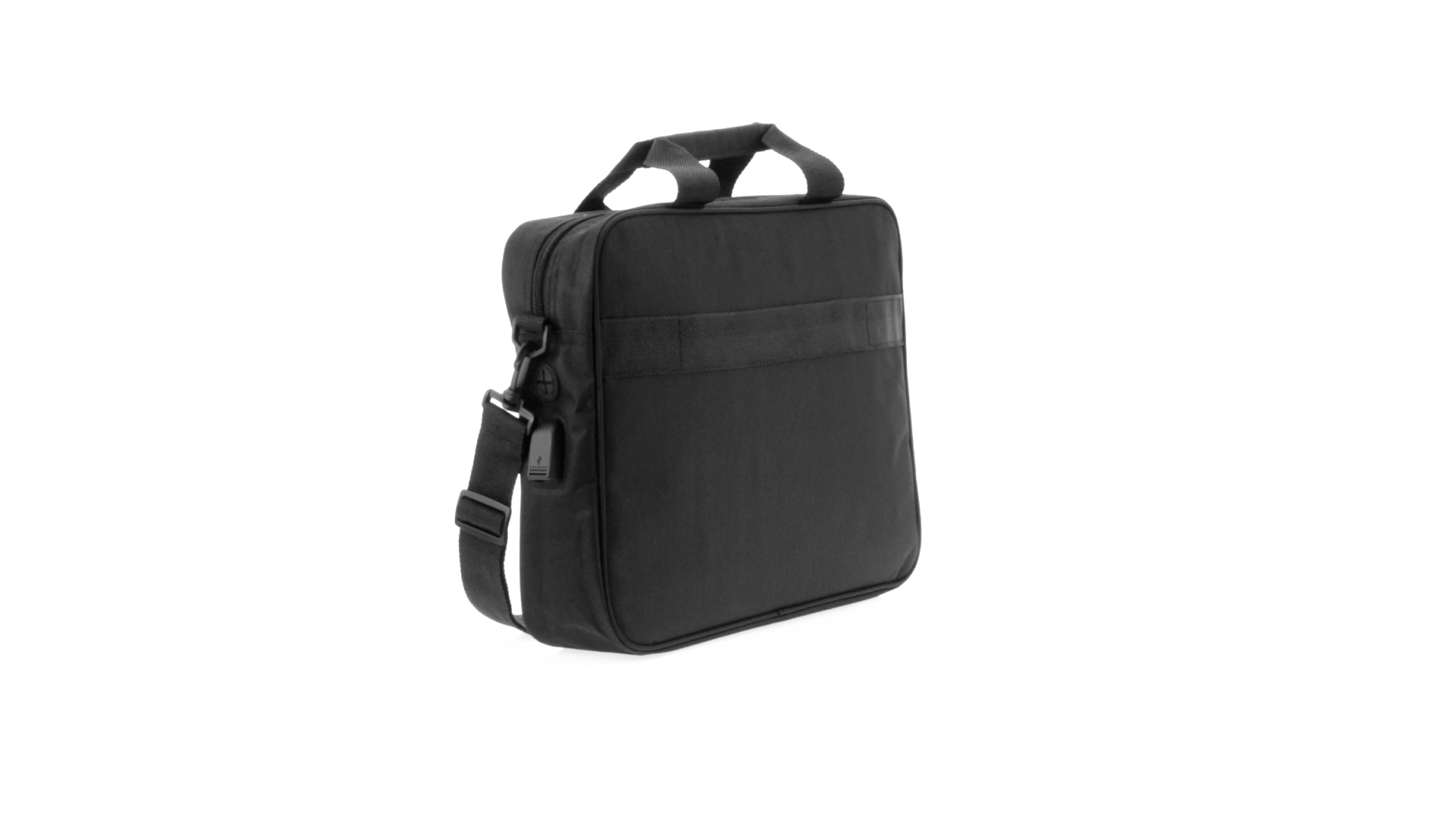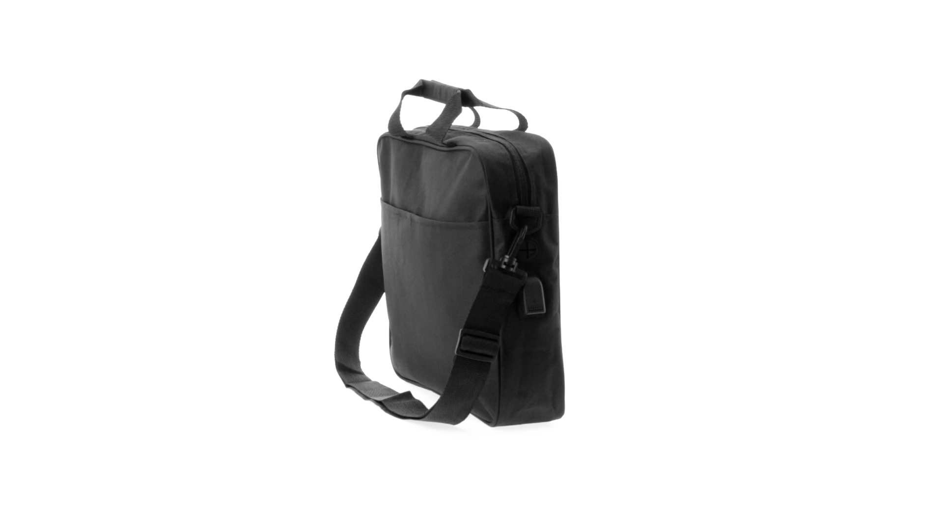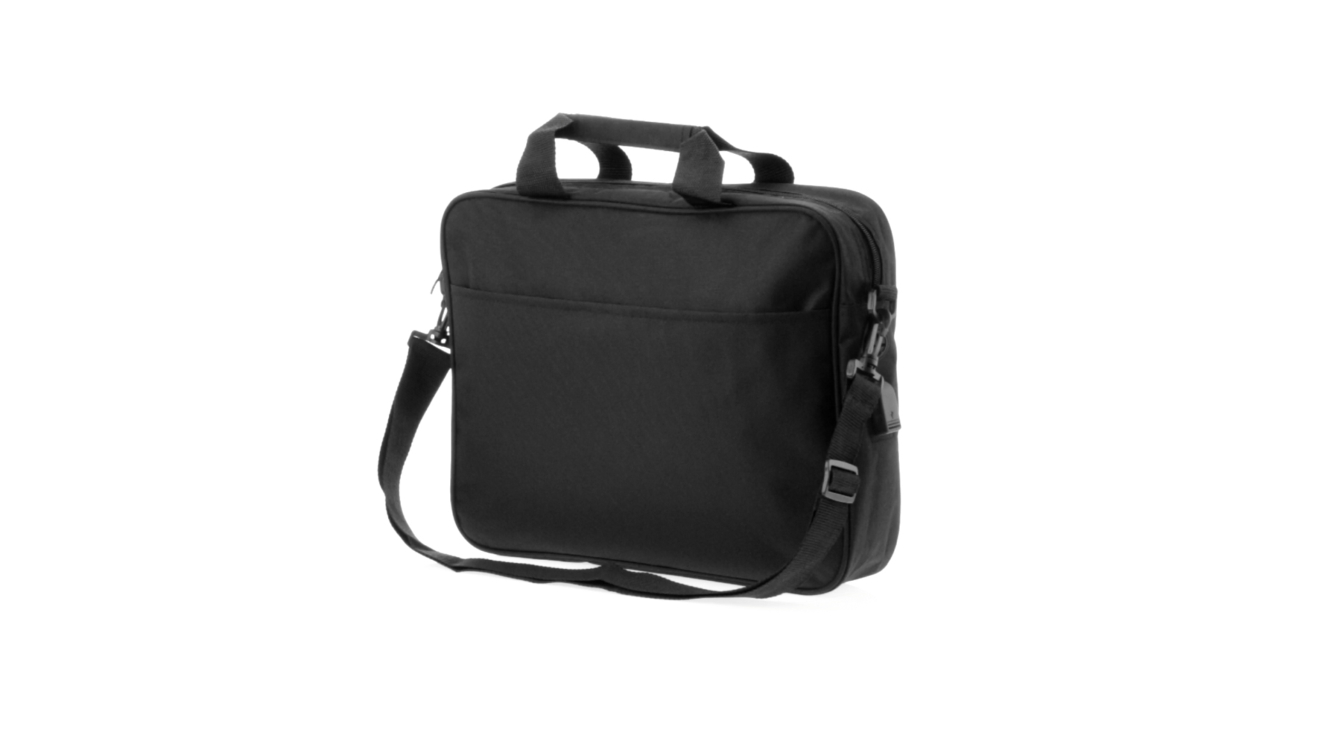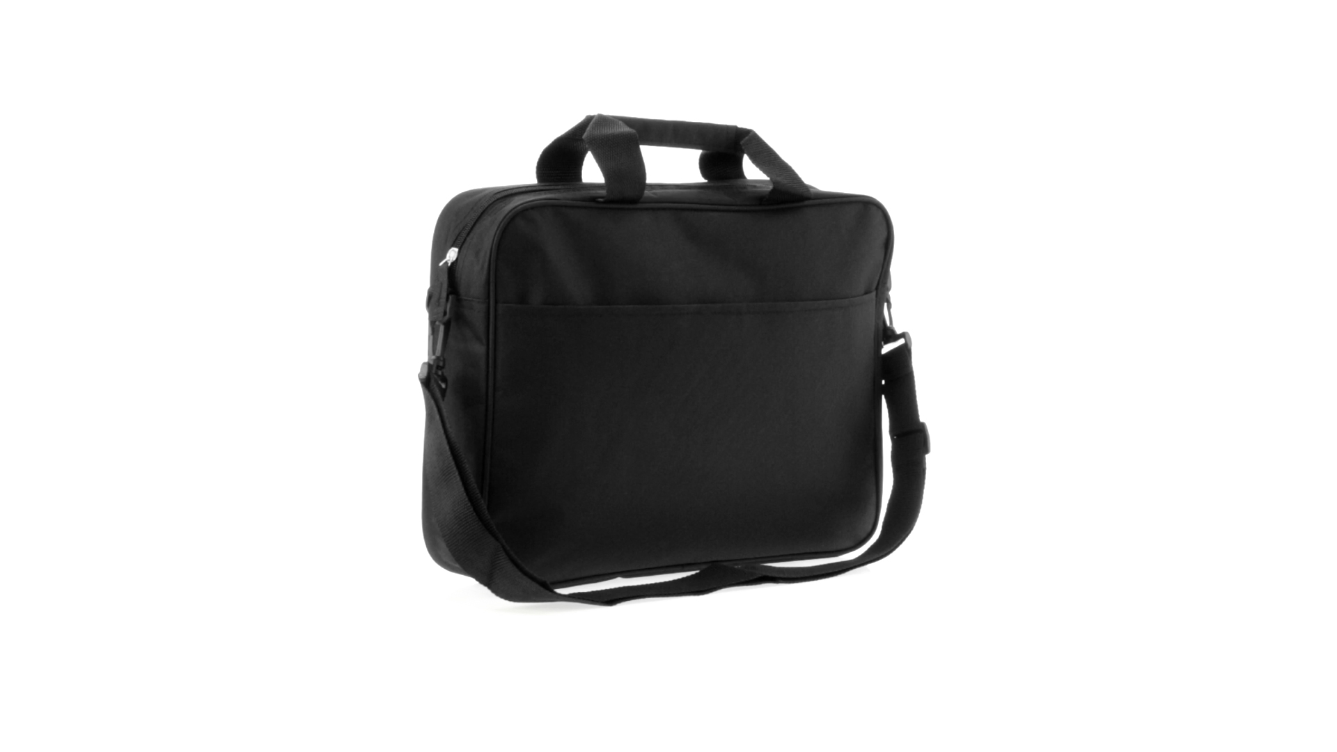 Dokumententasche aus resistentem 600D Polyester in Schwarz. Mit Reissverschluss, Kopfhörerausgang und Fach mit USB-Ausgang für externen Akku (nicht inklusive) im Inneren sowie robusten verstärkten Griffen. Zudem mit Befestigungsgurt auf der Rückseite für Anbringung an einem Trolley, gepolstertem Fach für Laptop von bis zu 15 Zoll und Tablet von bis zu 10 Zoll. Mit vielen verschiedenen Innen- und Aussentaschen sowie verstellbarem Schultergurt mit Karabinerbefestigung.