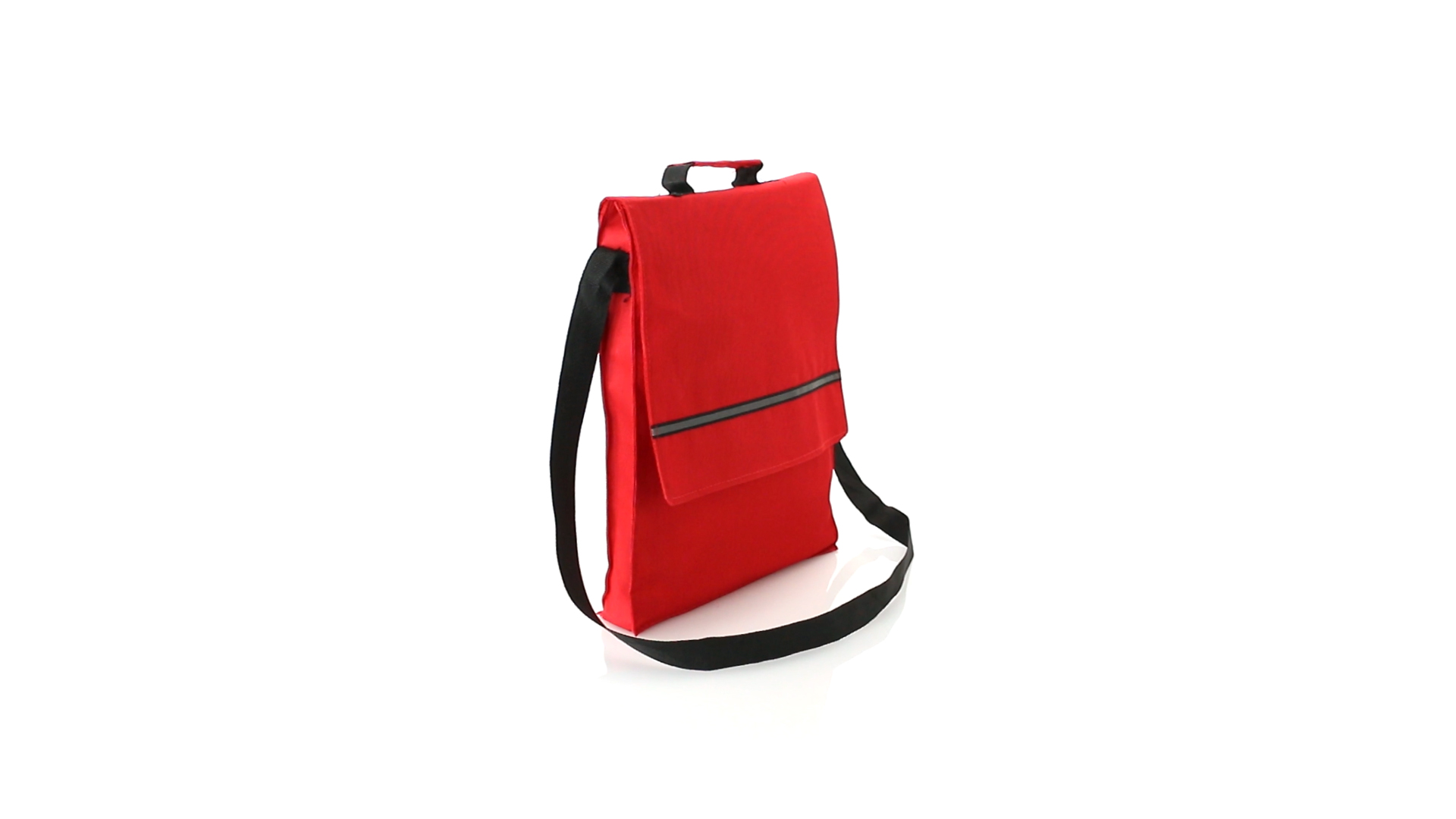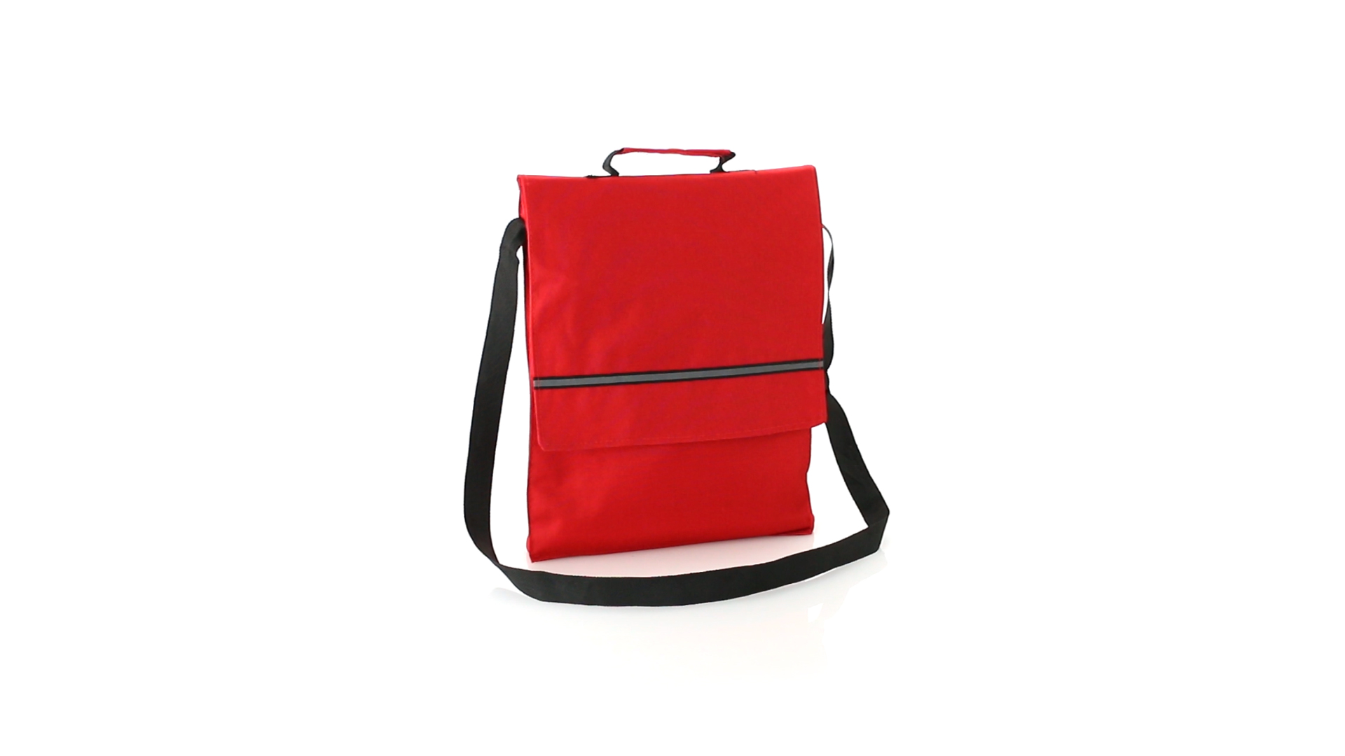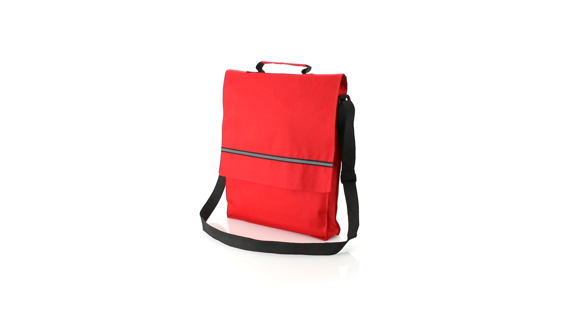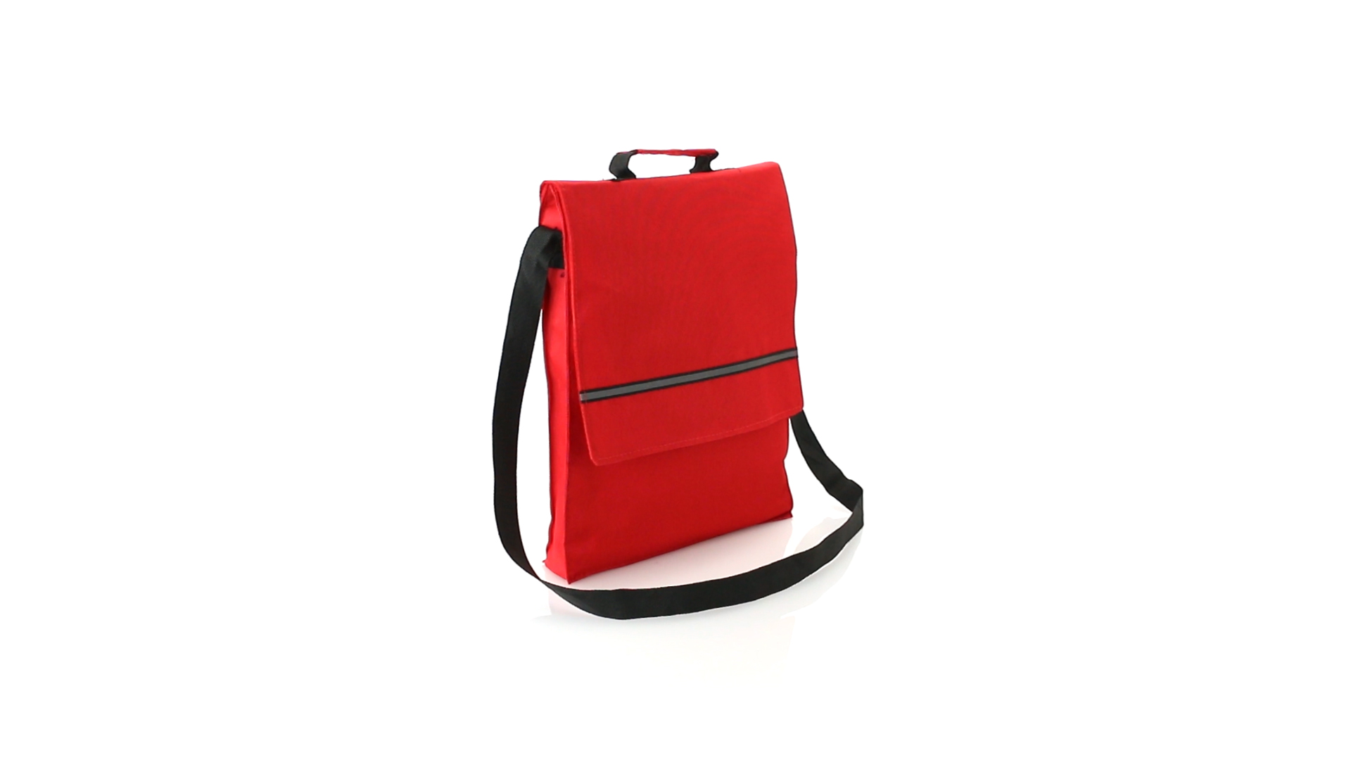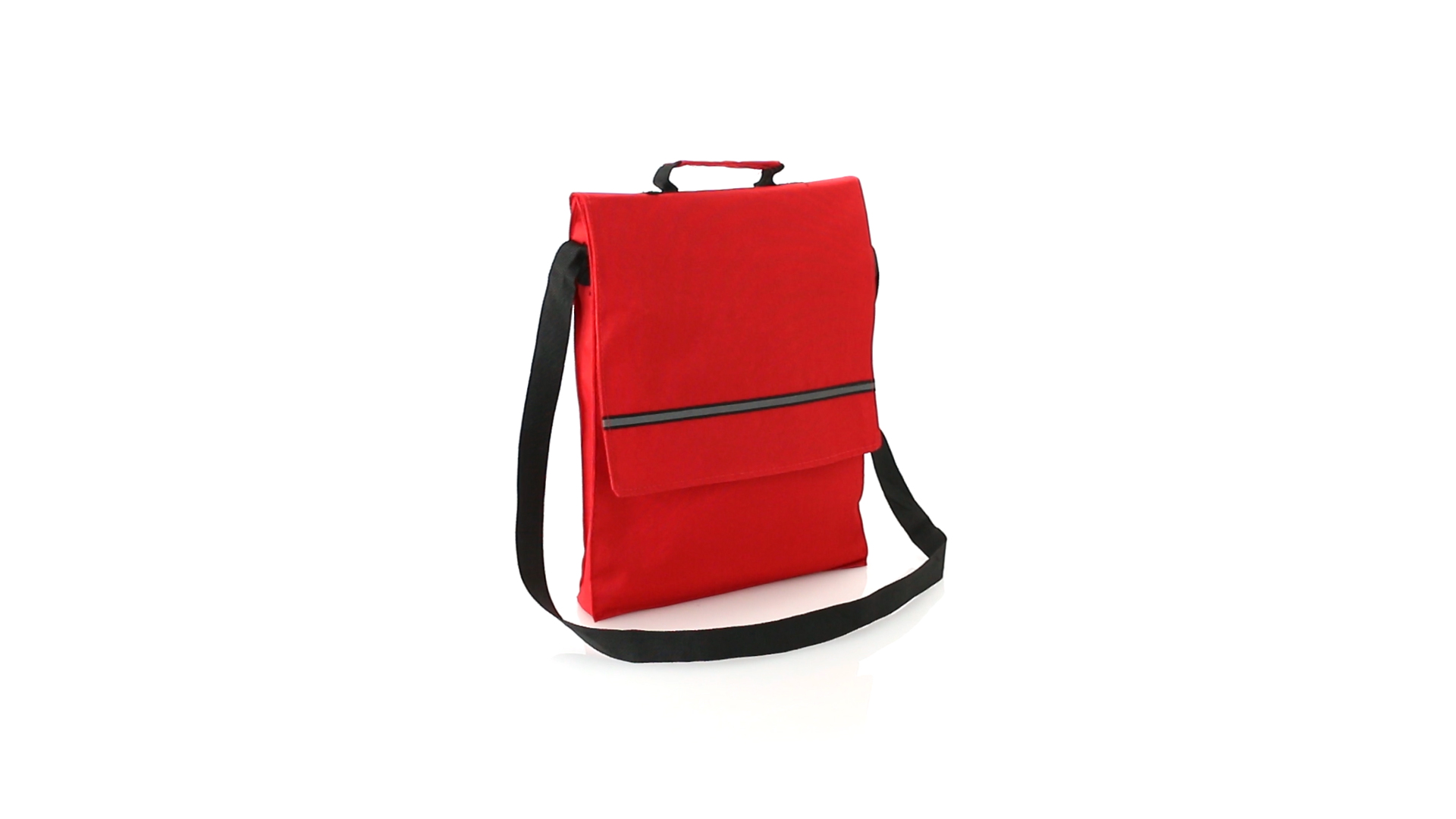 Dokumententasche mit Klettverschlussklappe aus Polyester 600D in lebendigen Farben. Mit reflektierendem Frontband, farblich passenden, verstärkten Griffen, verstellbarem Schultergurt sowie verschiedenen Innenfächern mit Stifthülsen und Smartphone-Fach.