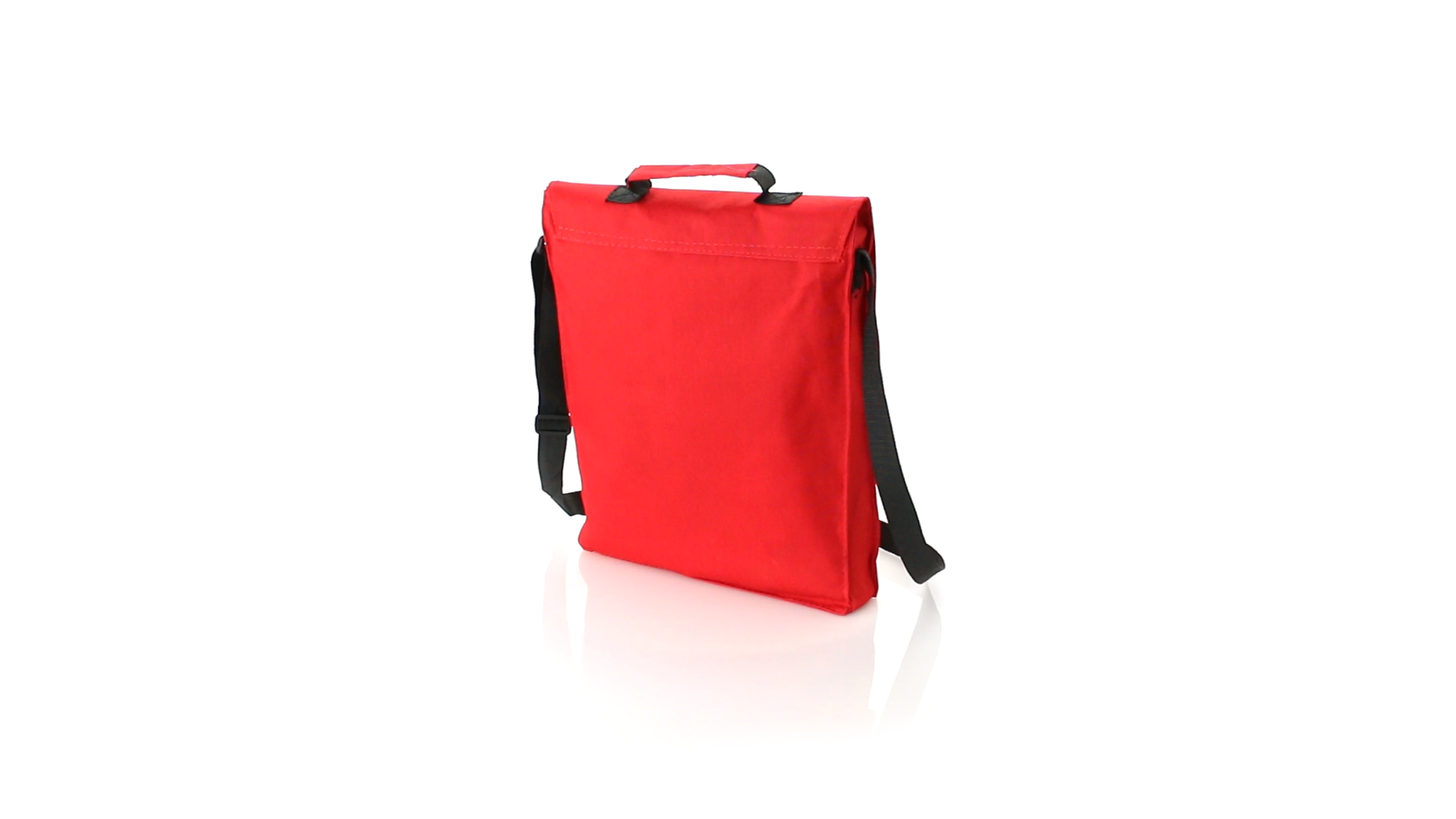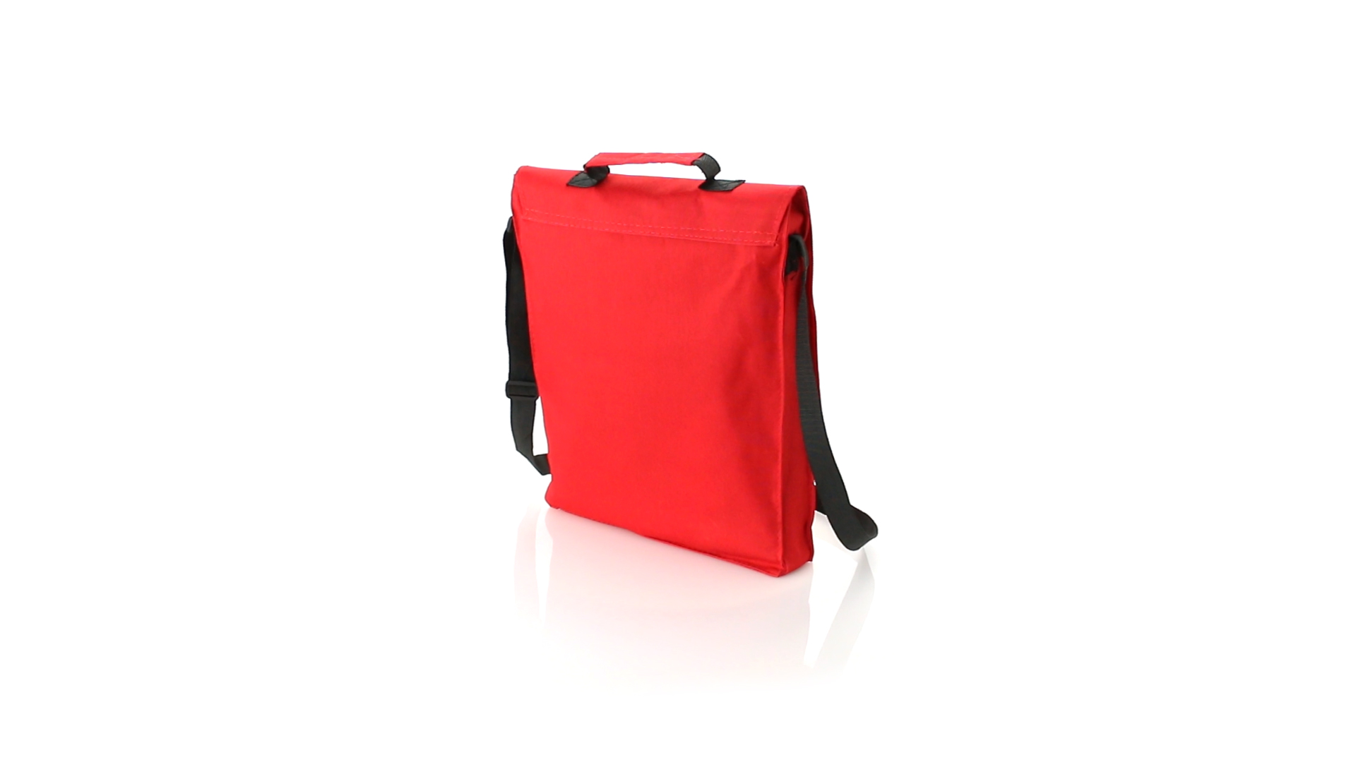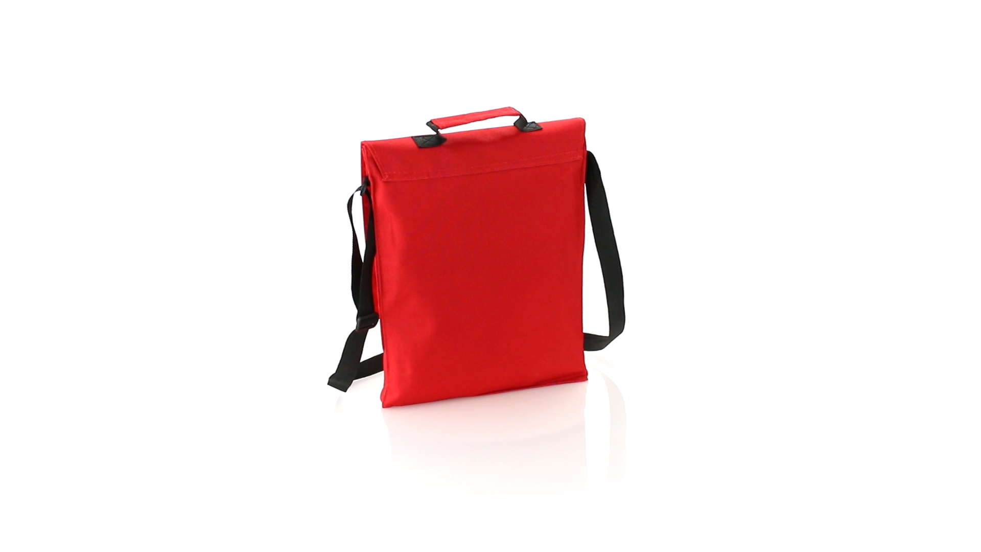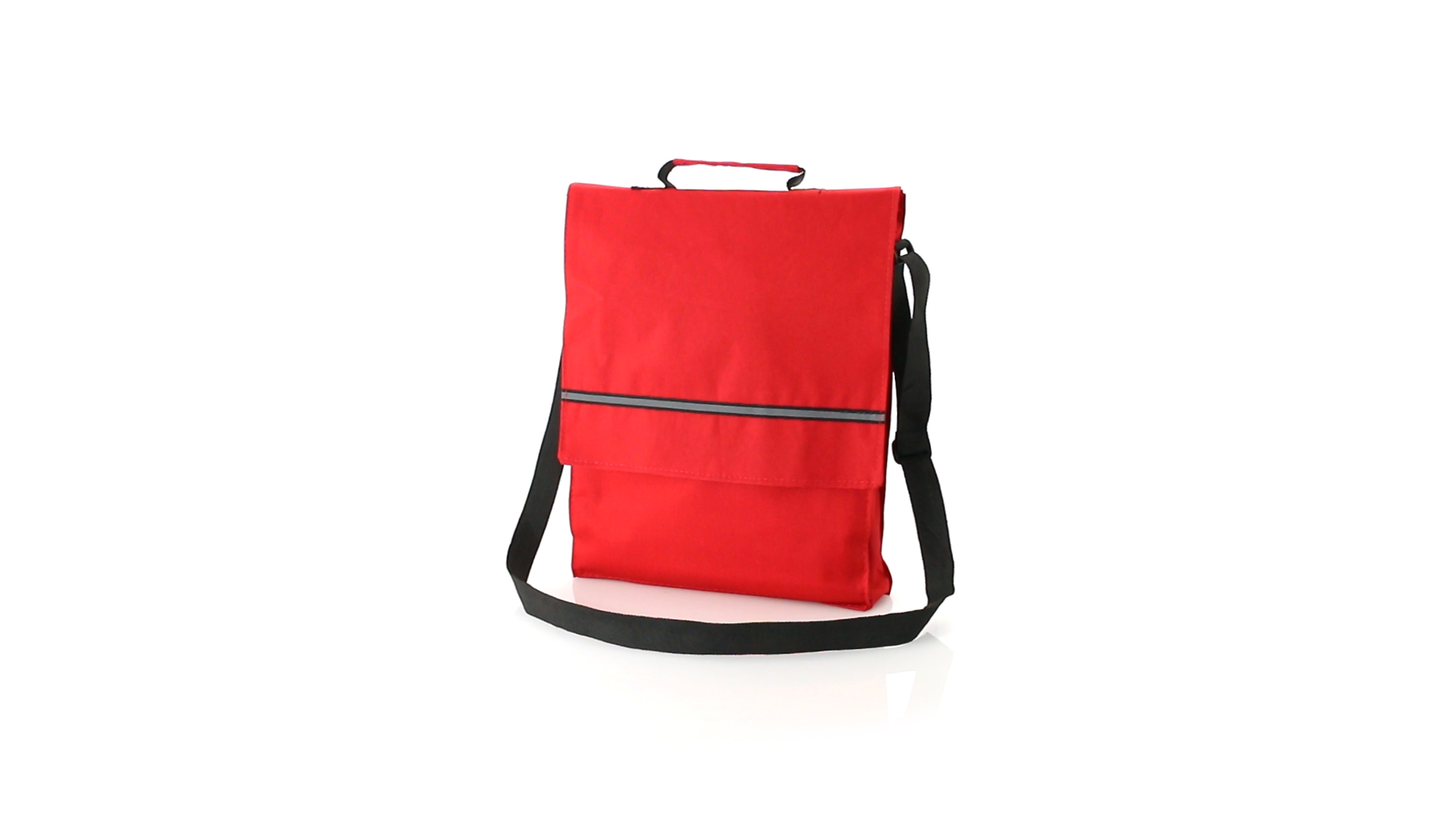Dokumententasche mit Klettverschlussklappe aus Polyester 600D in lebendigen Farben. Mit reflektierendem Frontband, farblich passenden, verstärkten Griffen, verstellbarem Schultergurt sowie verschiedenen Innenfächern mit Stifthülsen und Smartphone-Fach.