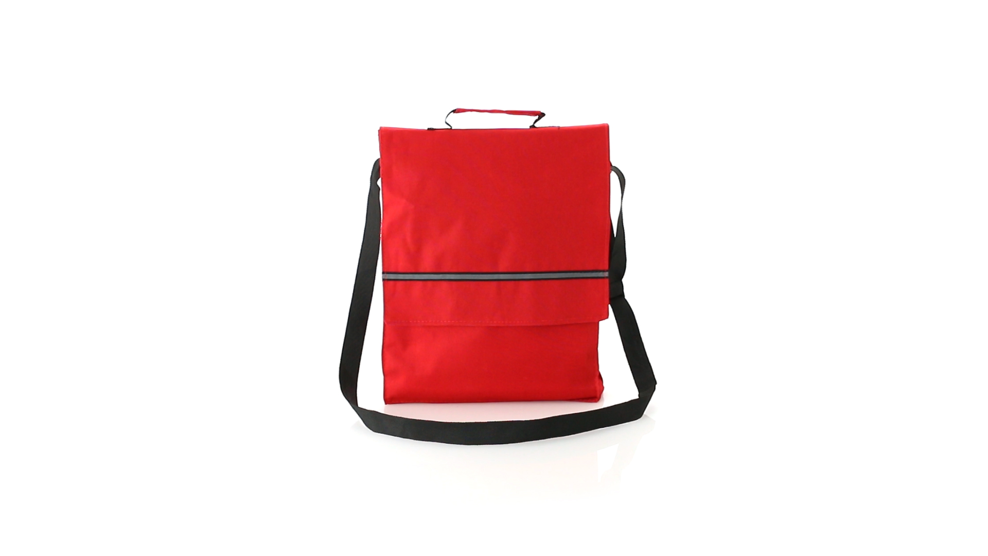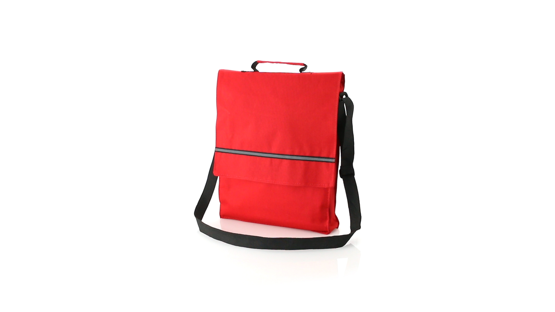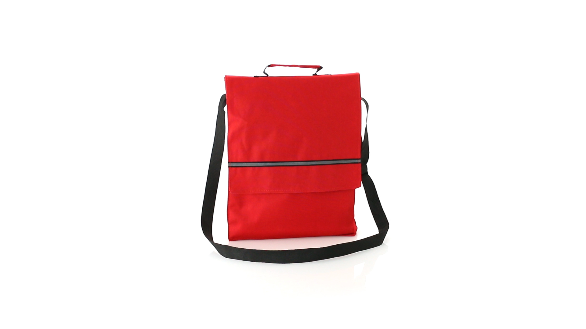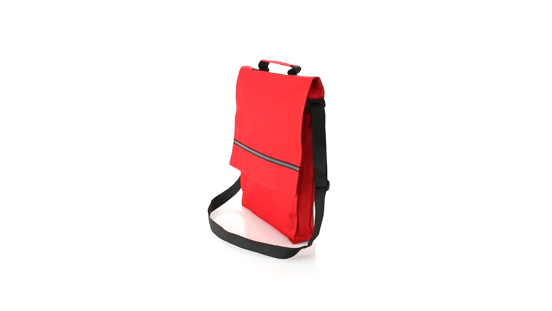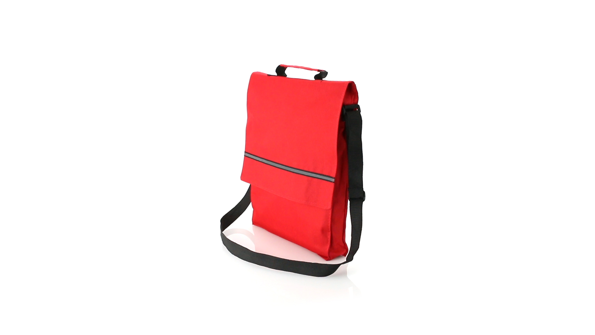 Dokumententasche mit Klettverschlussklappe aus Polyester 600D in lebendigen Farben. Mit reflektierendem Frontband, farblich passenden, verstärkten Griffen, verstellbarem Schultergurt sowie verschiedenen Innenfächern mit Stifthülsen und Smartphone-Fach.