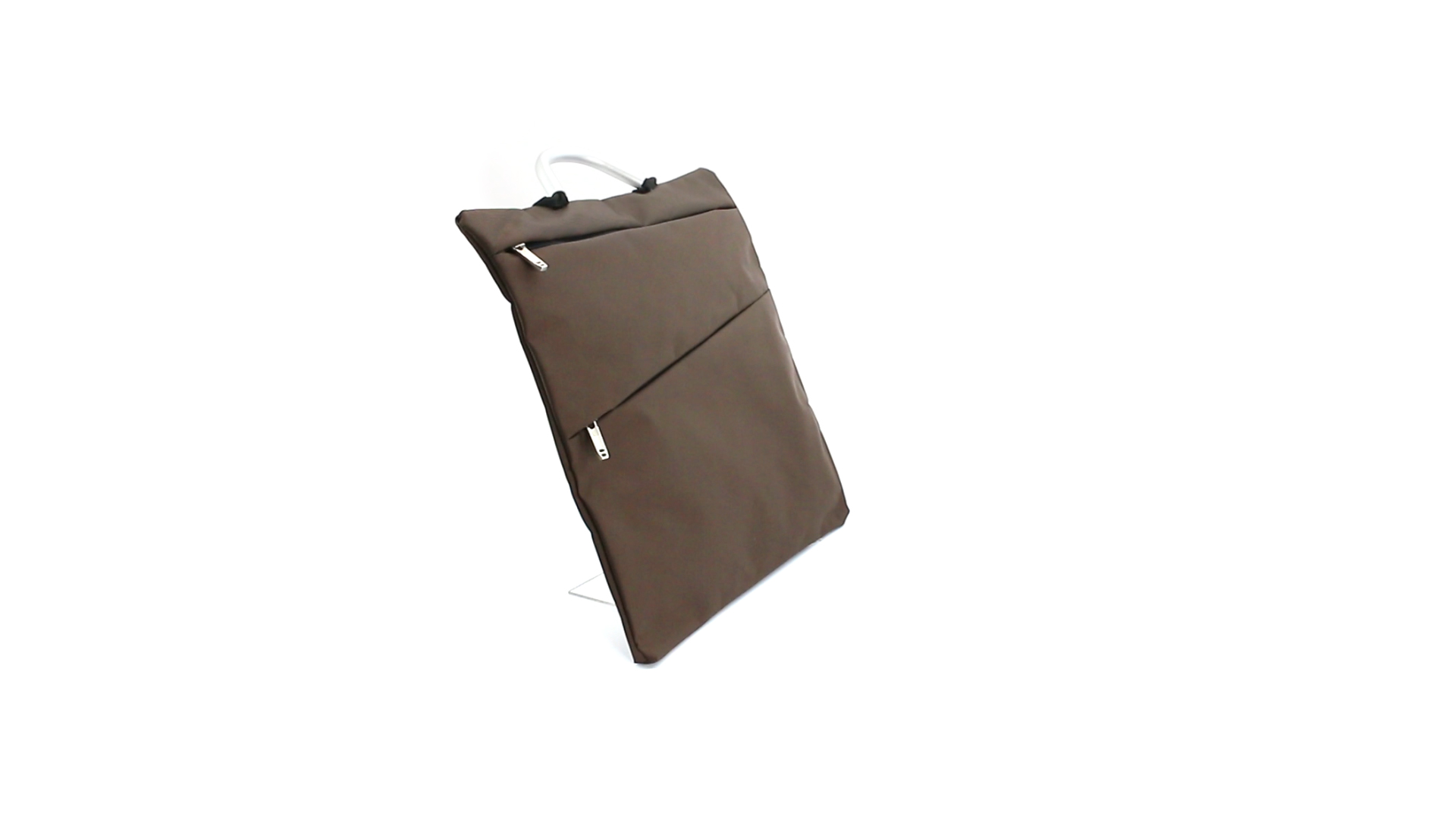 Praktische Dokumententasche in eleganter Ausführung aus Mikrofaser. Mit verstärkten Aluminiumgriffen sowie praktischen, farblich passenden Fronttaschen und originellen Reissverschlüssen.