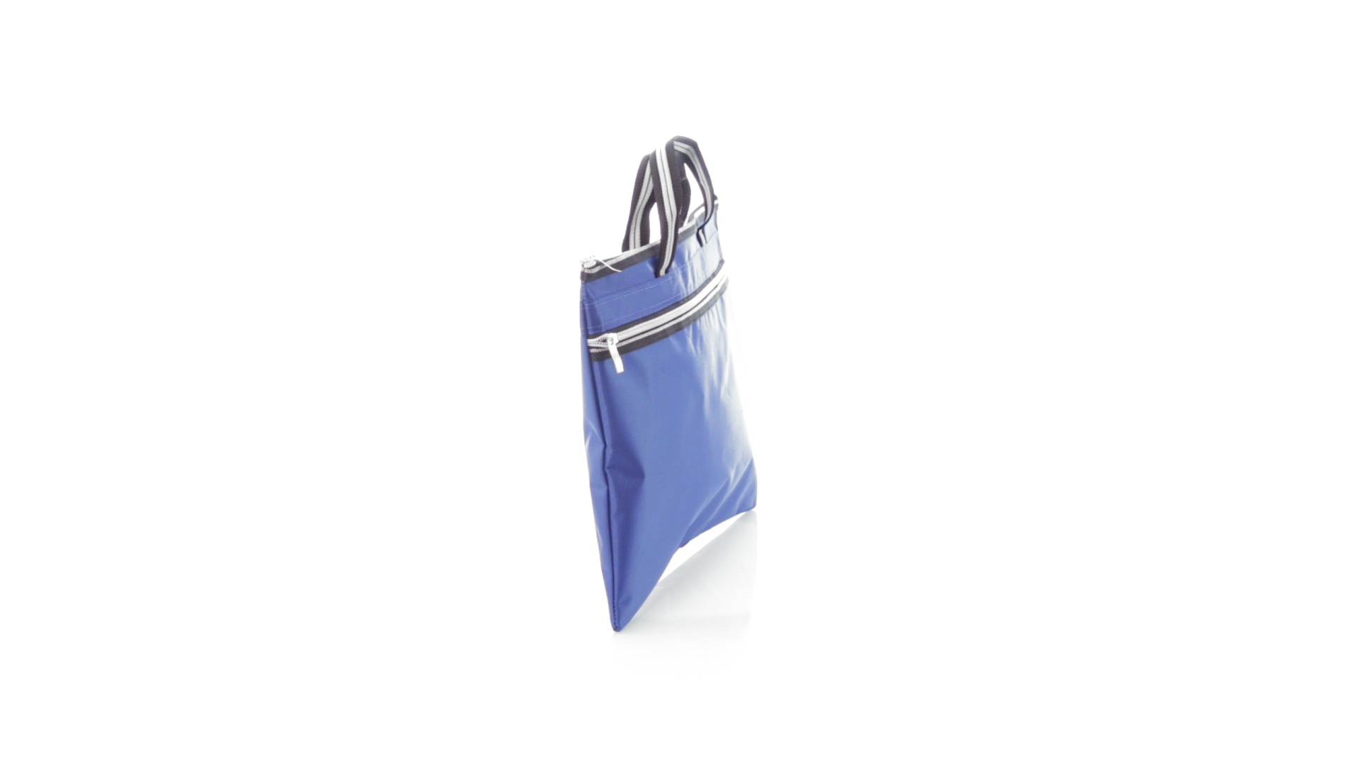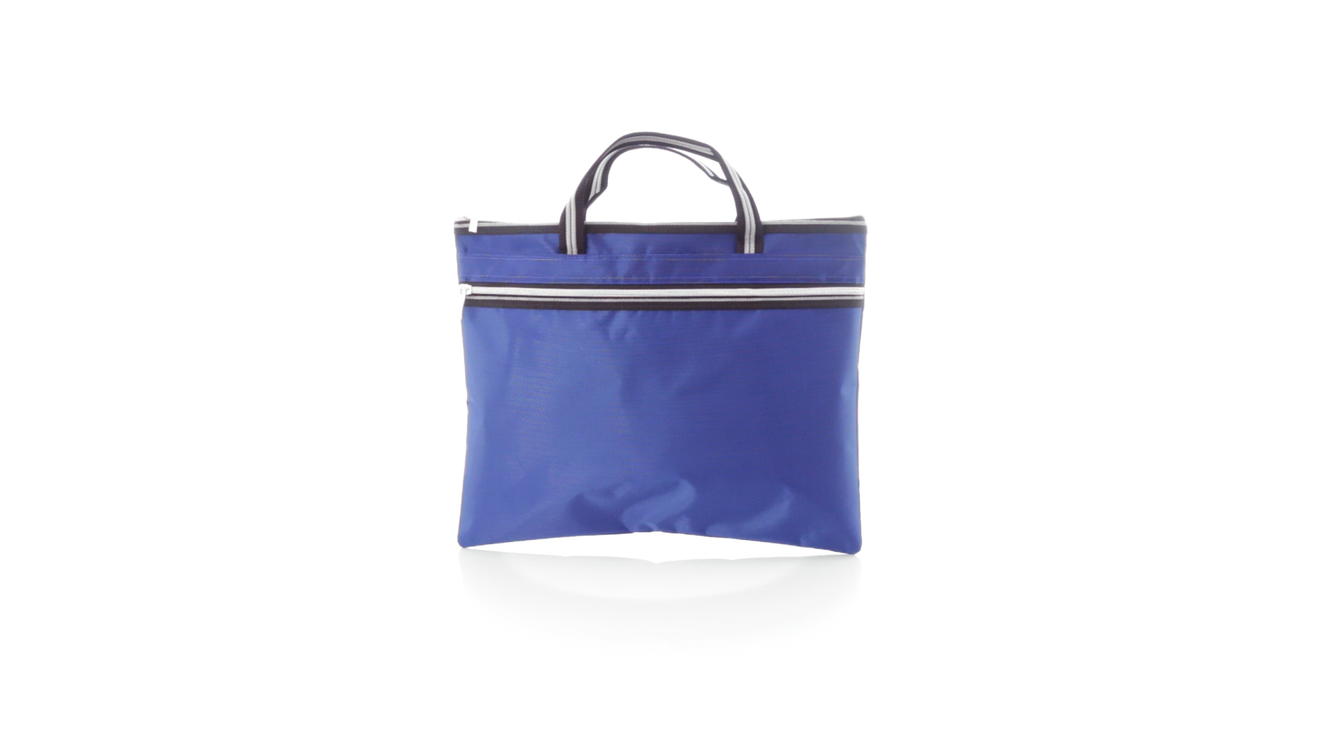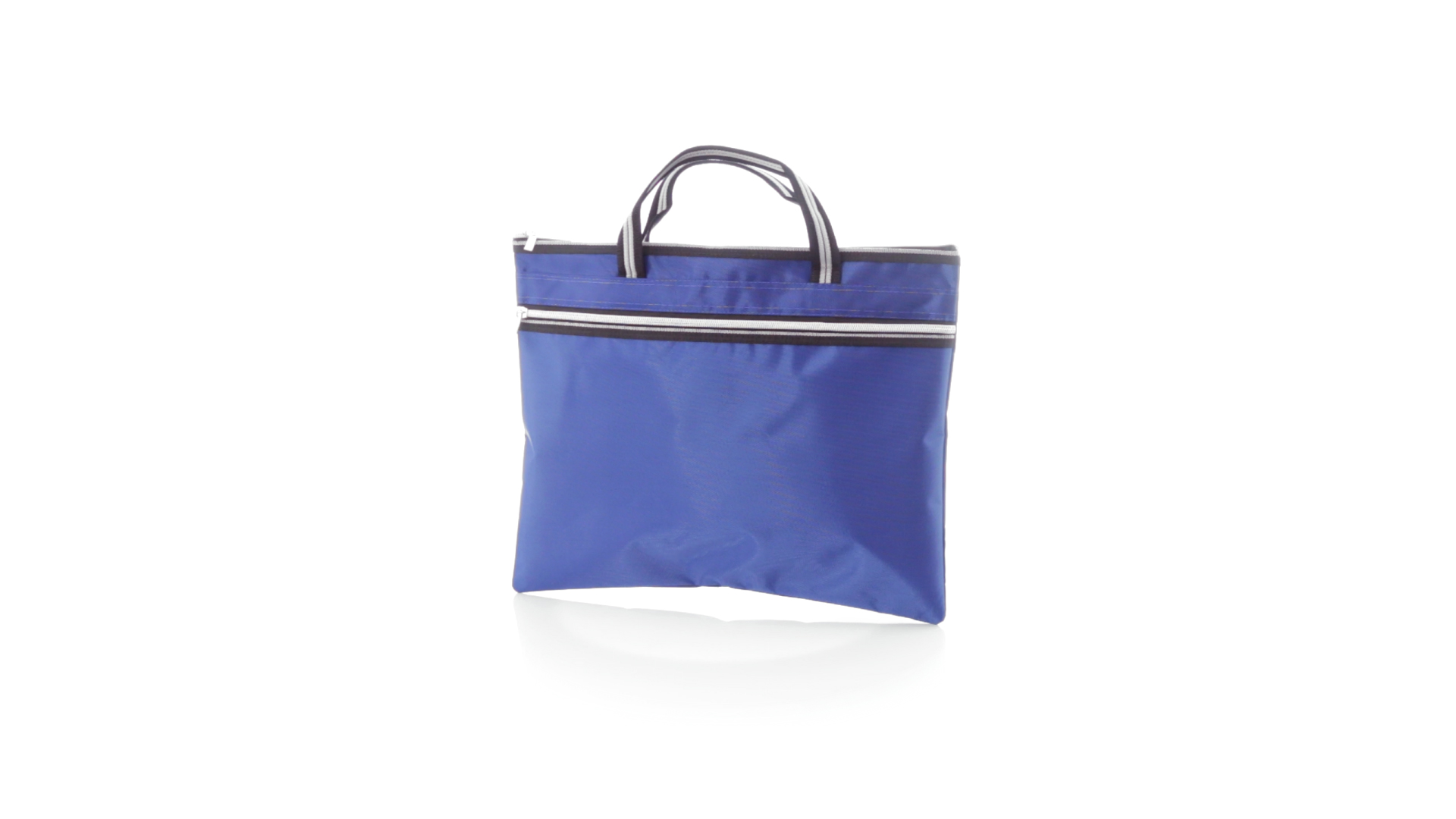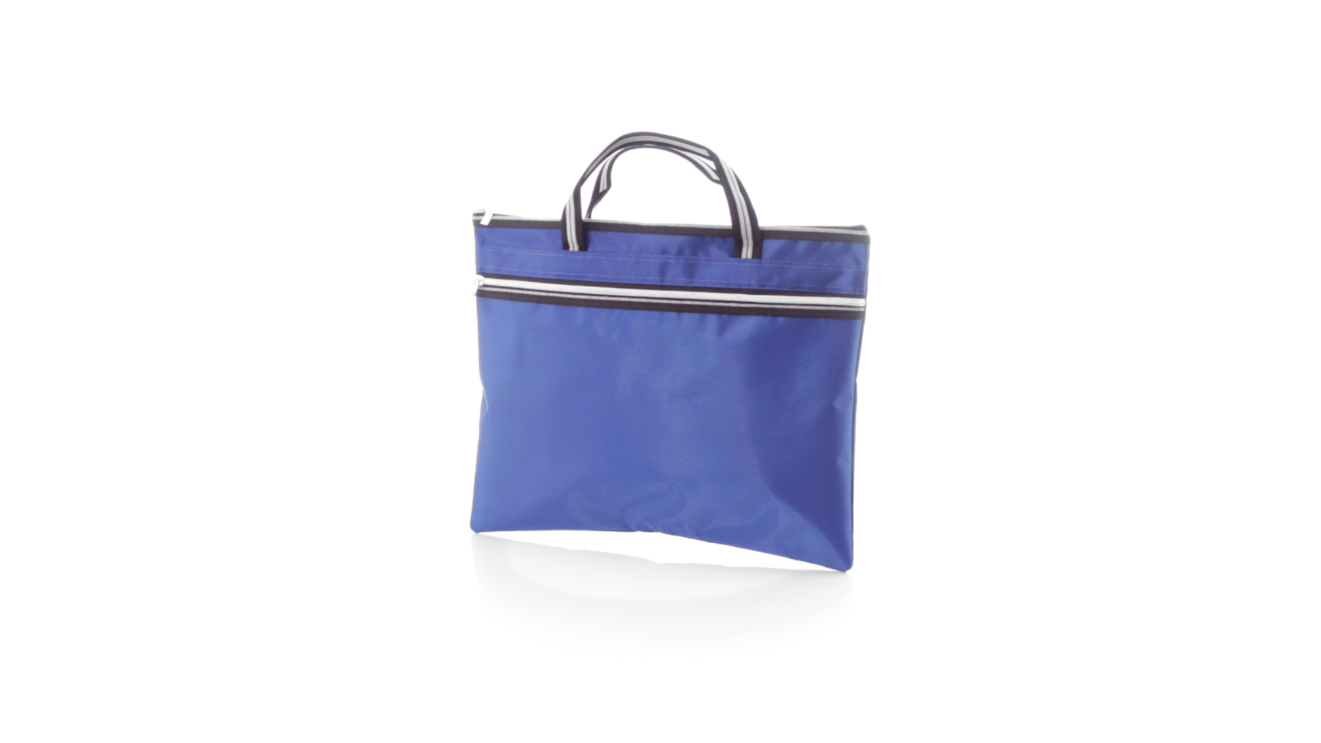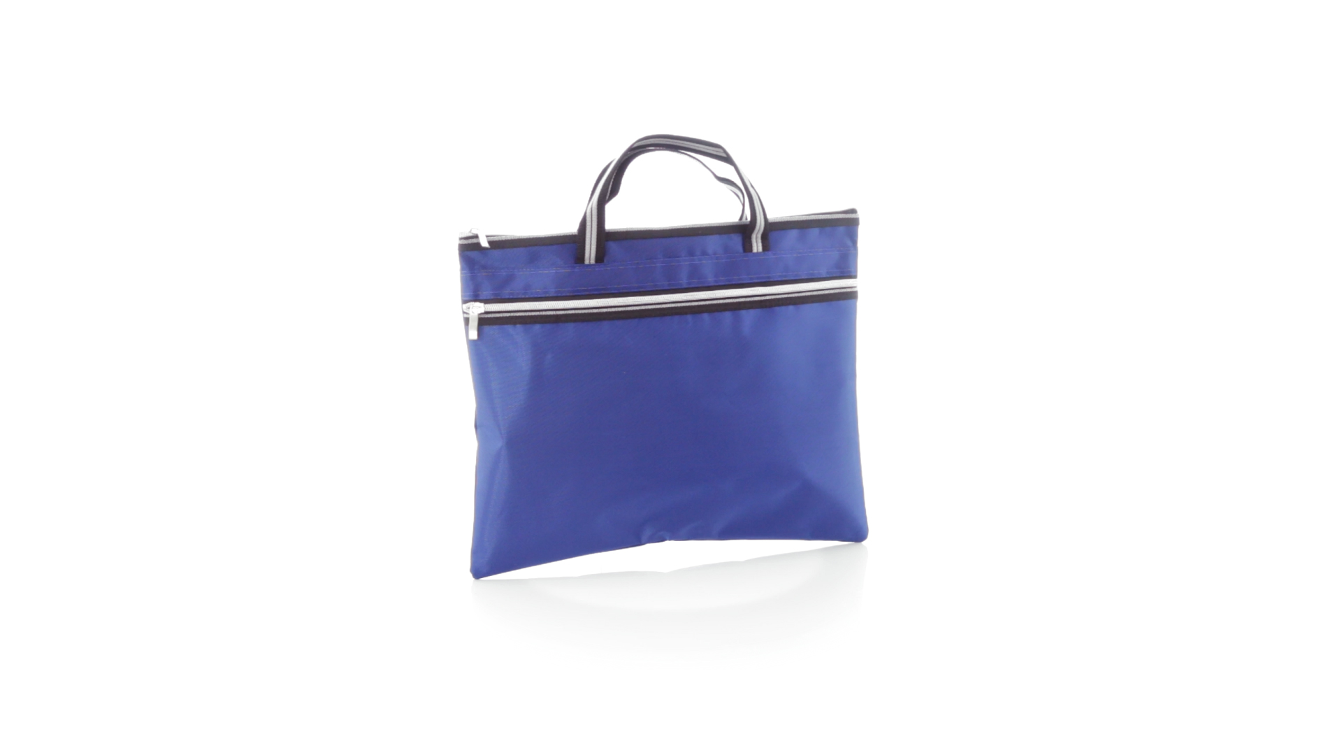 Dokumententasche mit Reissverschluss und Fronttasche aus weichem 300D Polyester in kräftigen Farben. Tragegriffe mit originellem, zweifarbigem Design und farblich passende Reissverschlüsse.