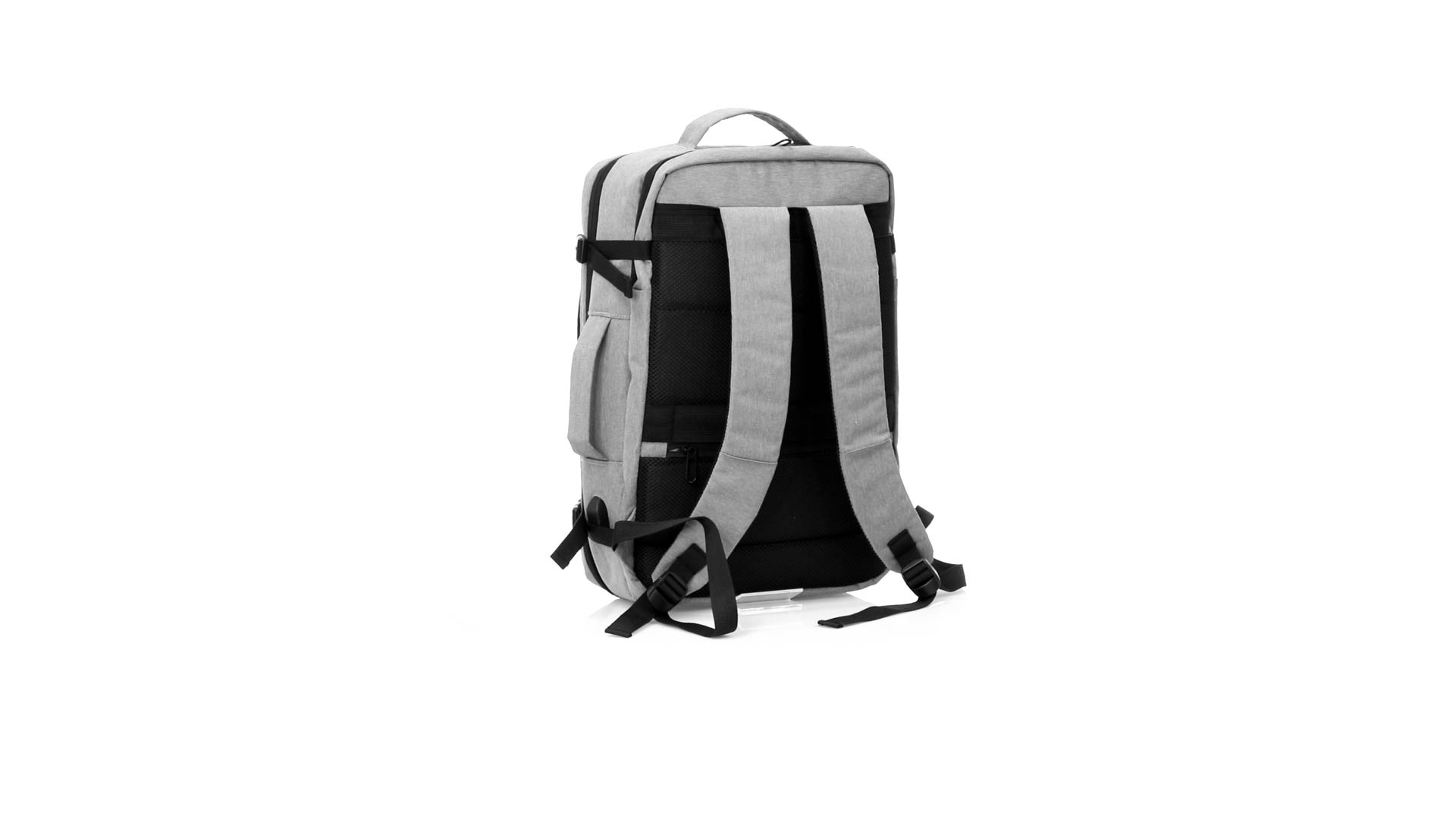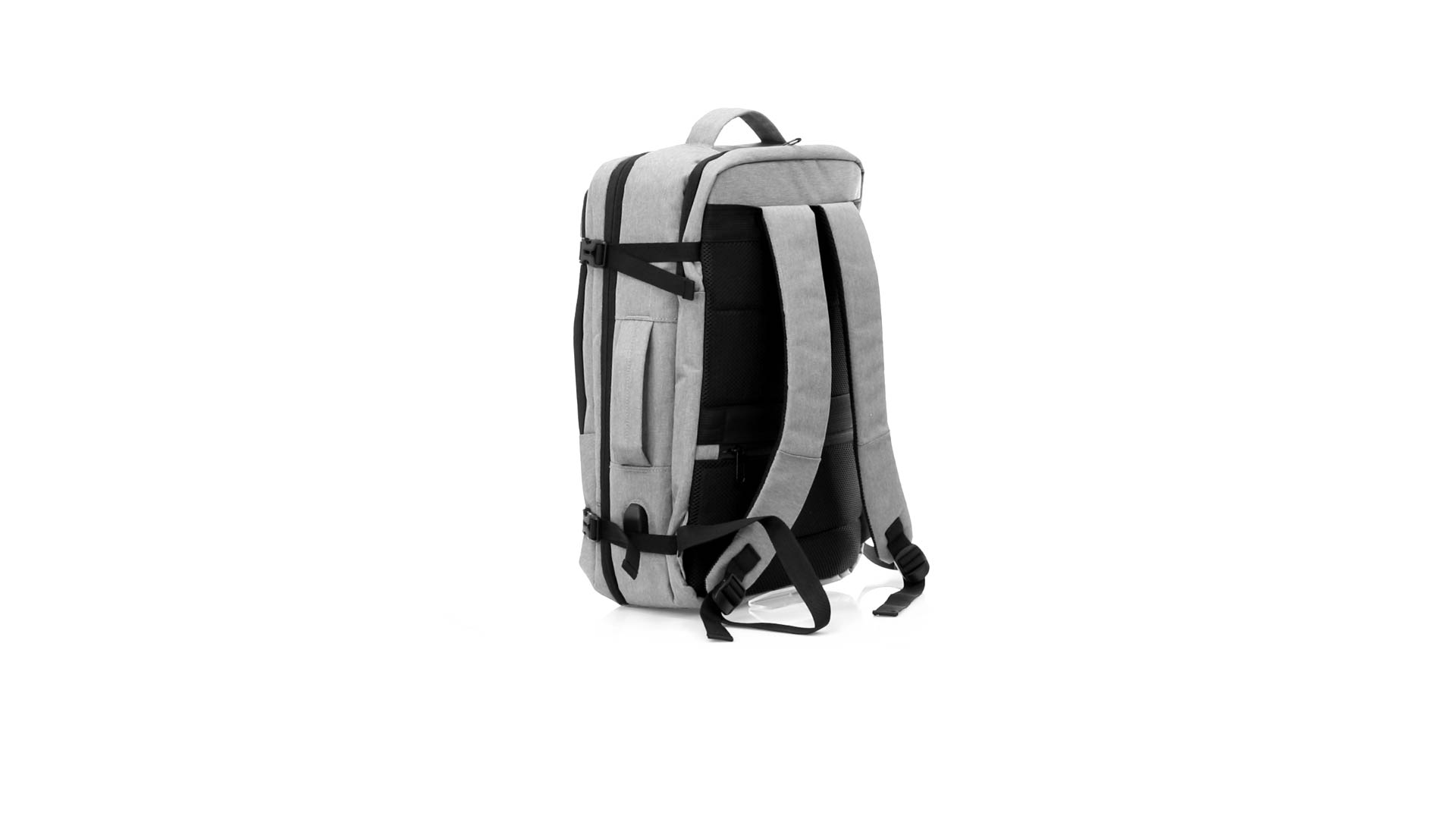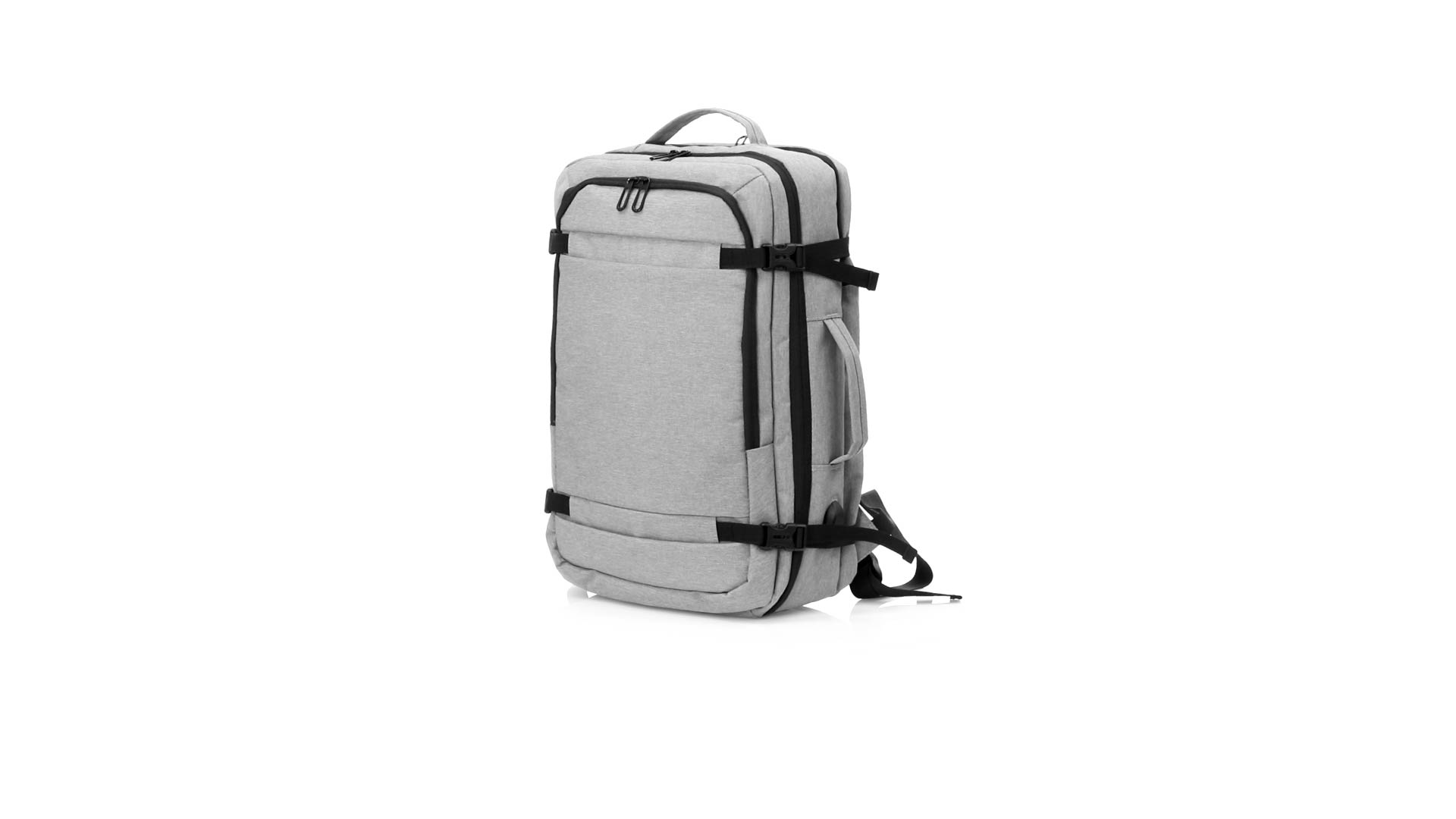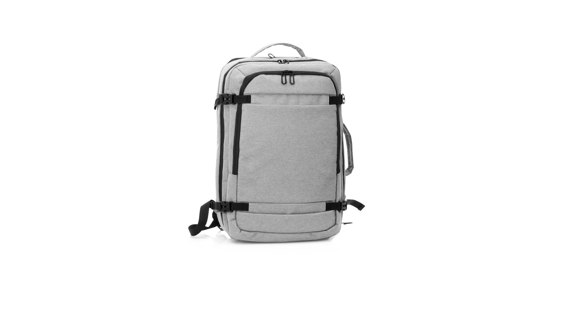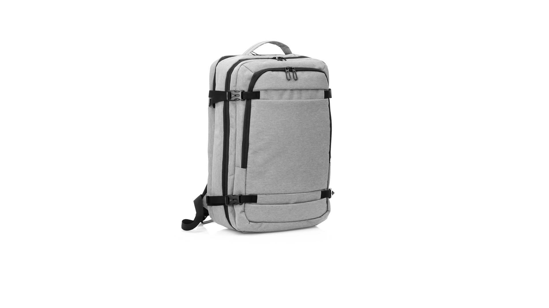 Mehrzweck-Dokumententasche/Rucksack aus widerstandsfähigem Denim-Polyester 600D. Urbanes Design mit Diebstahlschutztasche, einschliesslich USB-Anschluss zum Laden mobiler Geräte (Kabel im Lieferumfang enthalten, Zusatzbatterie nicht enthalten) und einem gepolsterten Fach für Laptops bis 17 Zoll Grösse. Verstärkte Seitenfalten, mit Sicherheitsschnallenverschluss und Fächern mit doppelten Reissverschlusszügen. Gepolsterte, verstellbare Schultergurte und gepolsterte Rückseite, mit Zubehör für Trolley und einer Tasche zum Verstecken der Schultergurte bei Verwendung als Dokumententasche.