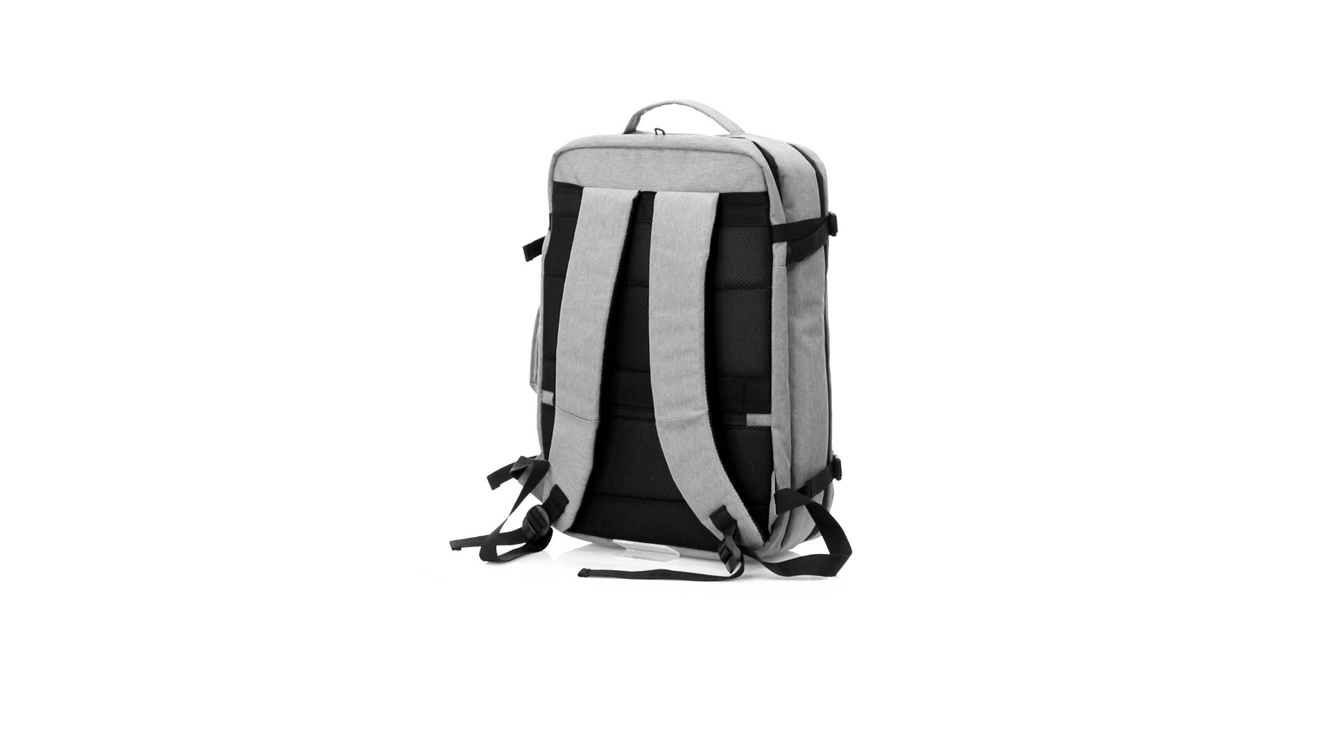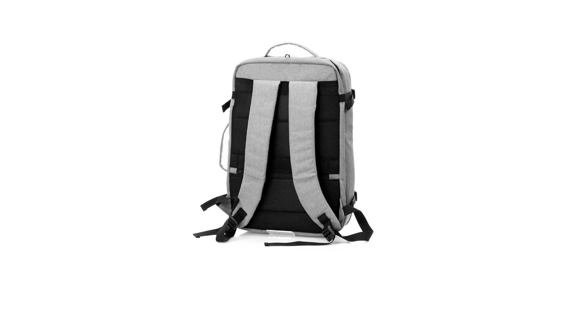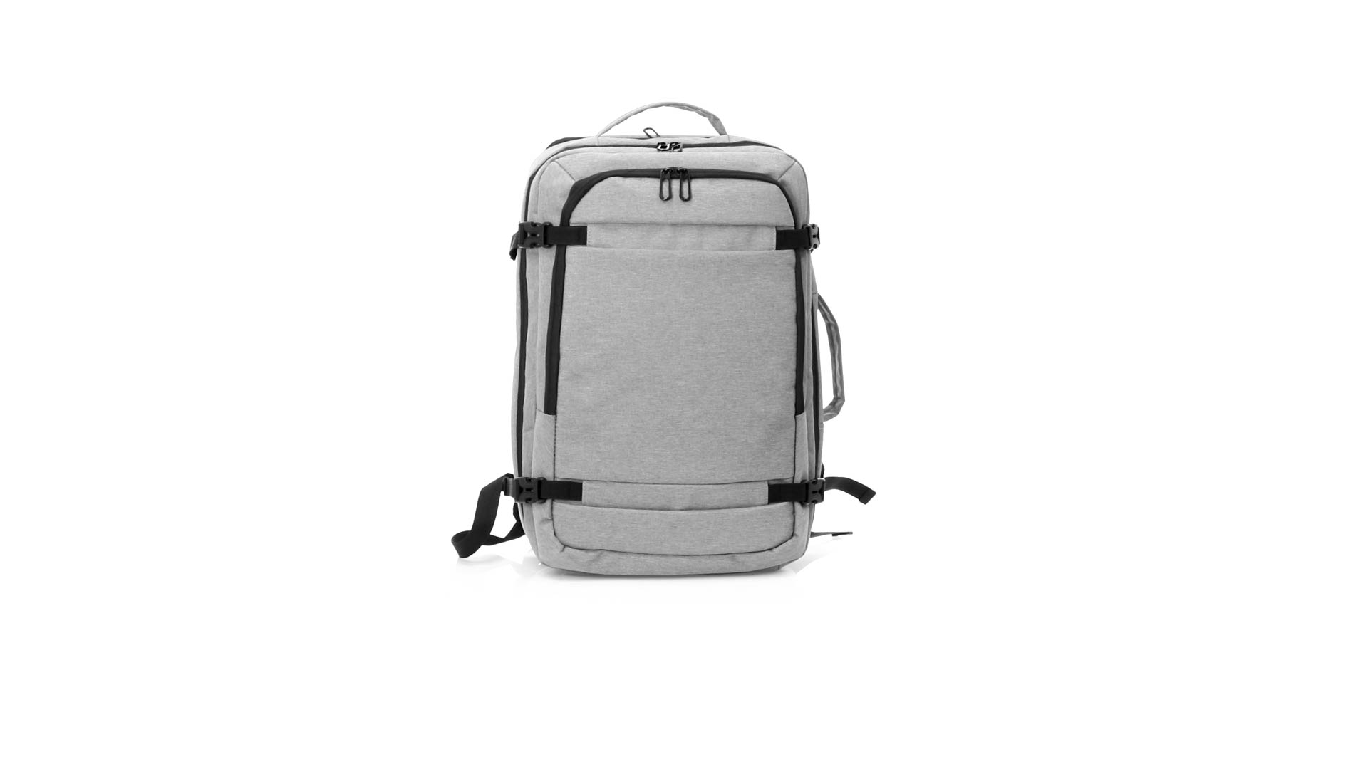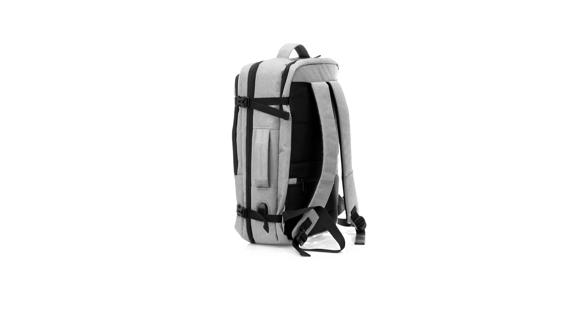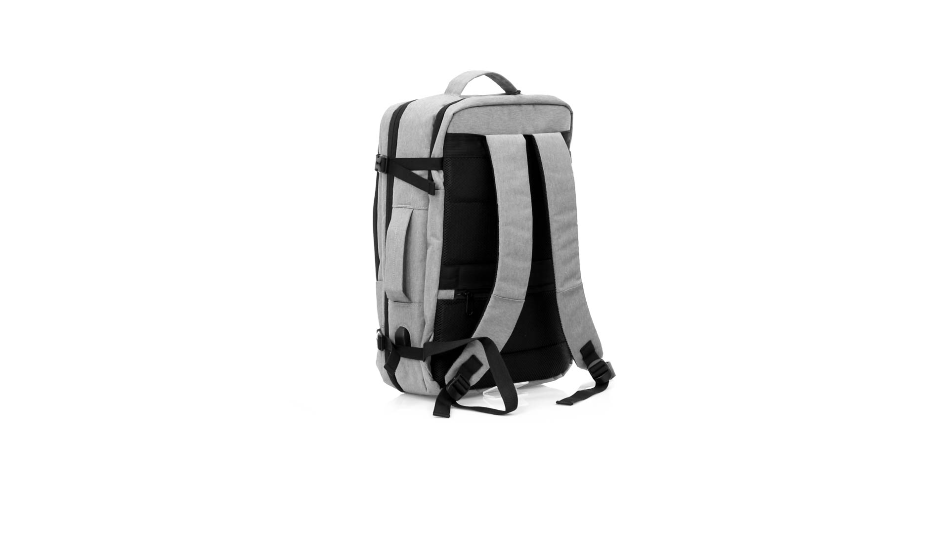 Mehrzweck-Dokumententasche/Rucksack aus widerstandsfähigem Denim-Polyester 600D. Urbanes Design mit Diebstahlschutztasche, einschliesslich USB-Anschluss zum Laden mobiler Geräte (Kabel im Lieferumfang enthalten, Zusatzbatterie nicht enthalten) und einem gepolsterten Fach für Laptops bis 17 Zoll Grösse. Verstärkte Seitenfalten, mit Sicherheitsschnallenverschluss und Fächern mit doppelten Reissverschlusszügen. Gepolsterte, verstellbare Schultergurte und gepolsterte Rückseite, mit Zubehör für Trolley und einer Tasche zum Verstecken der Schultergurte bei Verwendung als Dokumententasche.