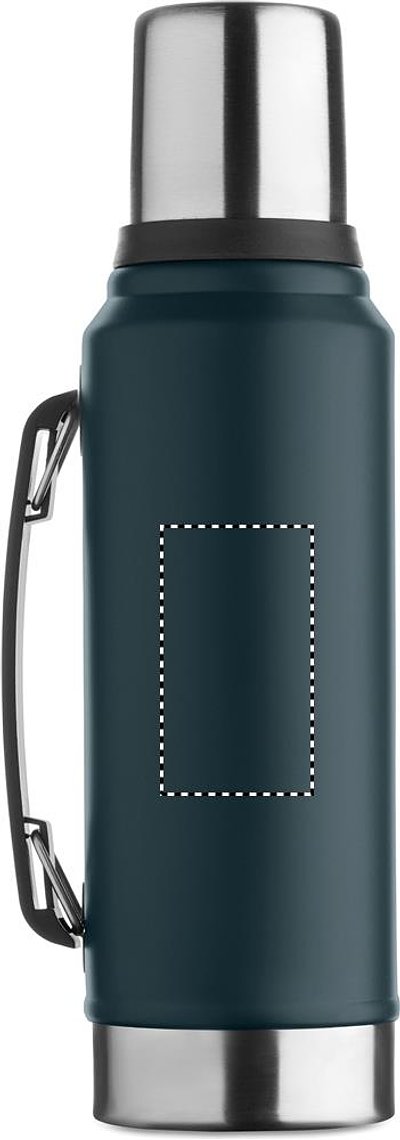 Doppelwandige Isolierflasche mit Becher aus recyceltem Edelstahl (90% recycelter Edelstahl und 10% Edelstahl) mit seitlichem Henkel. Verschluss aus PP. Auslaufsicher. Füllmenge: 1L.