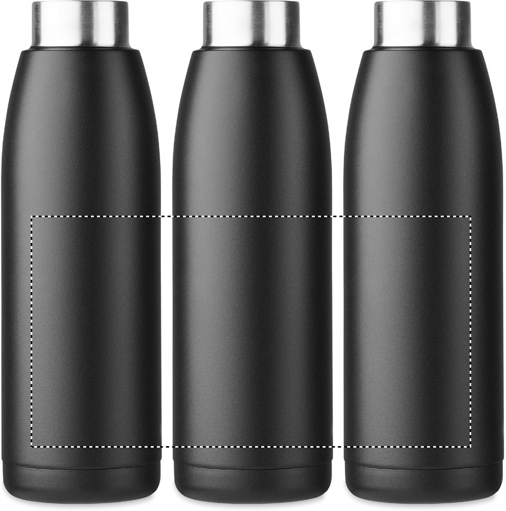 Doppelwandige Flasche aus recyceltem Edelstahl (90 % recycelter Edelstahl und 10 % Edelstahl) mit Silikon-Ring. Durch Schütteln der Flasche ändert sich die Temperatur der Oberfläche je nach Flüssigkeit im Inneren auf wärmer oder kälter. Auslaufsicher. Füllmenge: 400ml.
