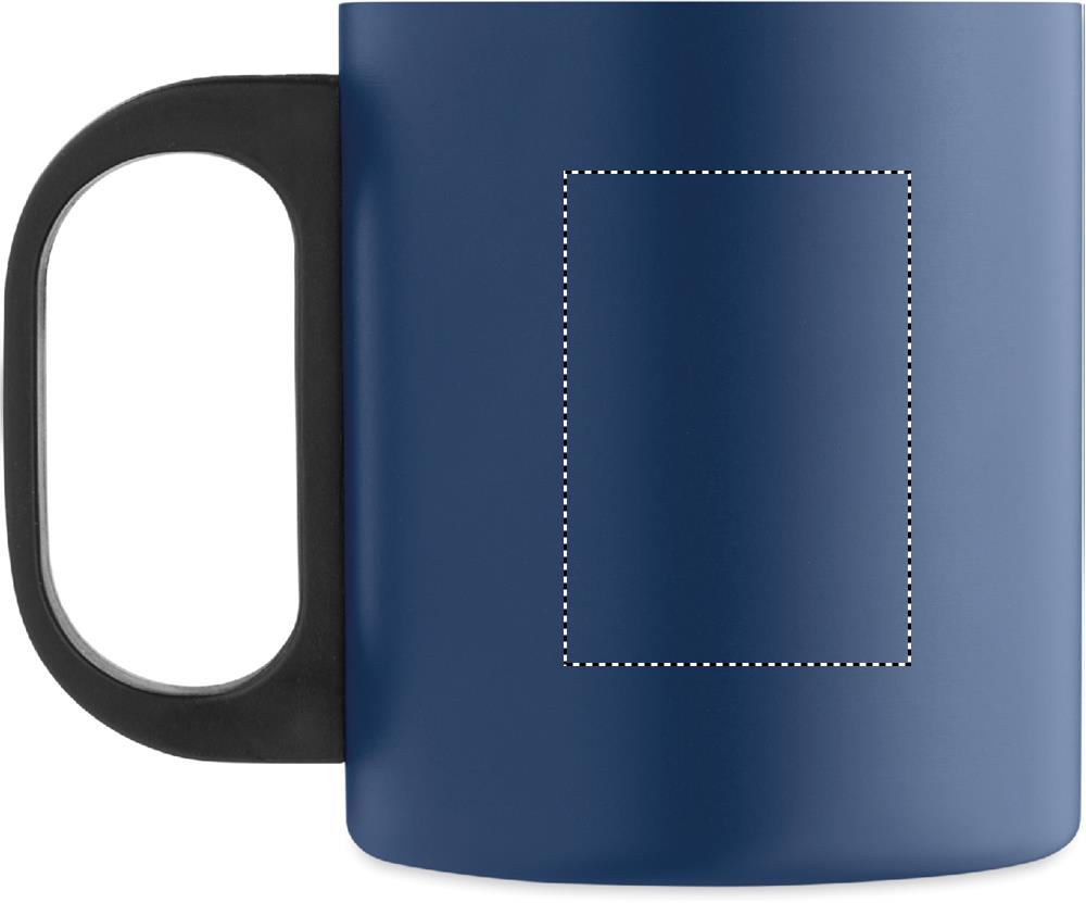 Doppelwandiger Becher aus Edelstahl mit PP-Griff. Füllmenge: 300 ml.